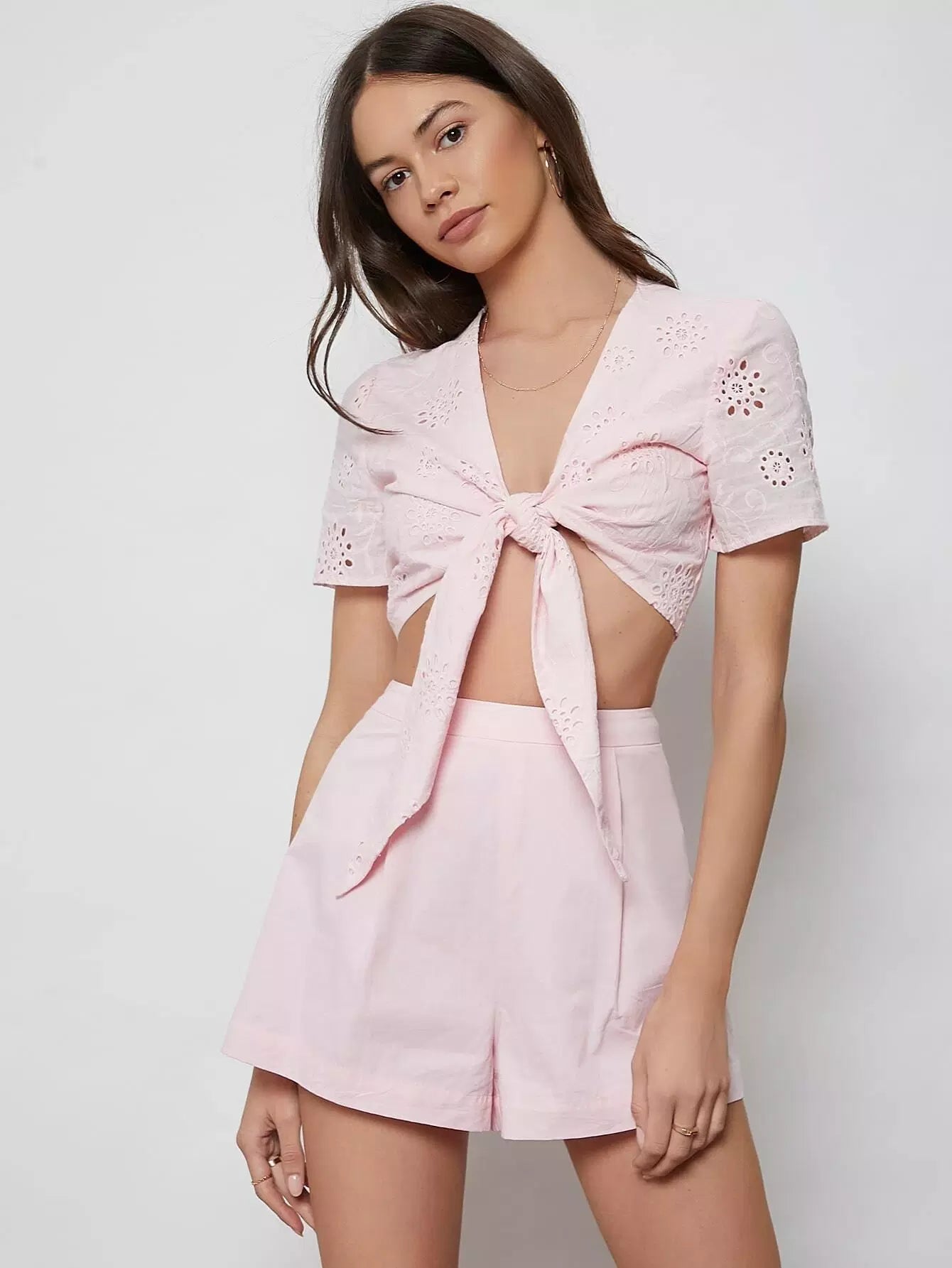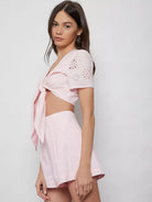 Women - Tie Front Schiffy Top & Wide Leg Shorts Set