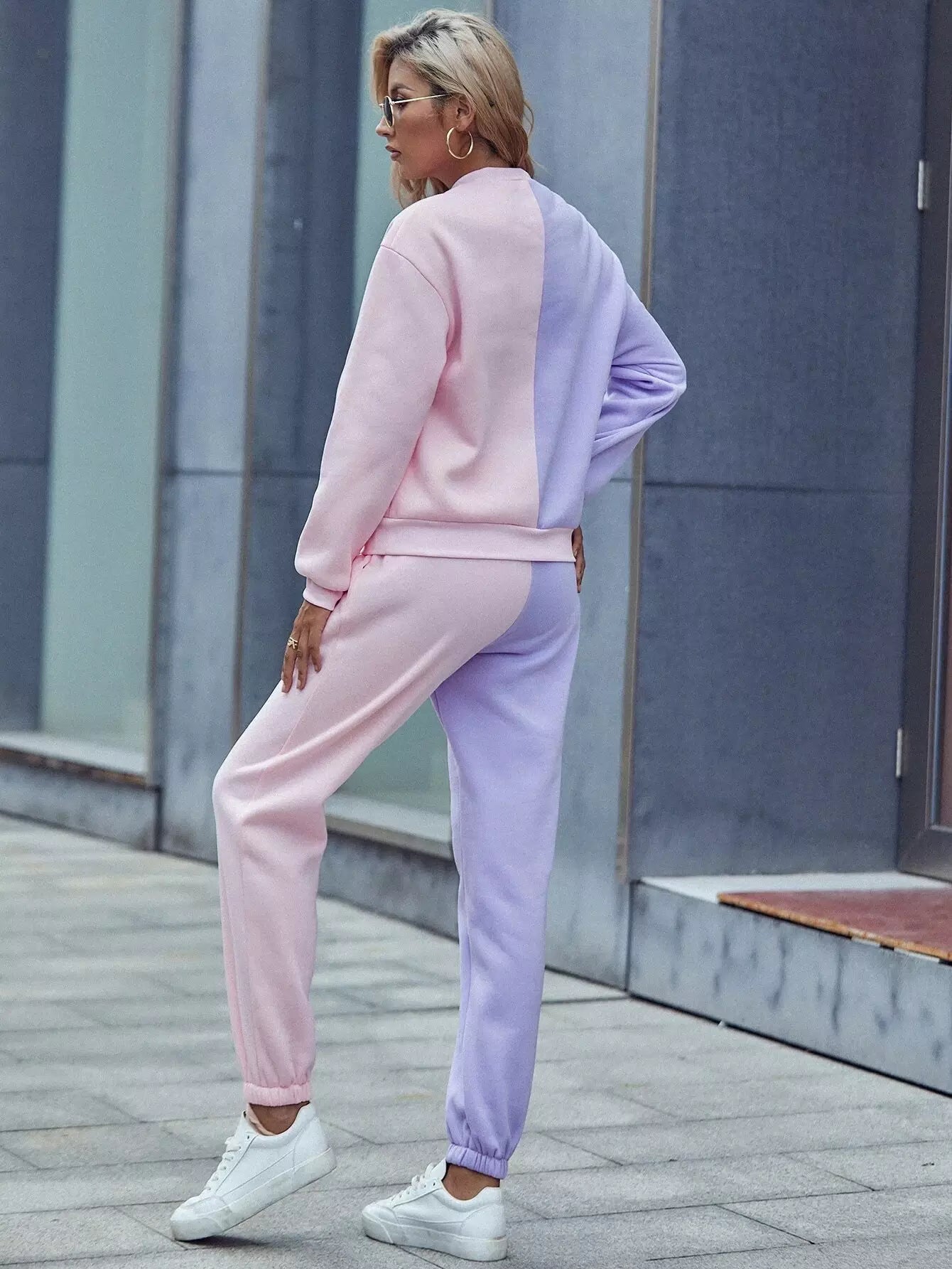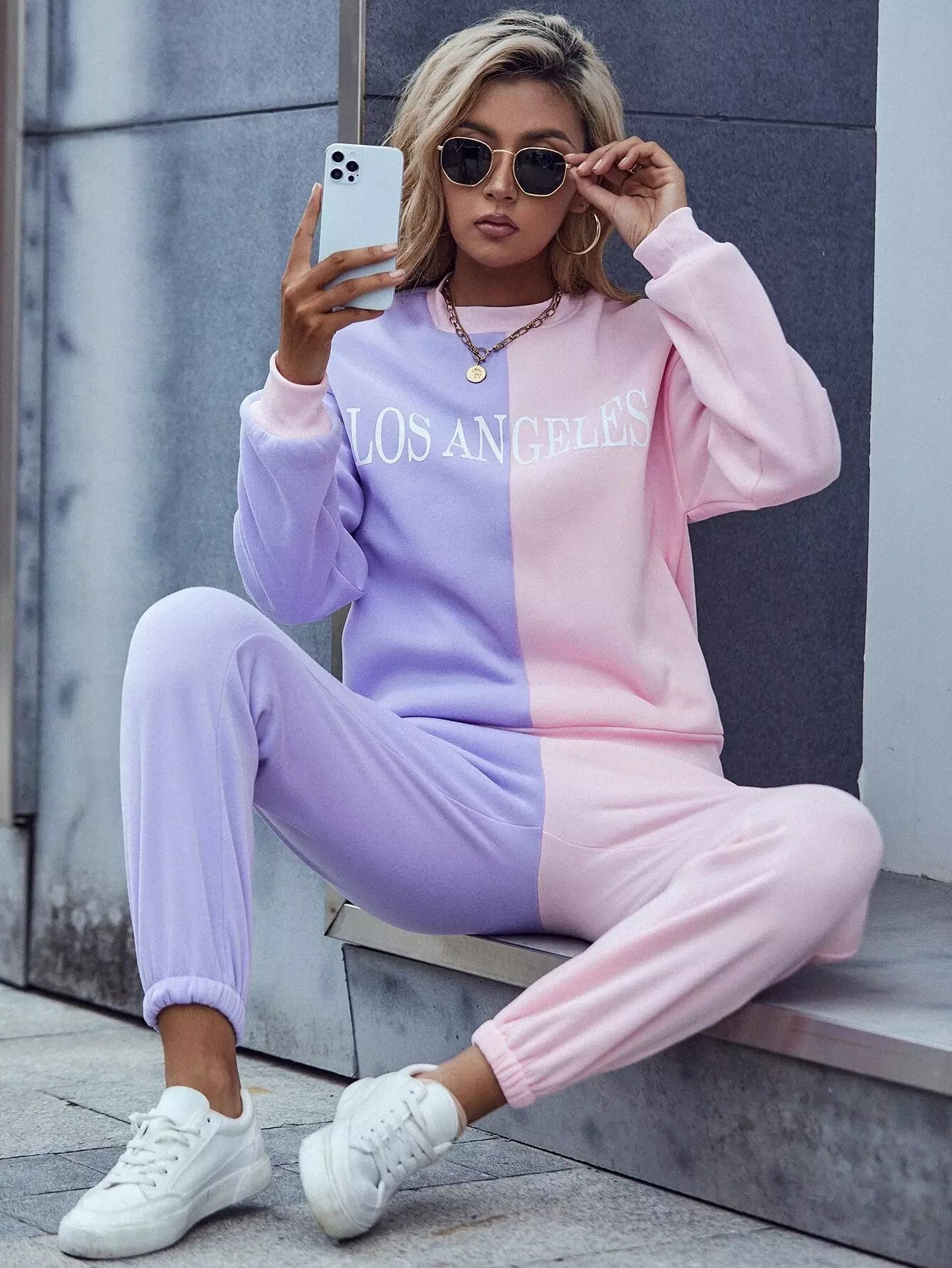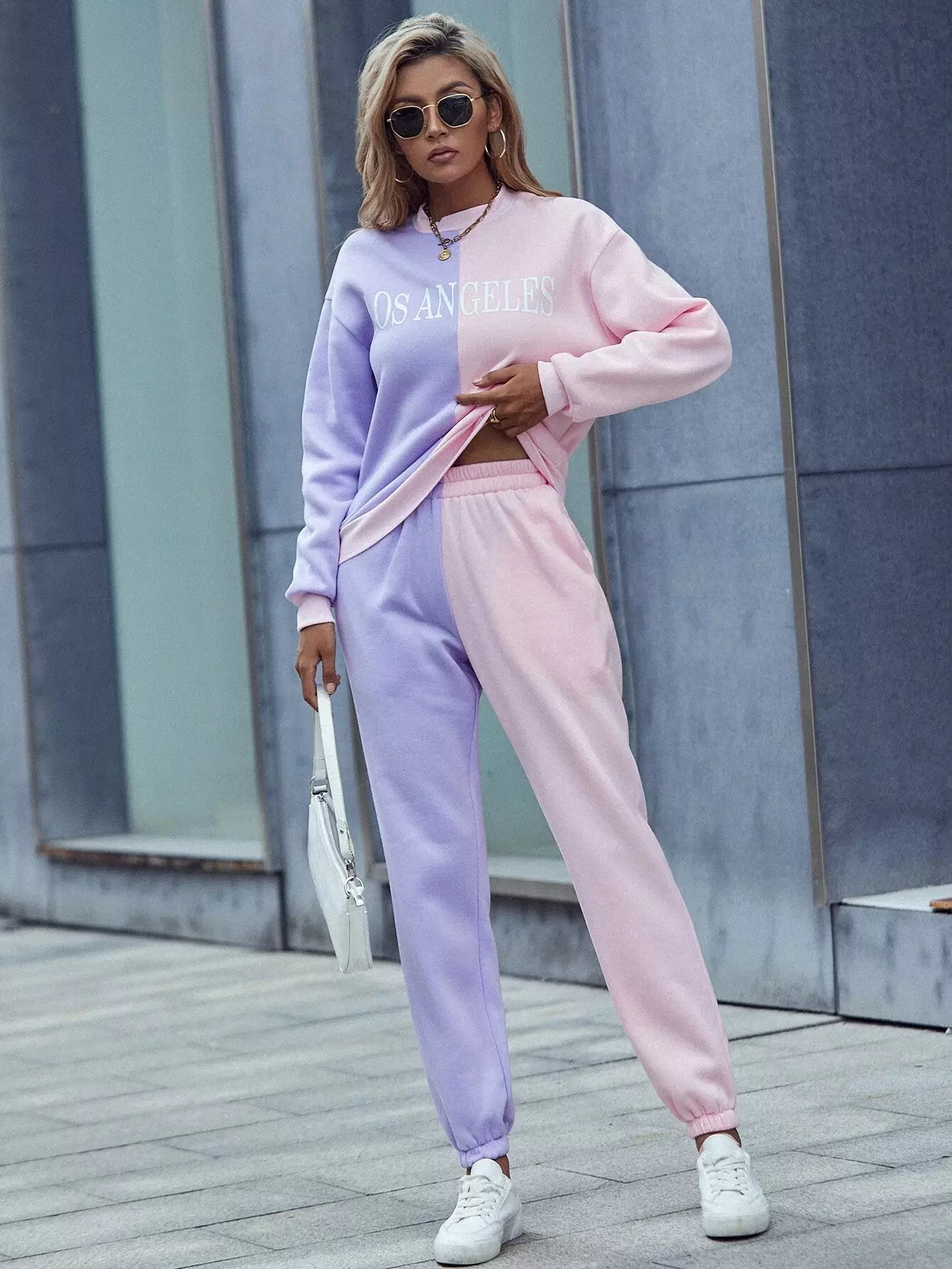 Women - Two Tone Letter Graphic Drop Shoulder Sweatshirt & Sweatpants