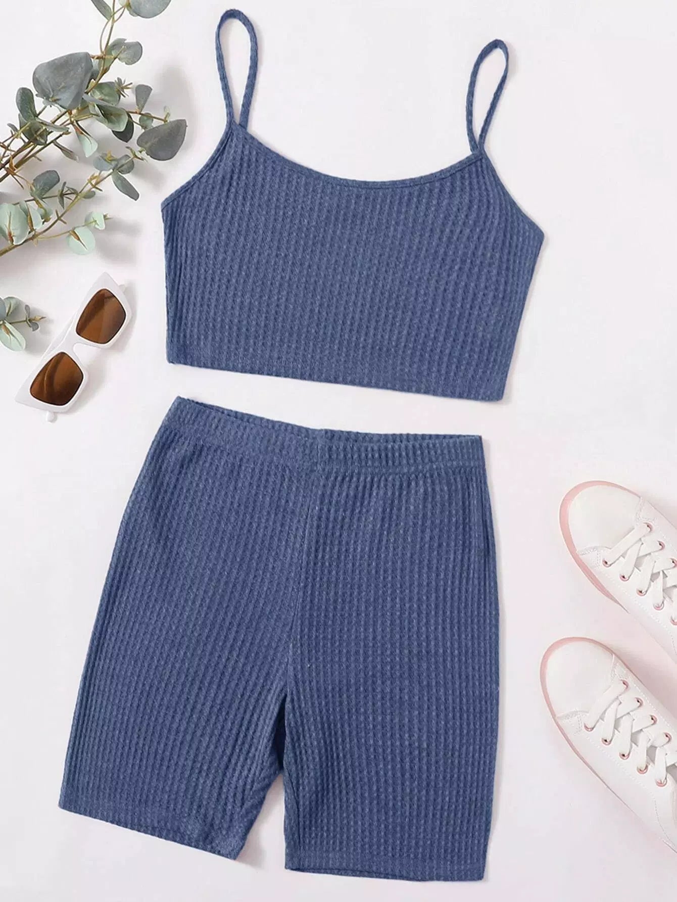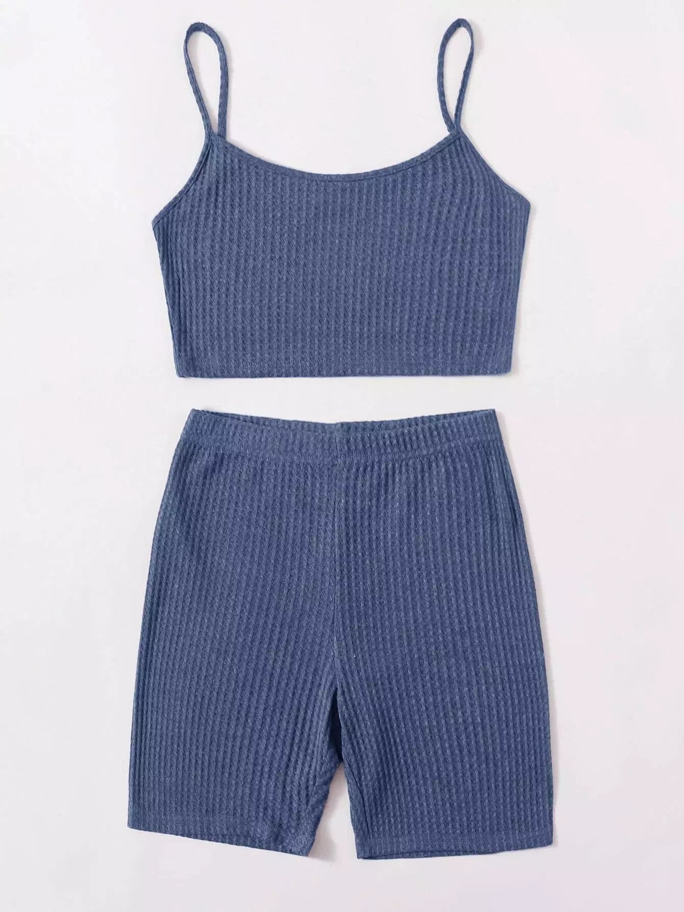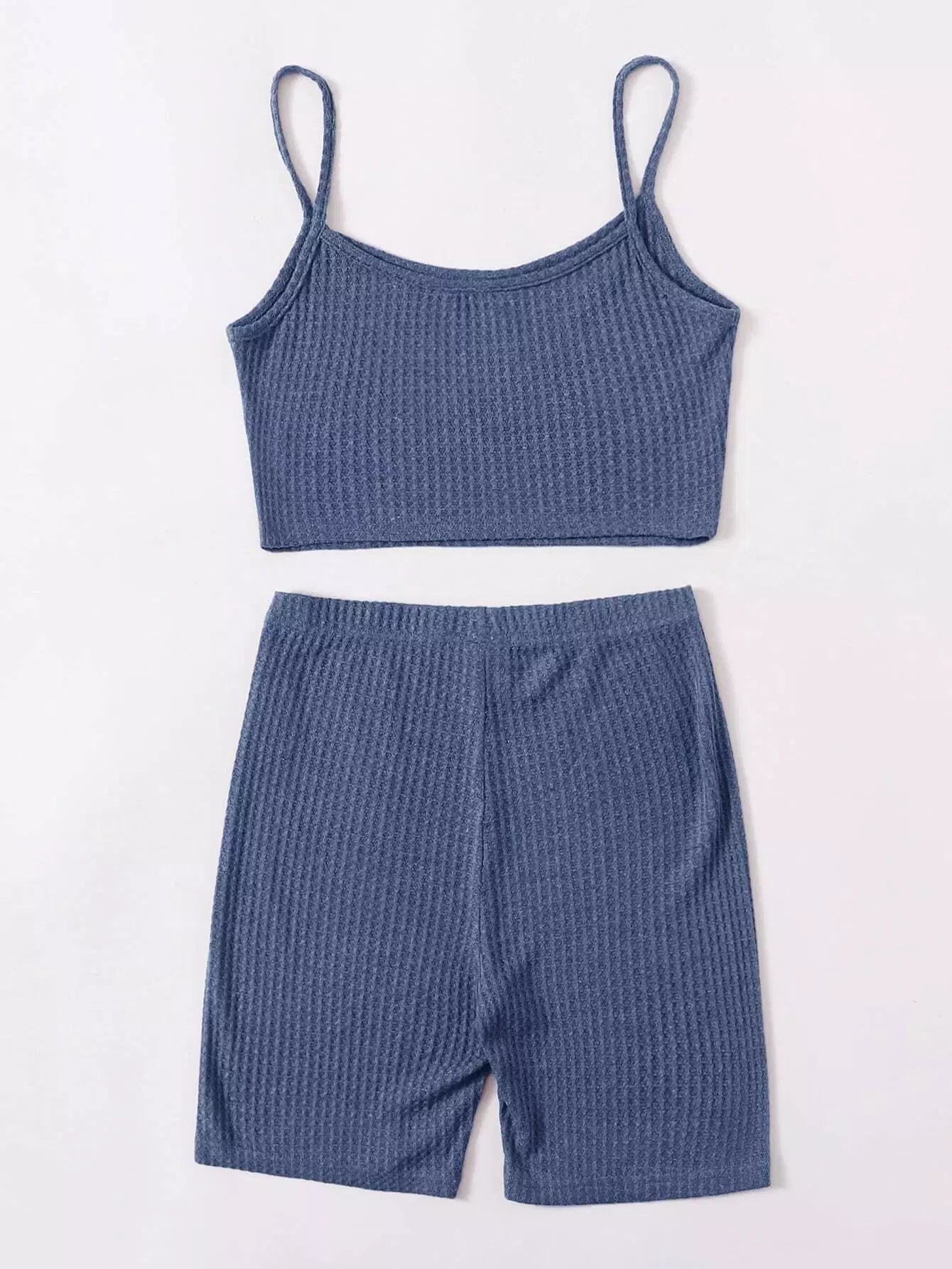 Waffle Knit Cami Top and Biker Shorts Set