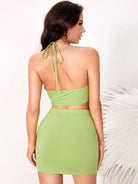 Crisscross Tie Backless Halter Top & Bodycon Skirt Set