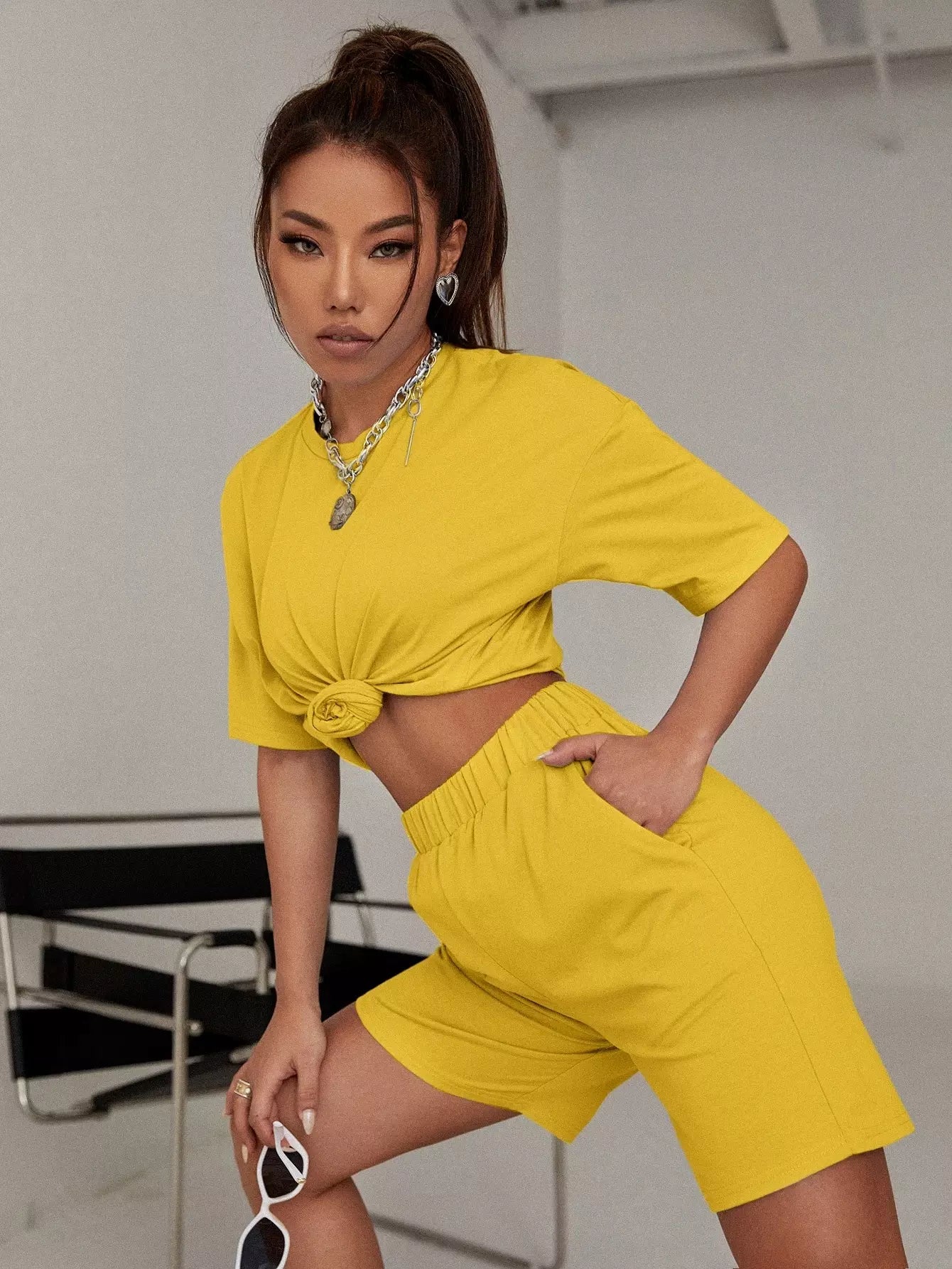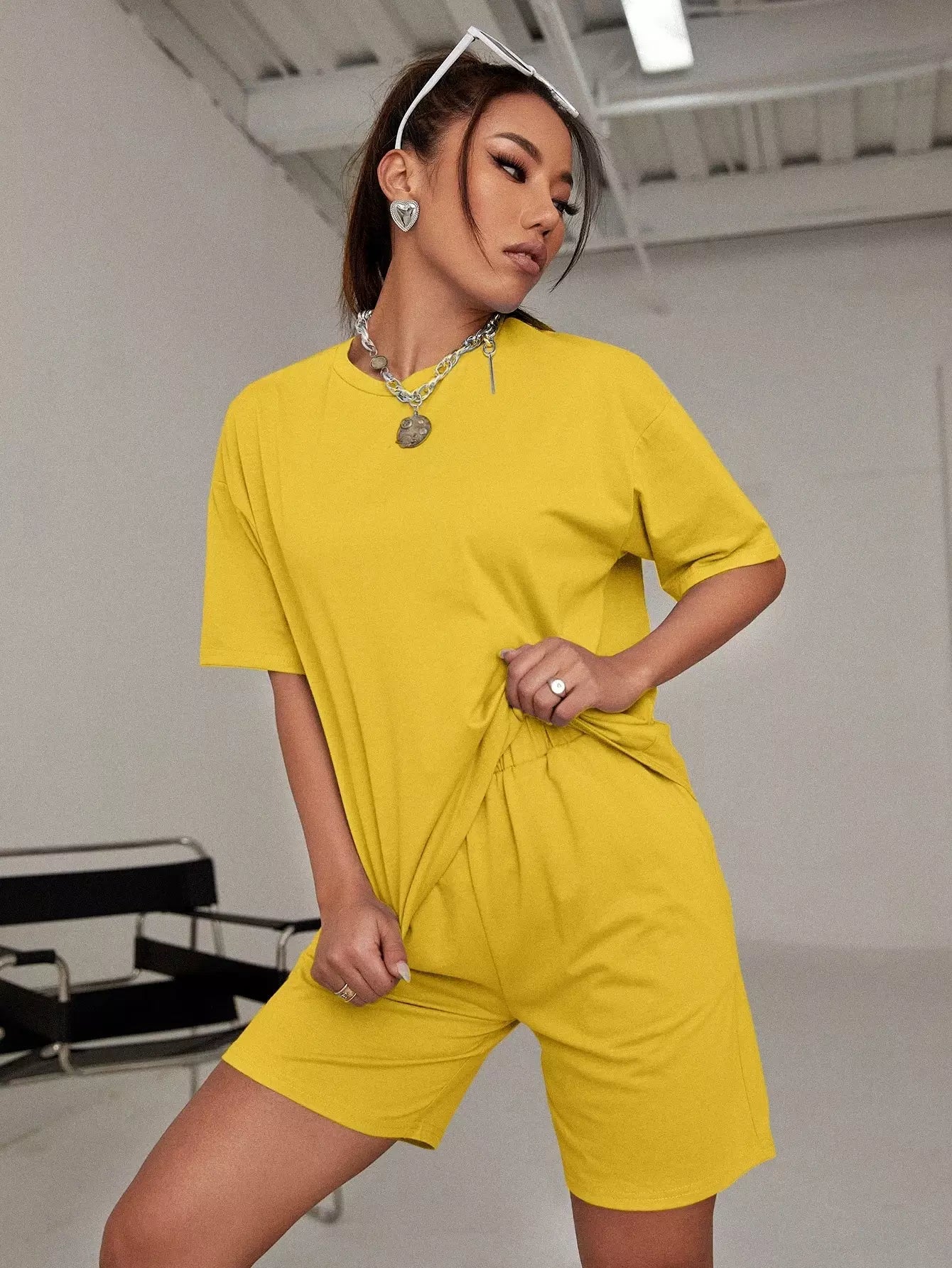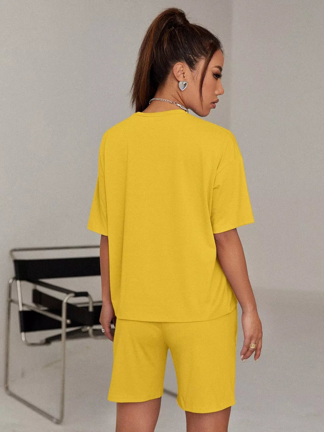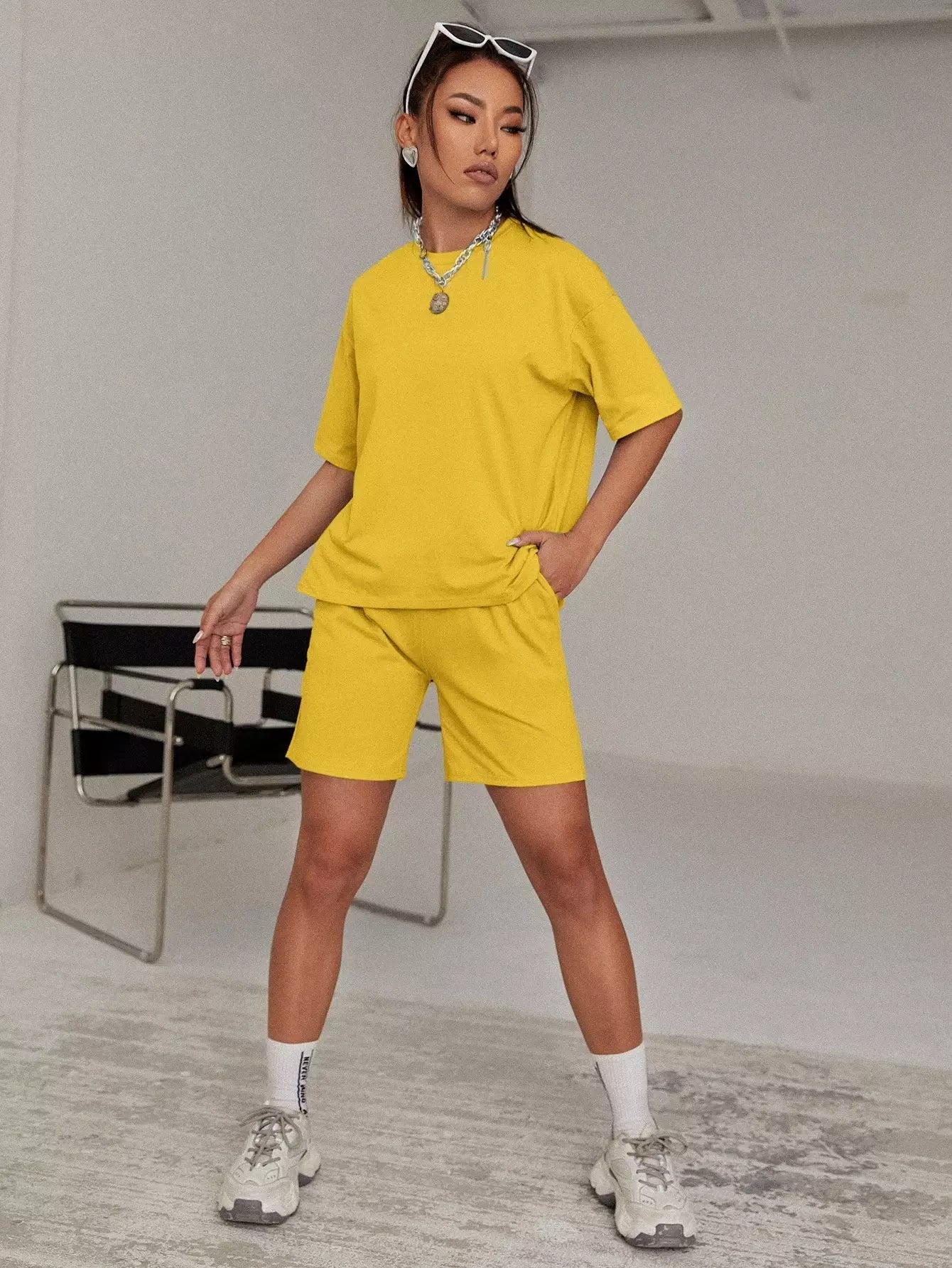 Drop Shoulder Tee & Elastic Waist Shorts Set