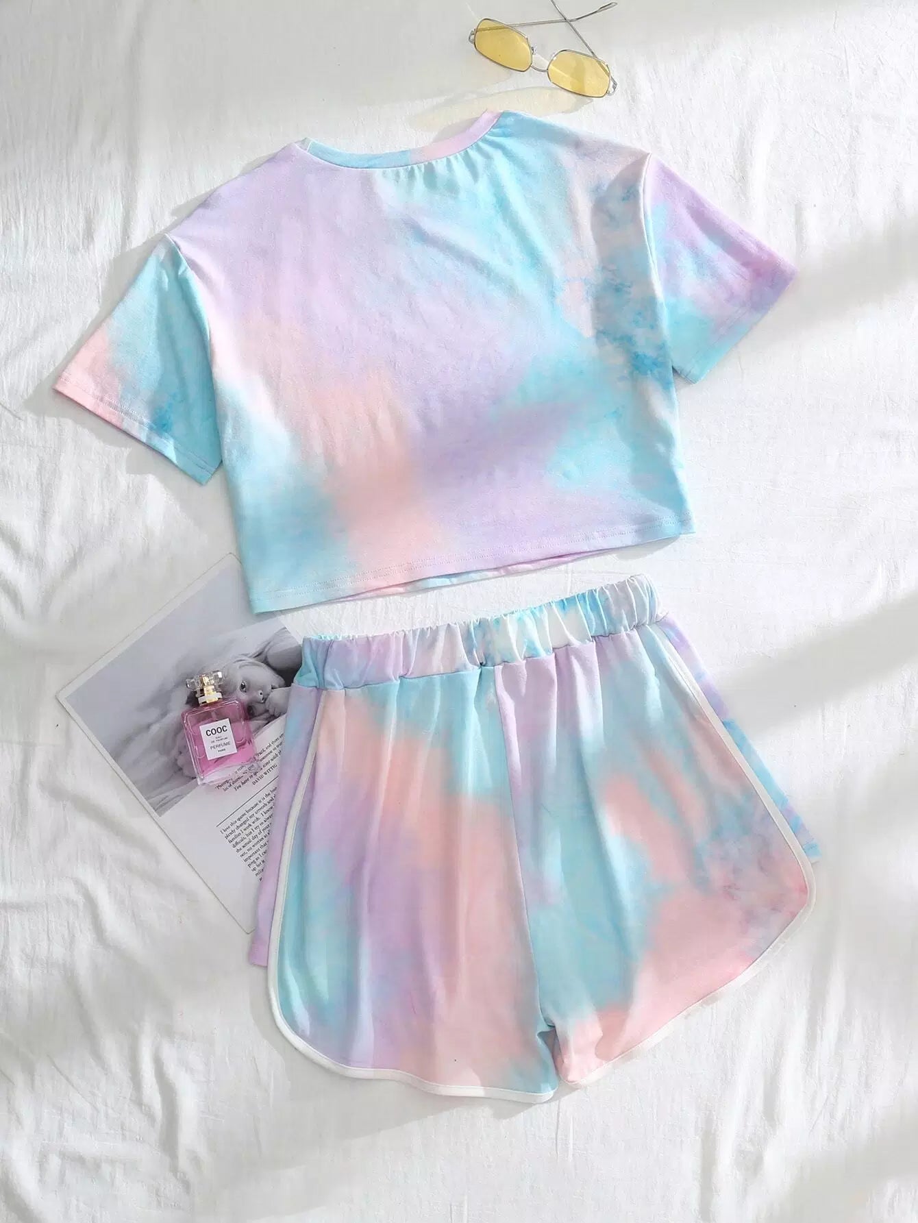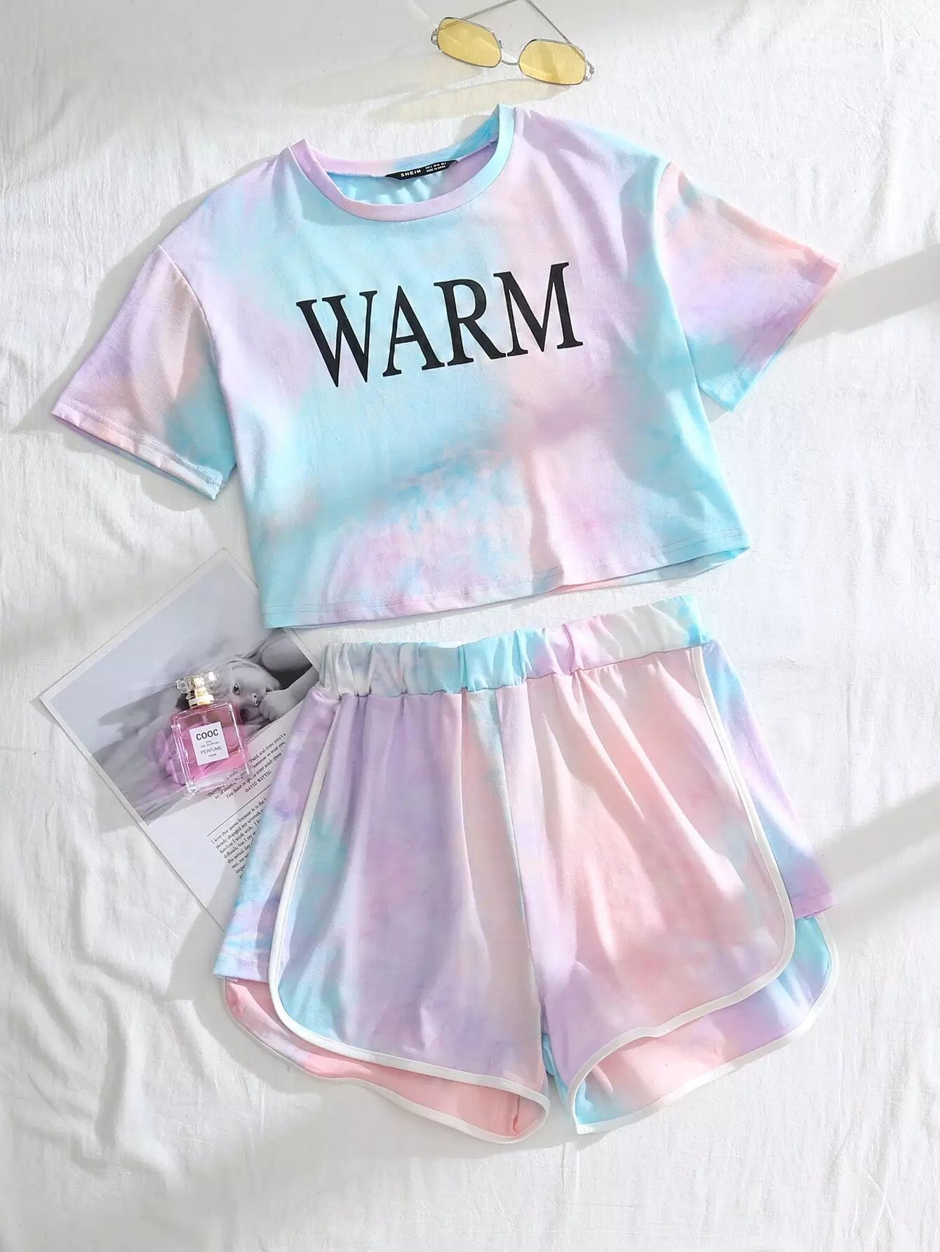 Letter Graphic Tie Dye Tee & Track Shorts Set