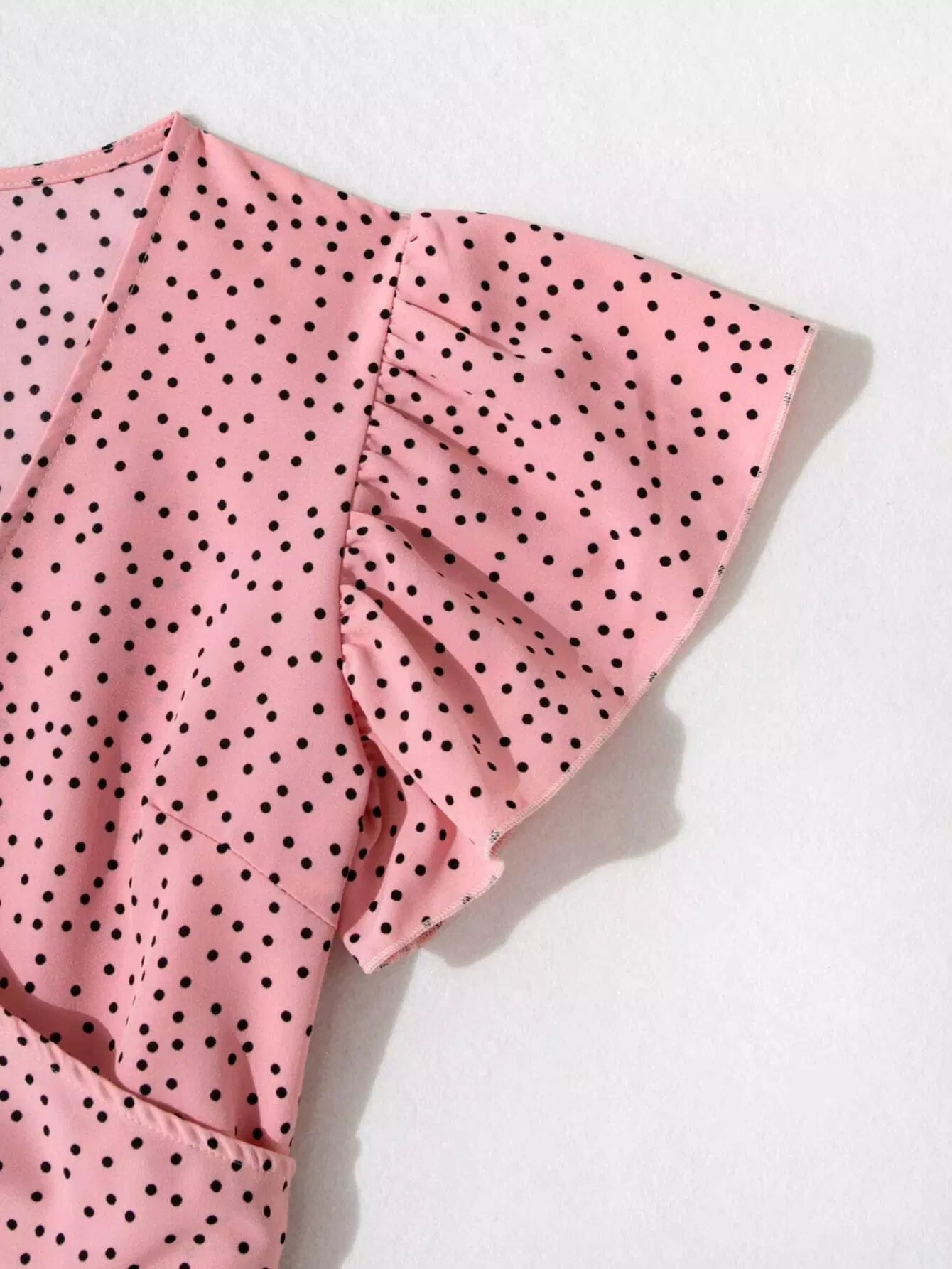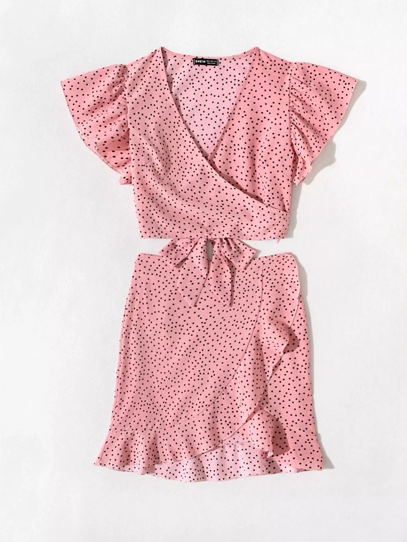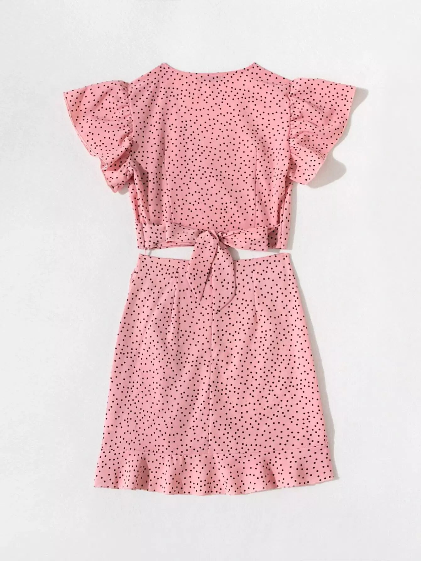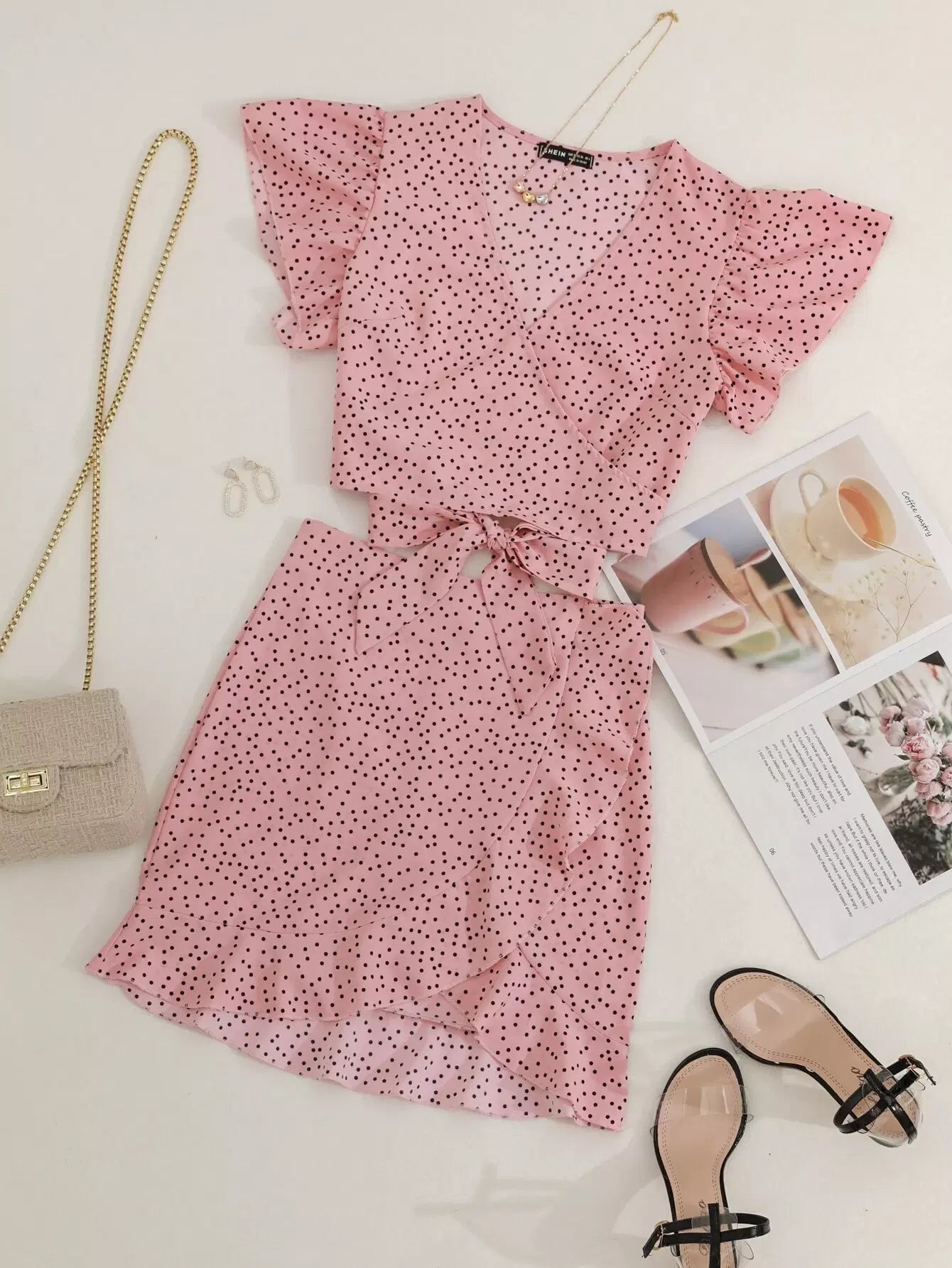 Polka Dot Tie Back Top & Ruffle Hem Skirt Set