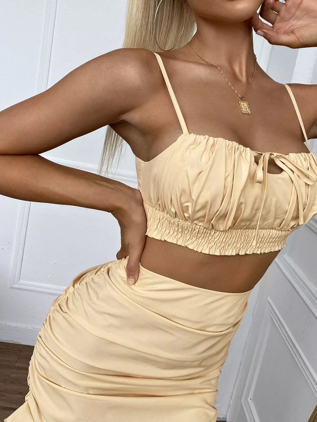 Ruched Bust Shirred Cami Top With Ruffle Hem Skirt