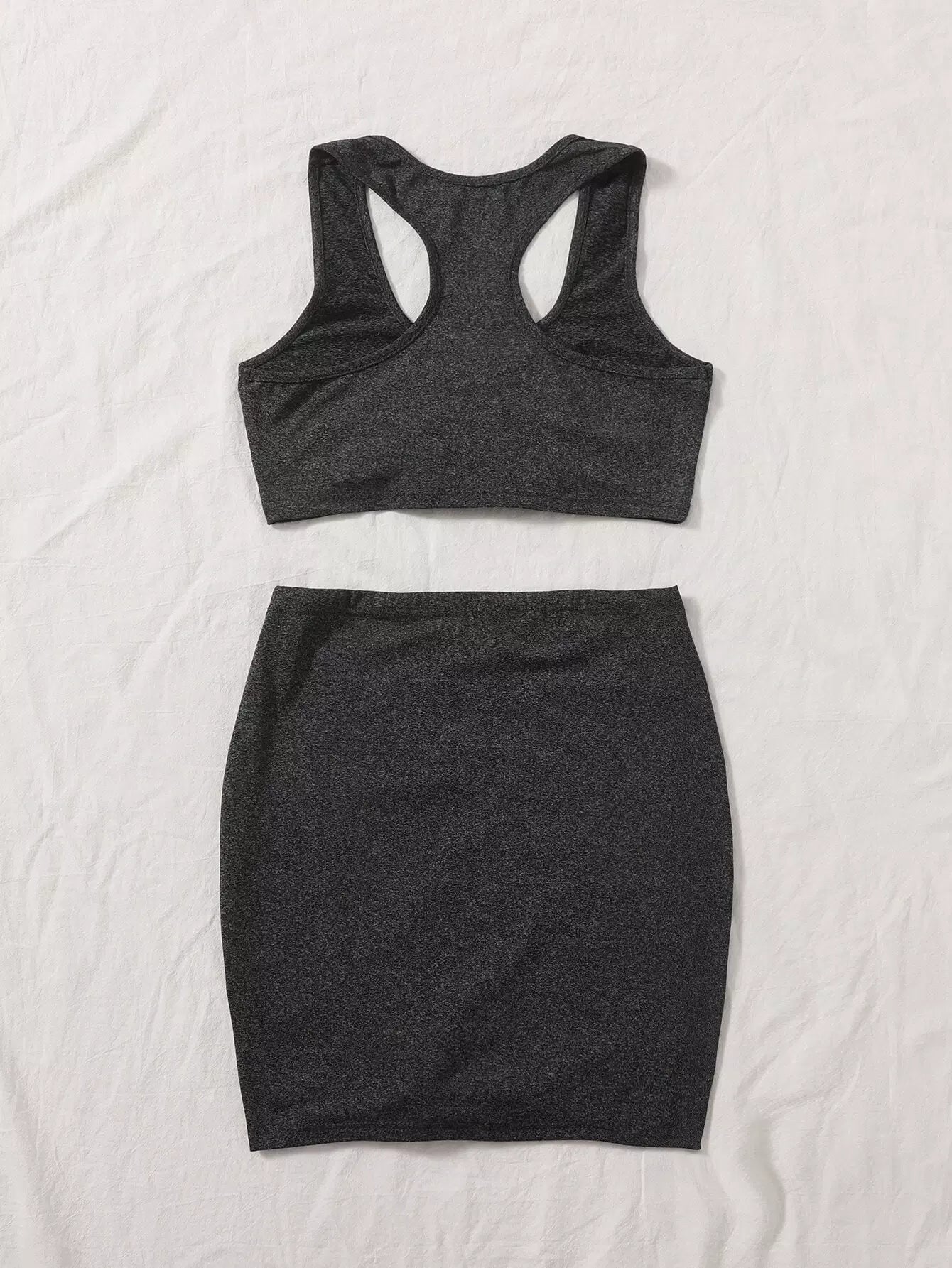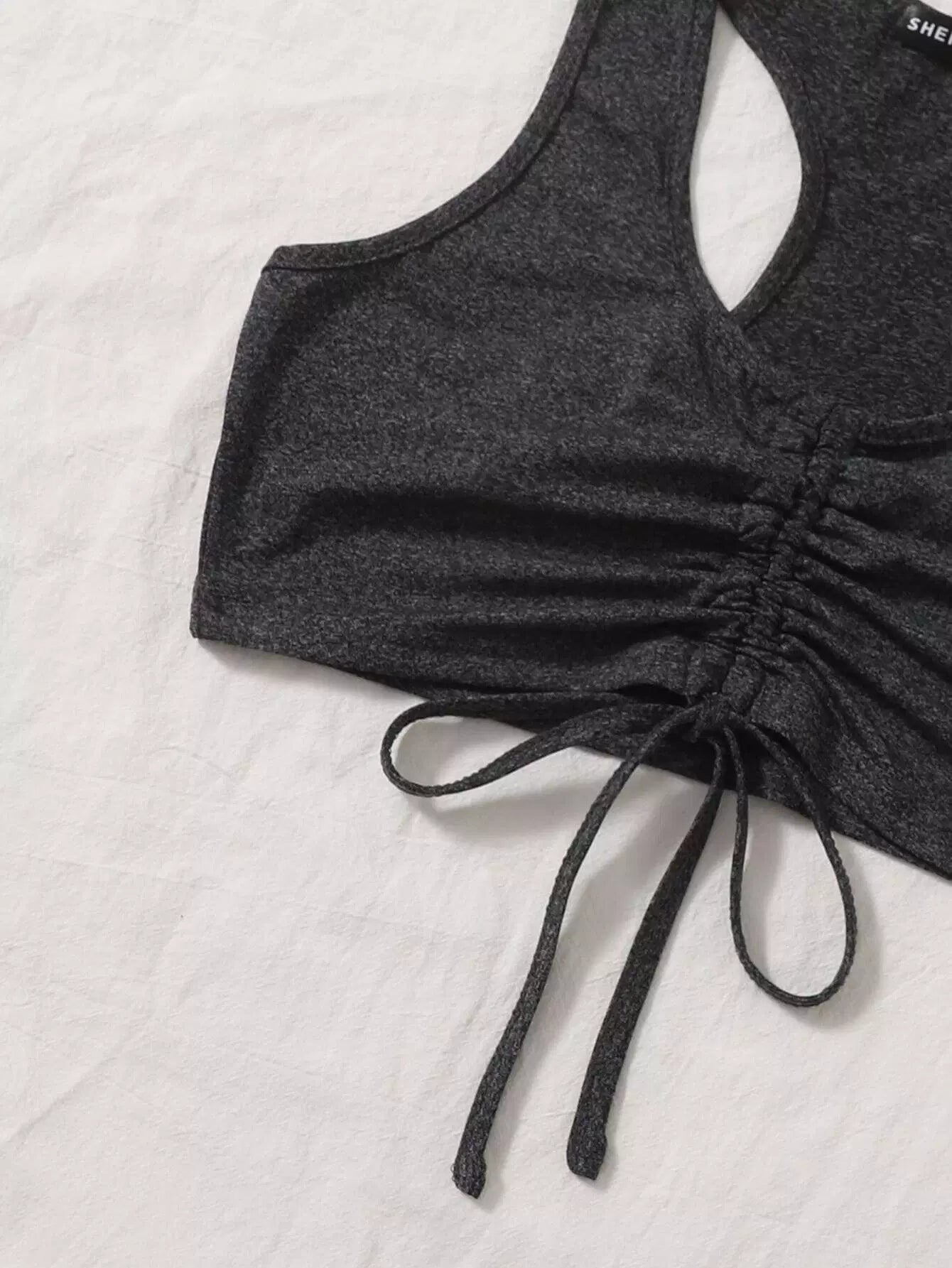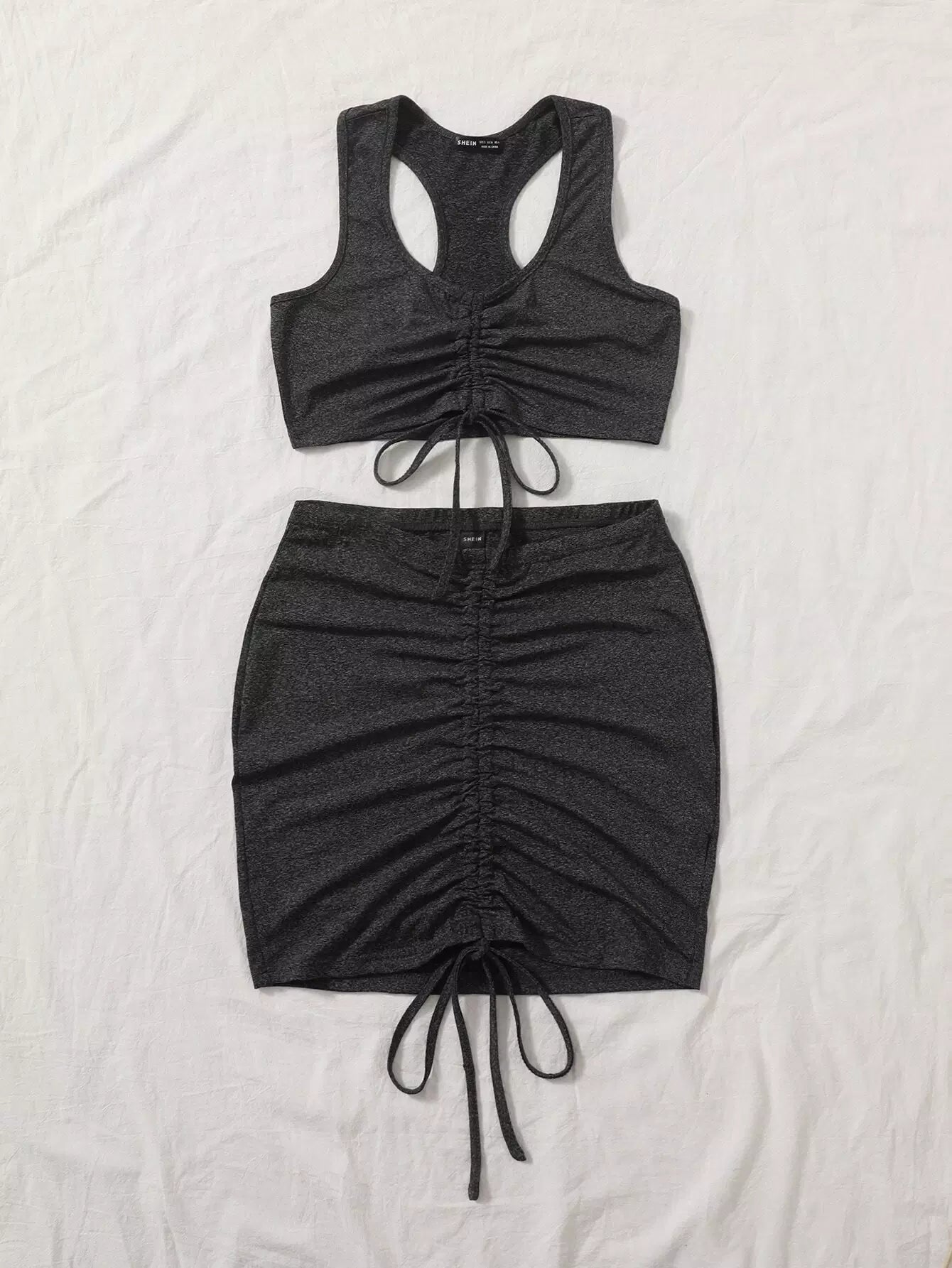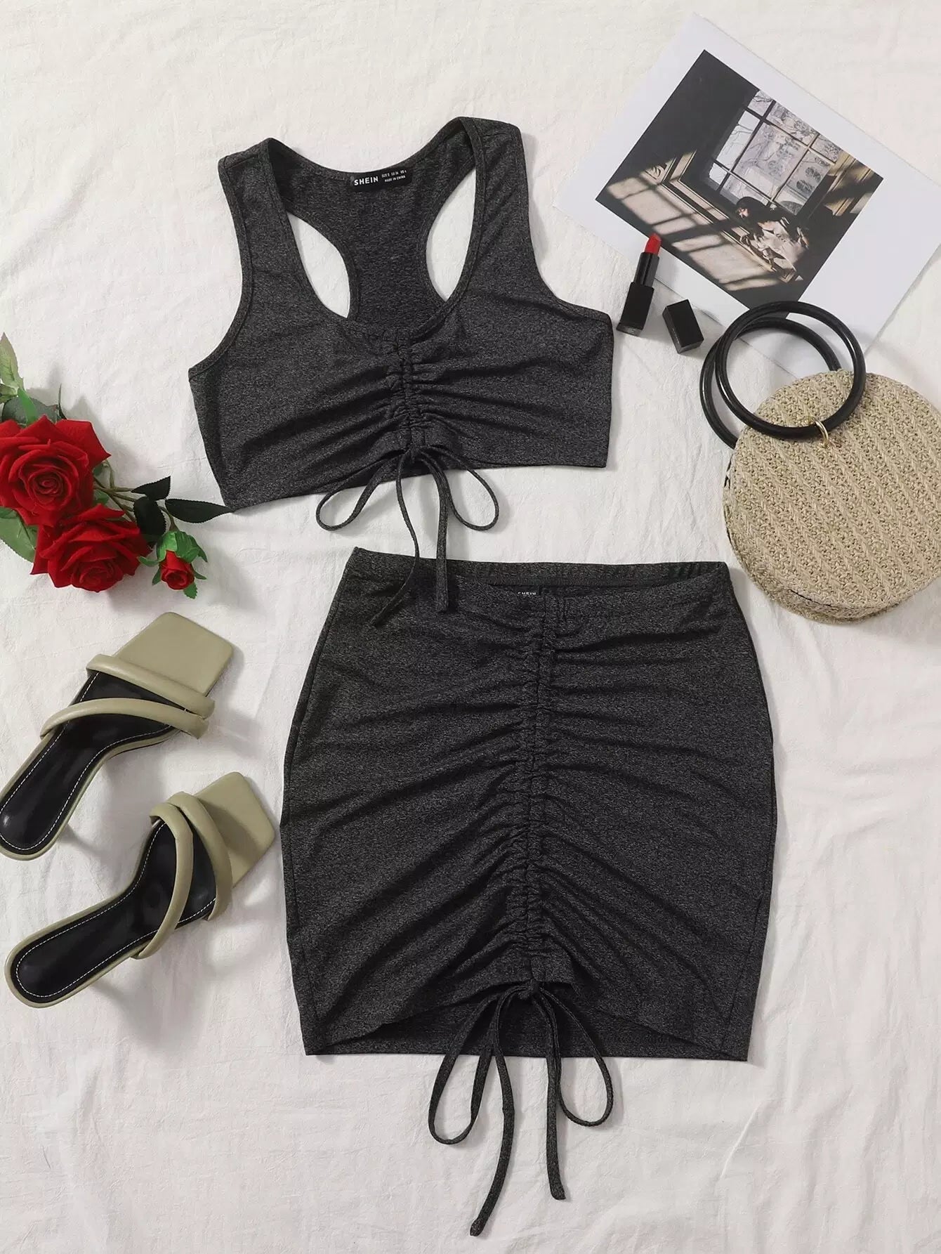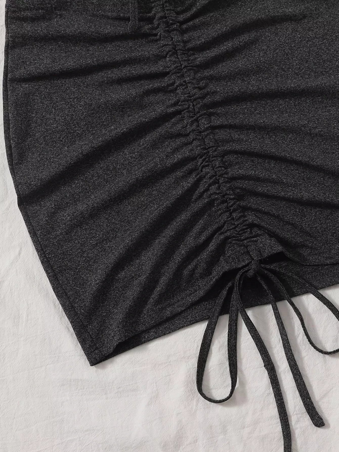 Ruched Drawstring Knot Crop Top & Bodycon Skirt Set