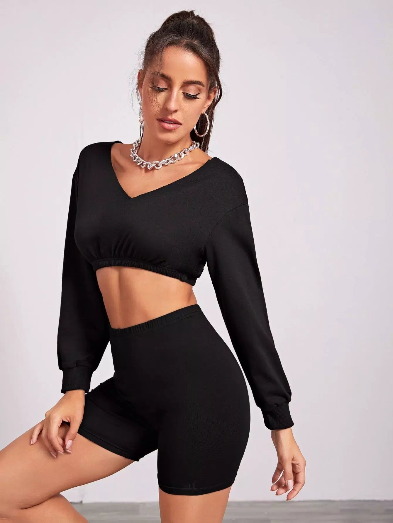 Solid Crop Pullover & Biker Shorts Set