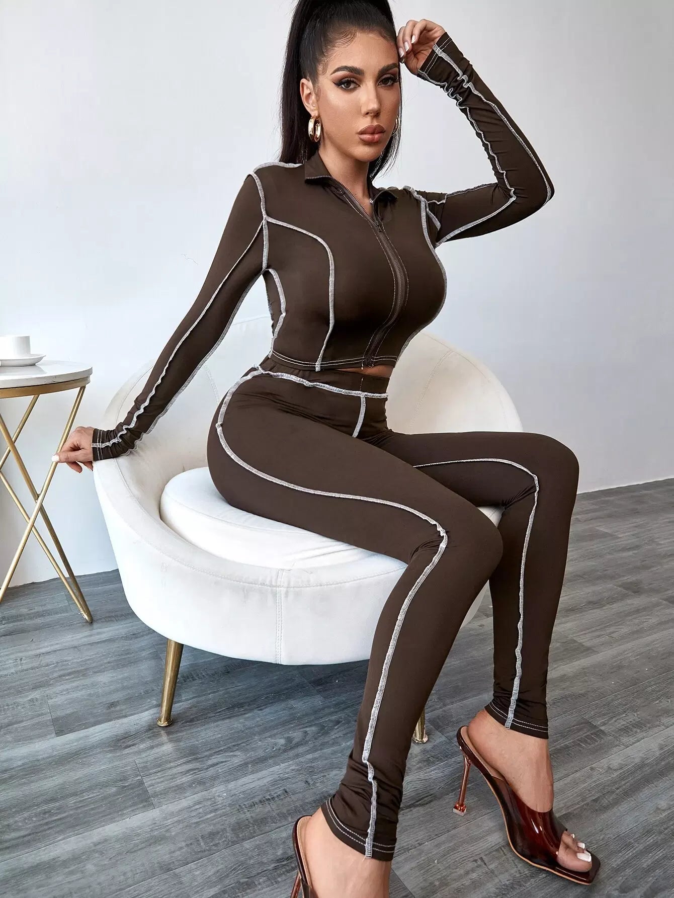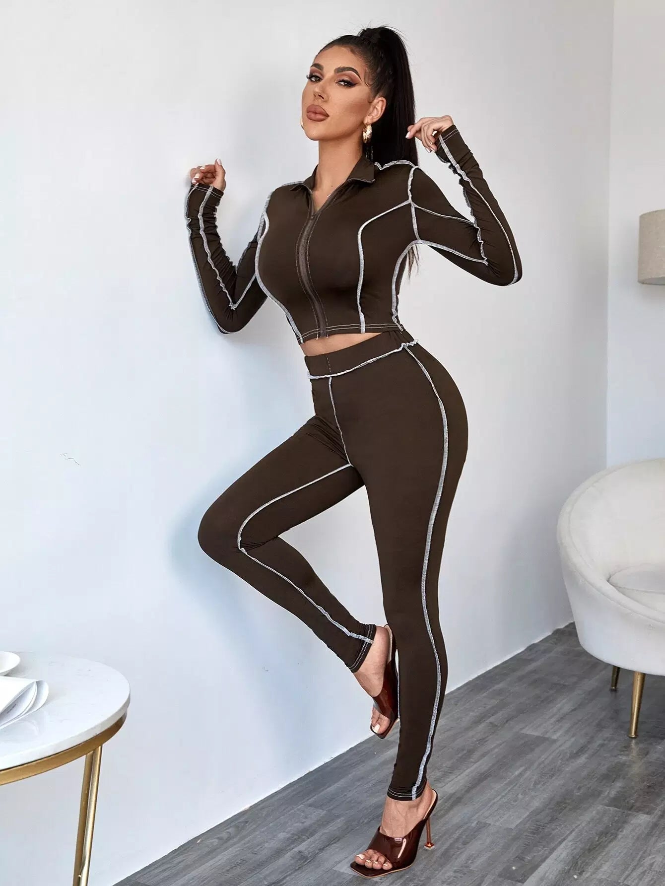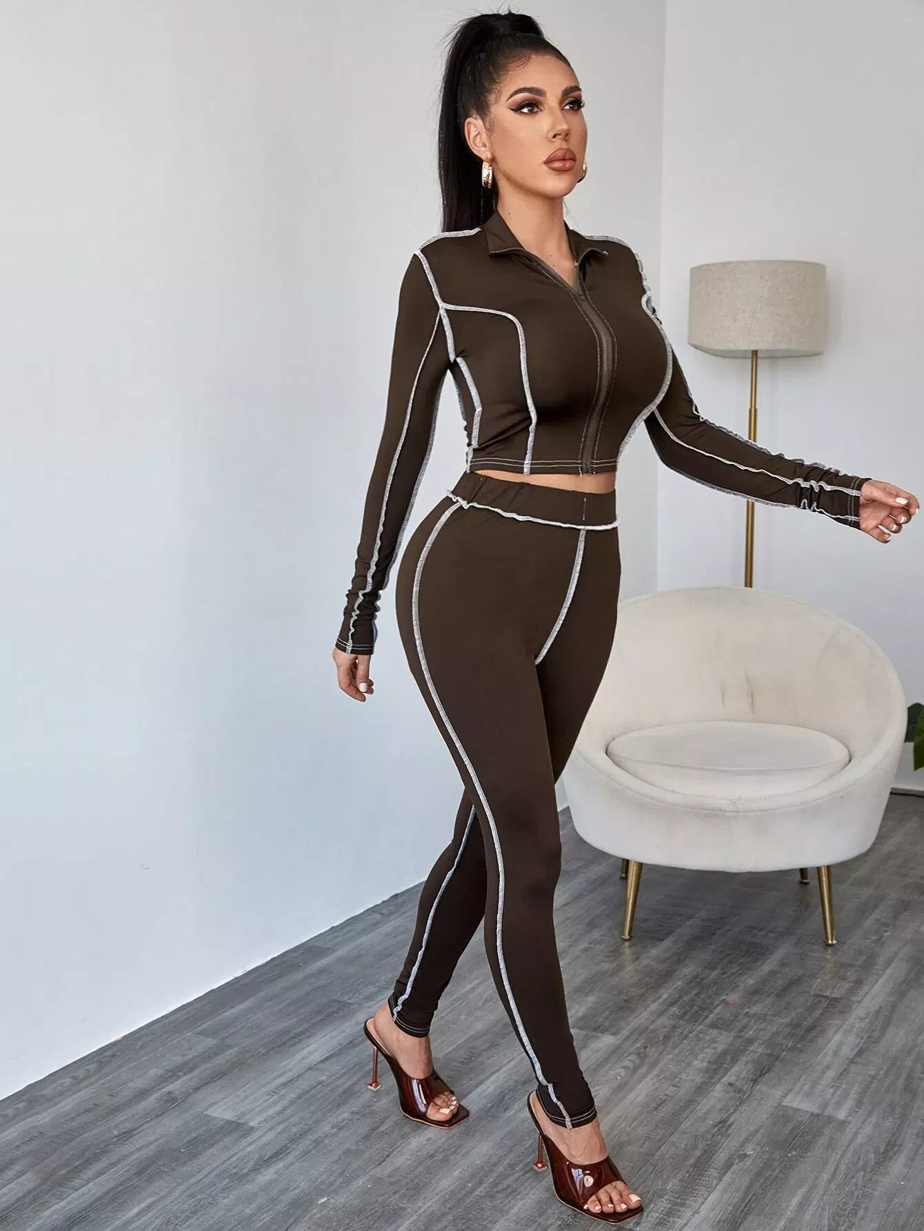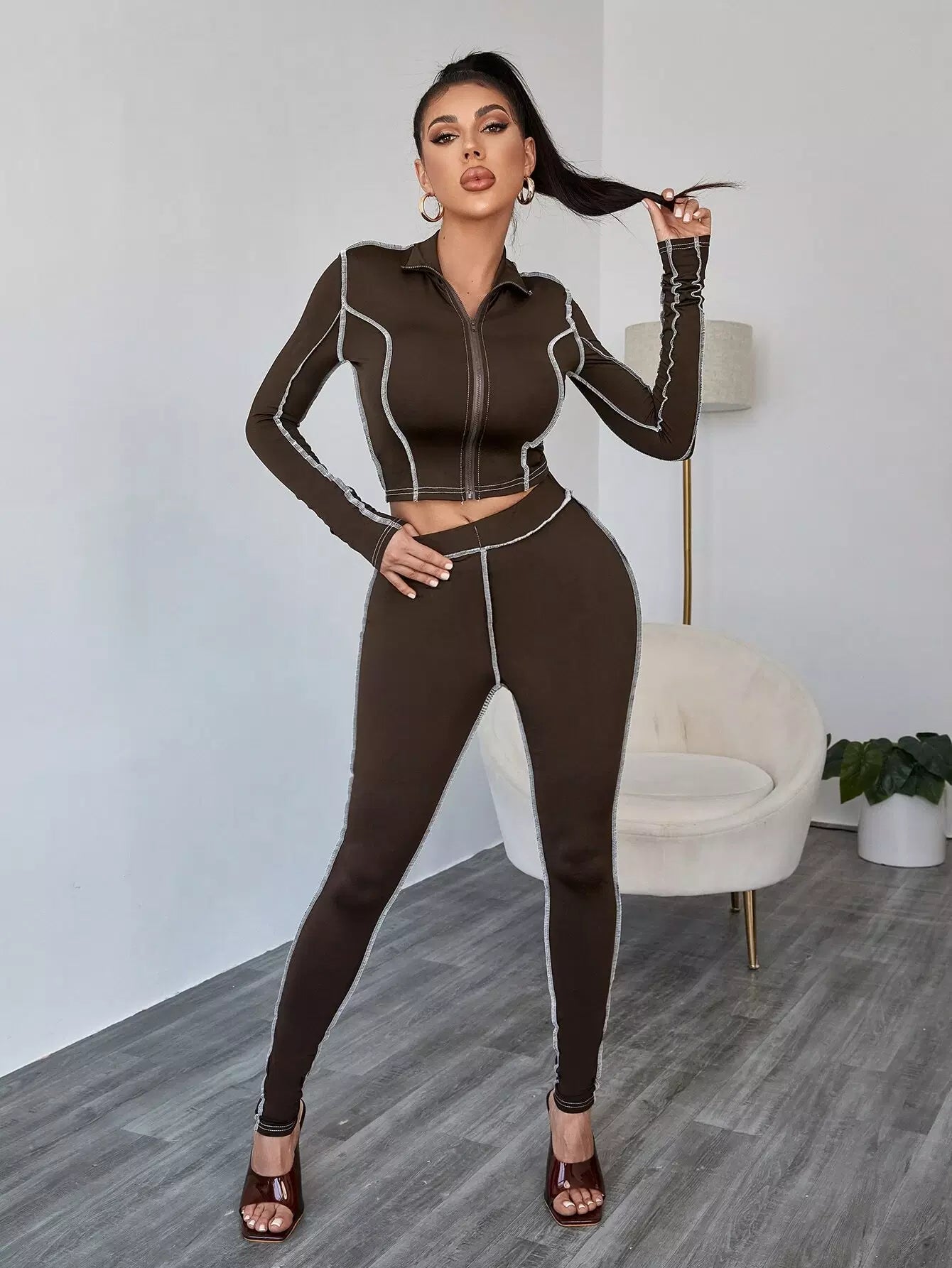 Top-stitching Zip Up Top & Leggings