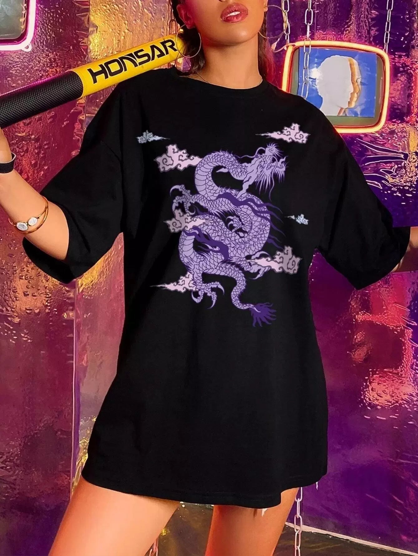 Dragon Print Oversized Tee