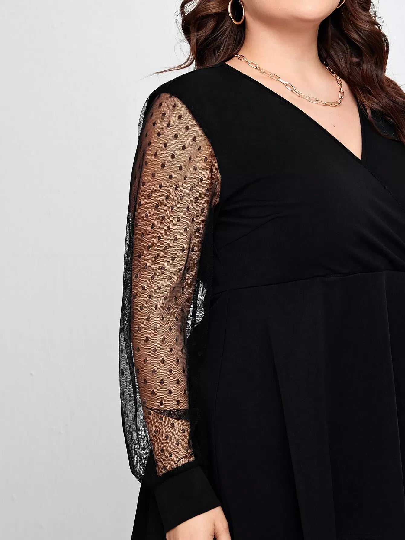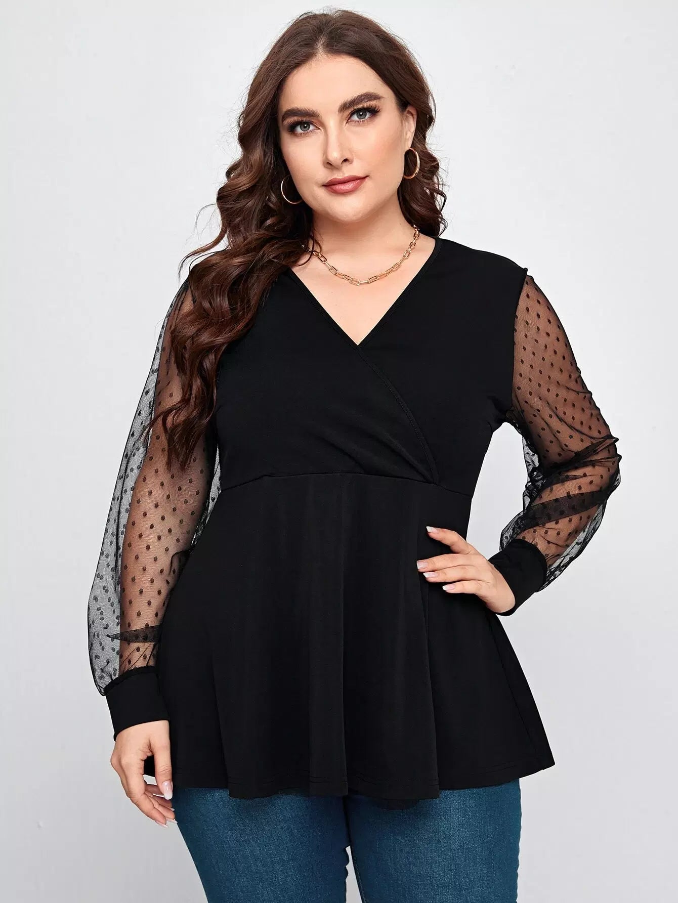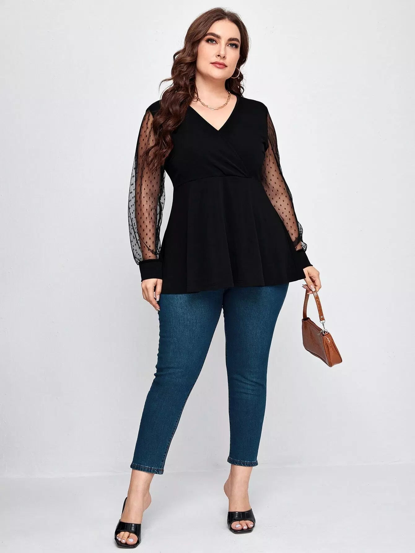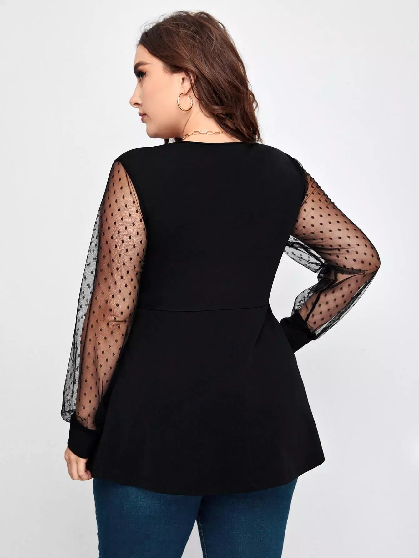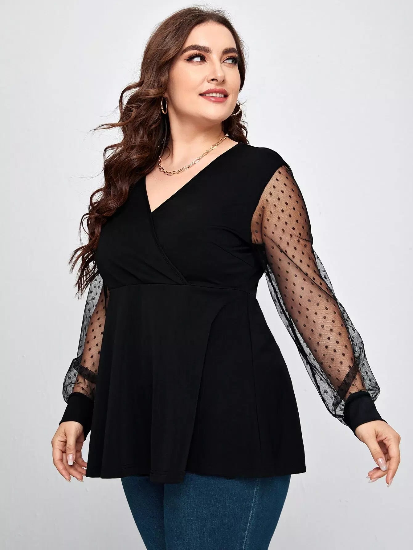 Plus Dobby Mesh Sleeve Surplice Front Top