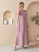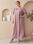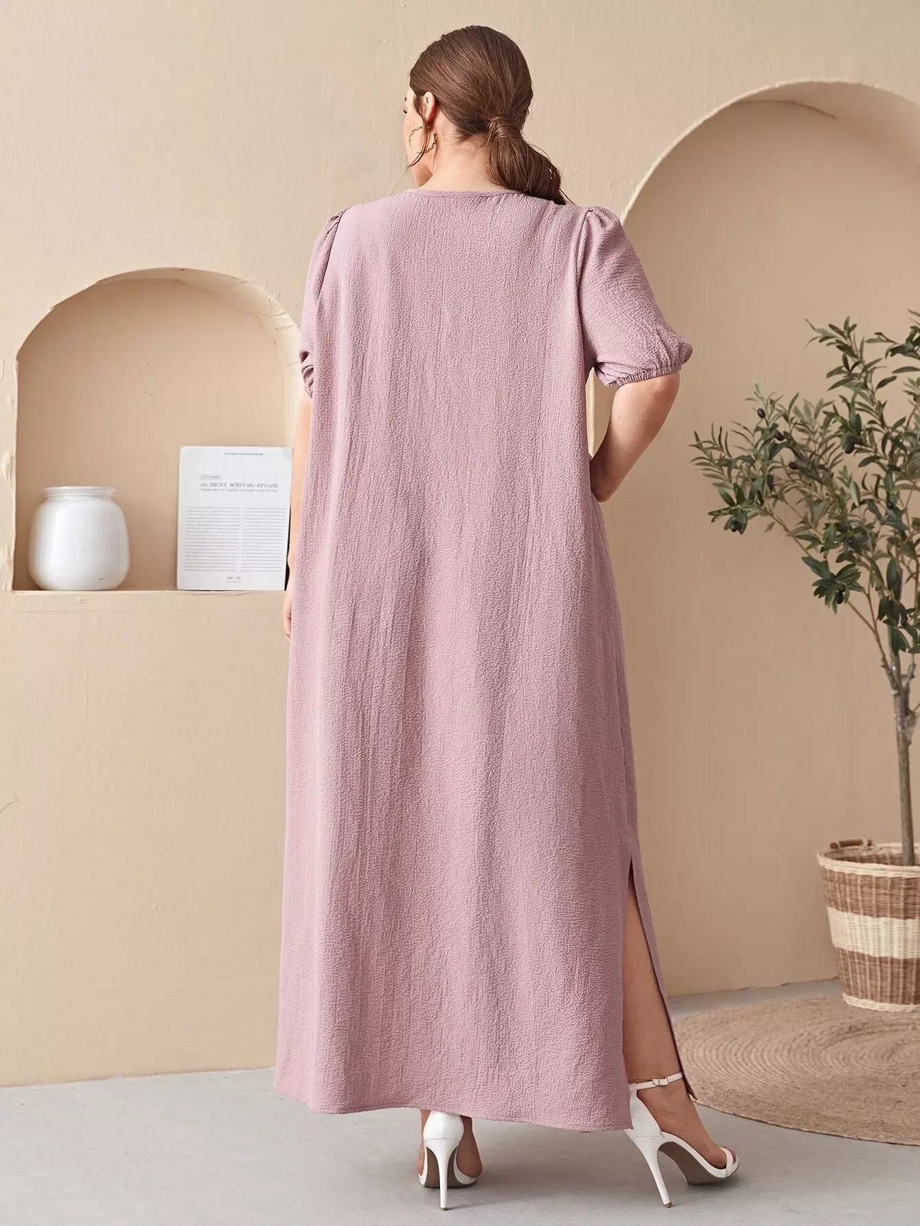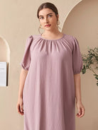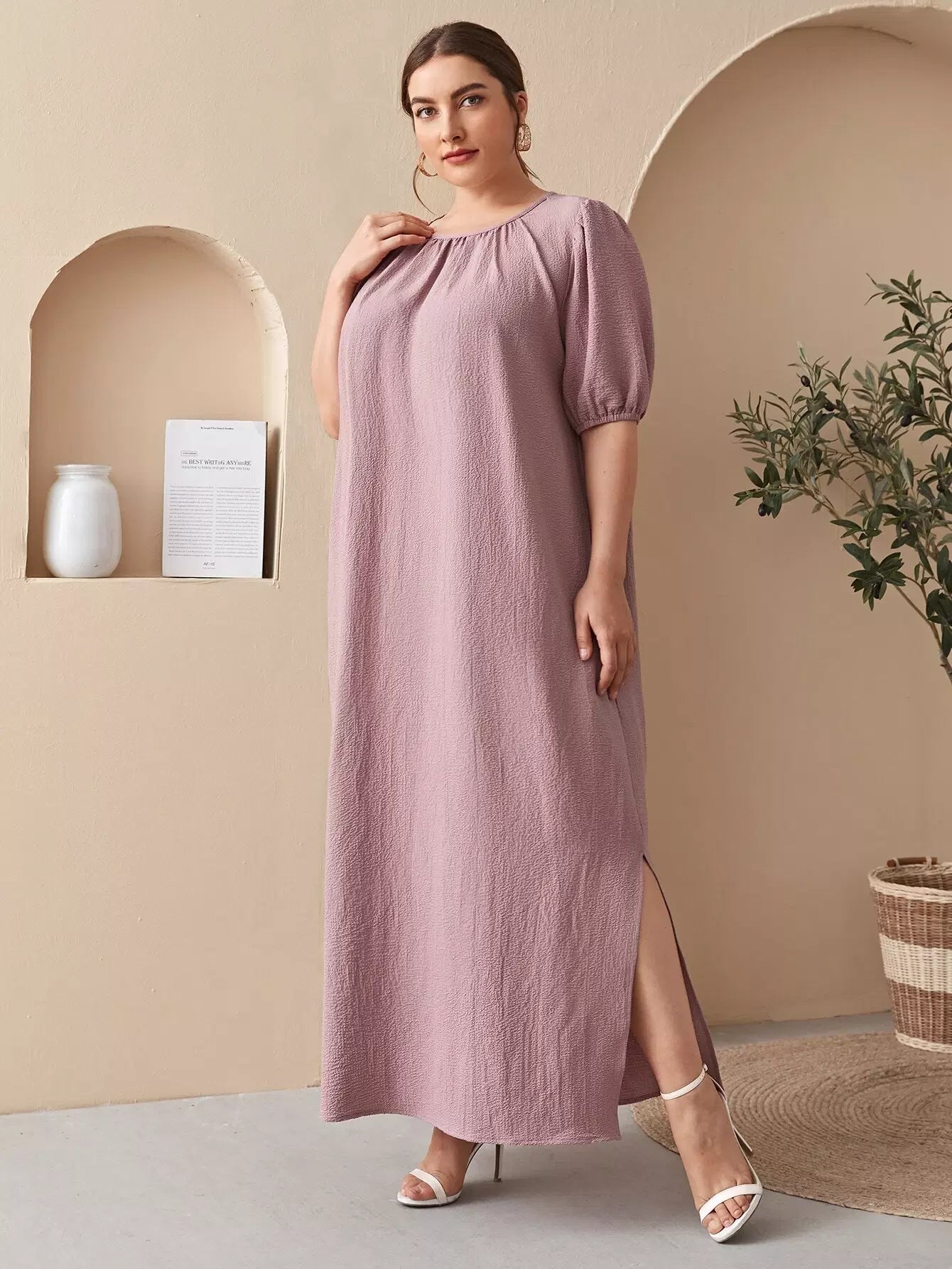 Women - Plus Puff Sleeve Slit Hem Solid Dress