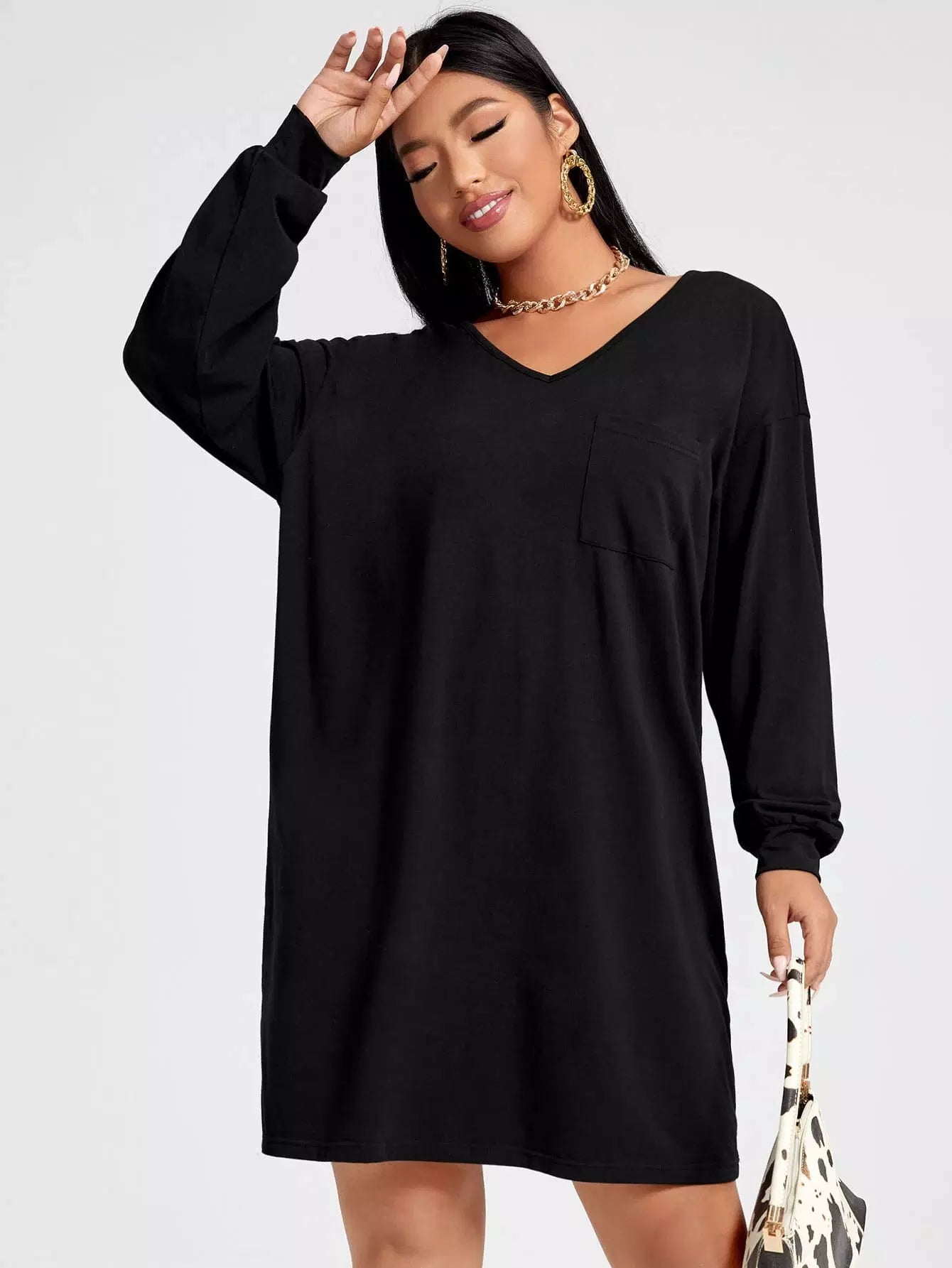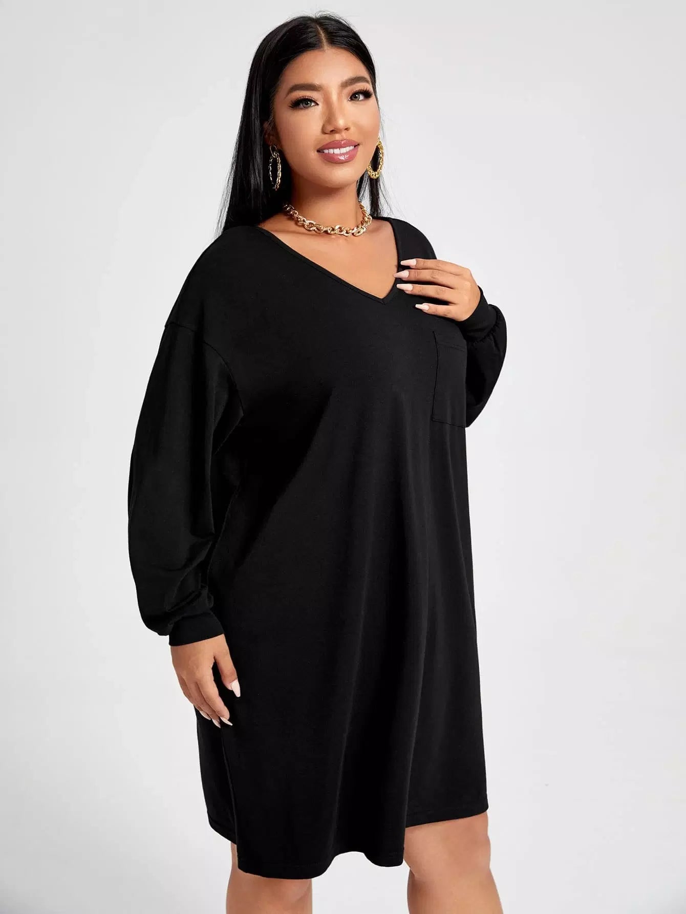 Women - Plus Solid V-Neck Dress
