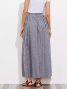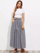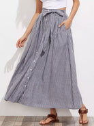 Women - Self Tie Hidden Pocket Detail Button Up Pinstripe Skirt