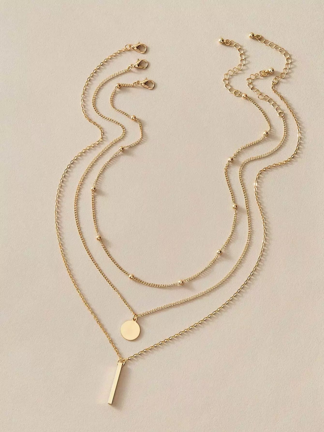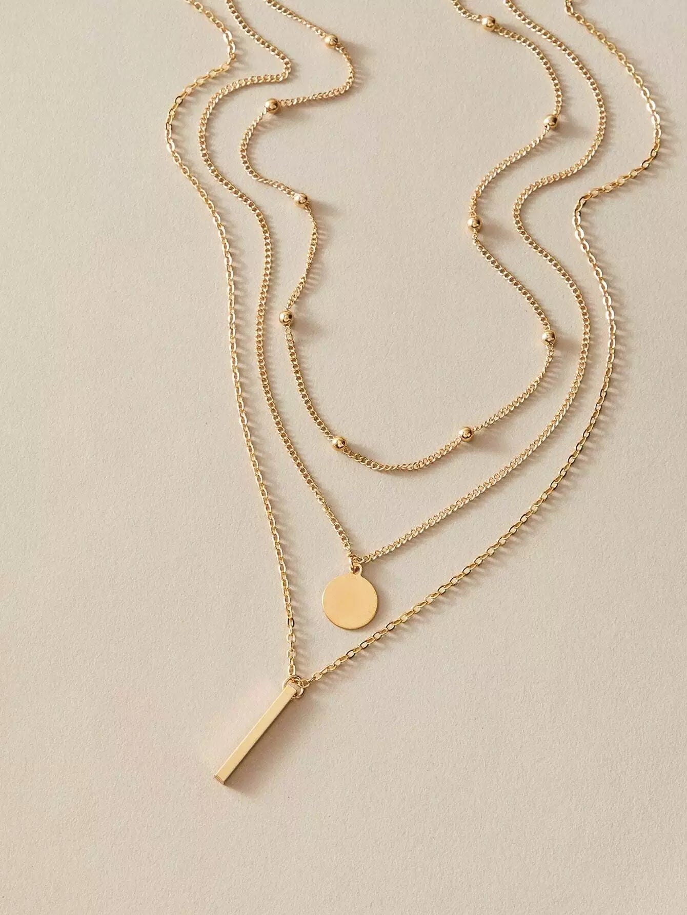 3pcs Bar & Disc Charm Necklace