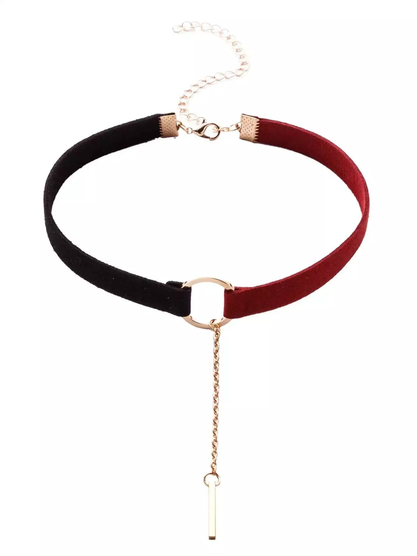 Black And Red Metal Ring Bar Pendant Choker Necklace
