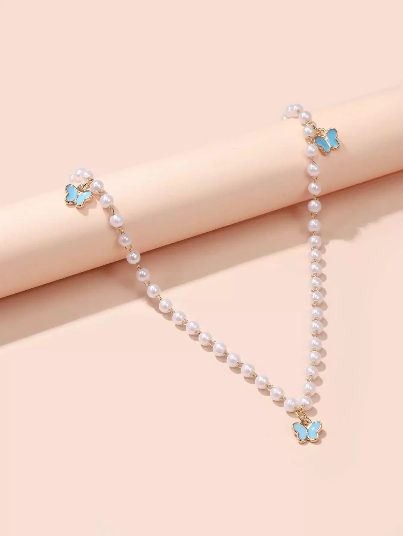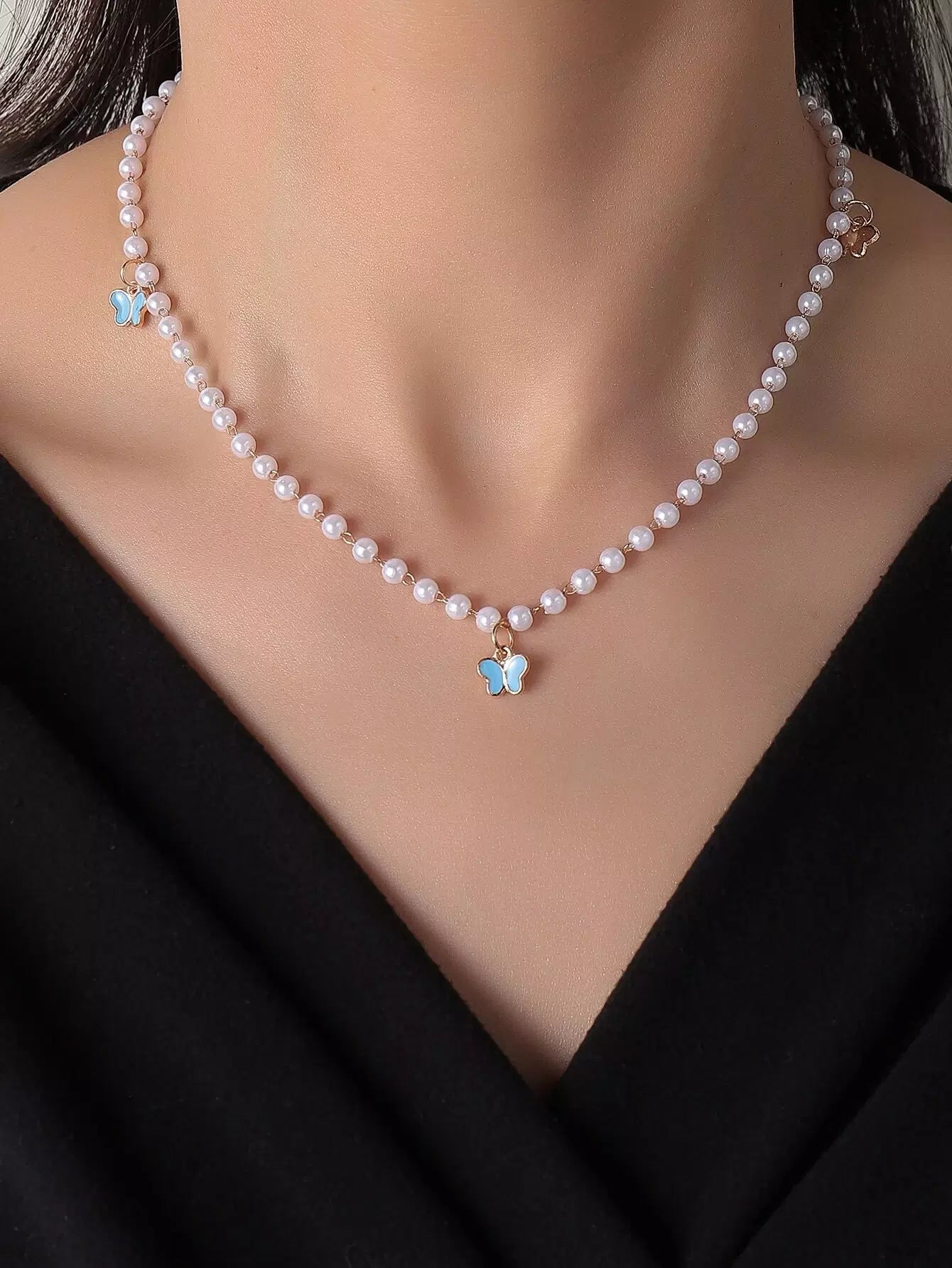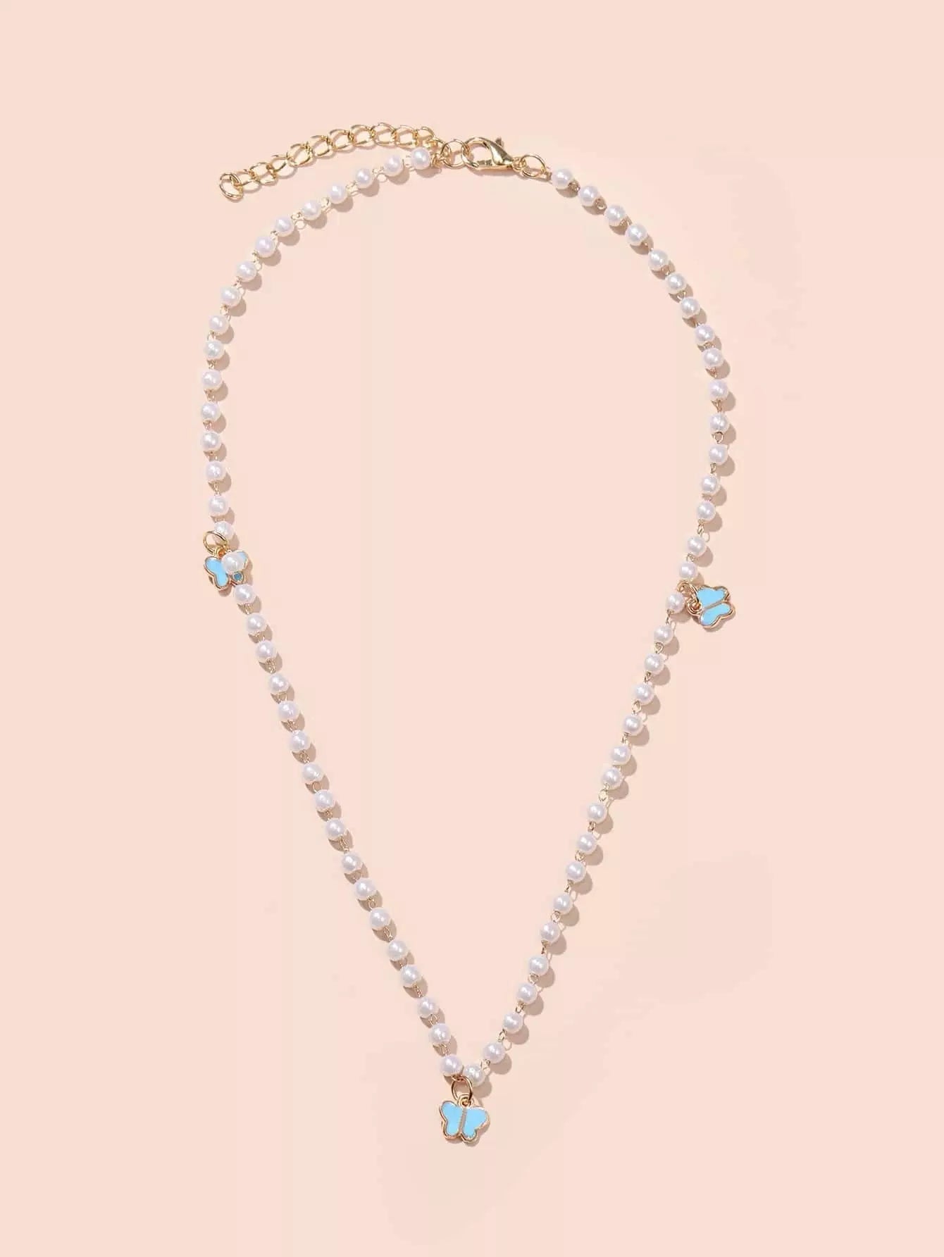 Butterfly Charm Faux Pearl Beaded Necklace