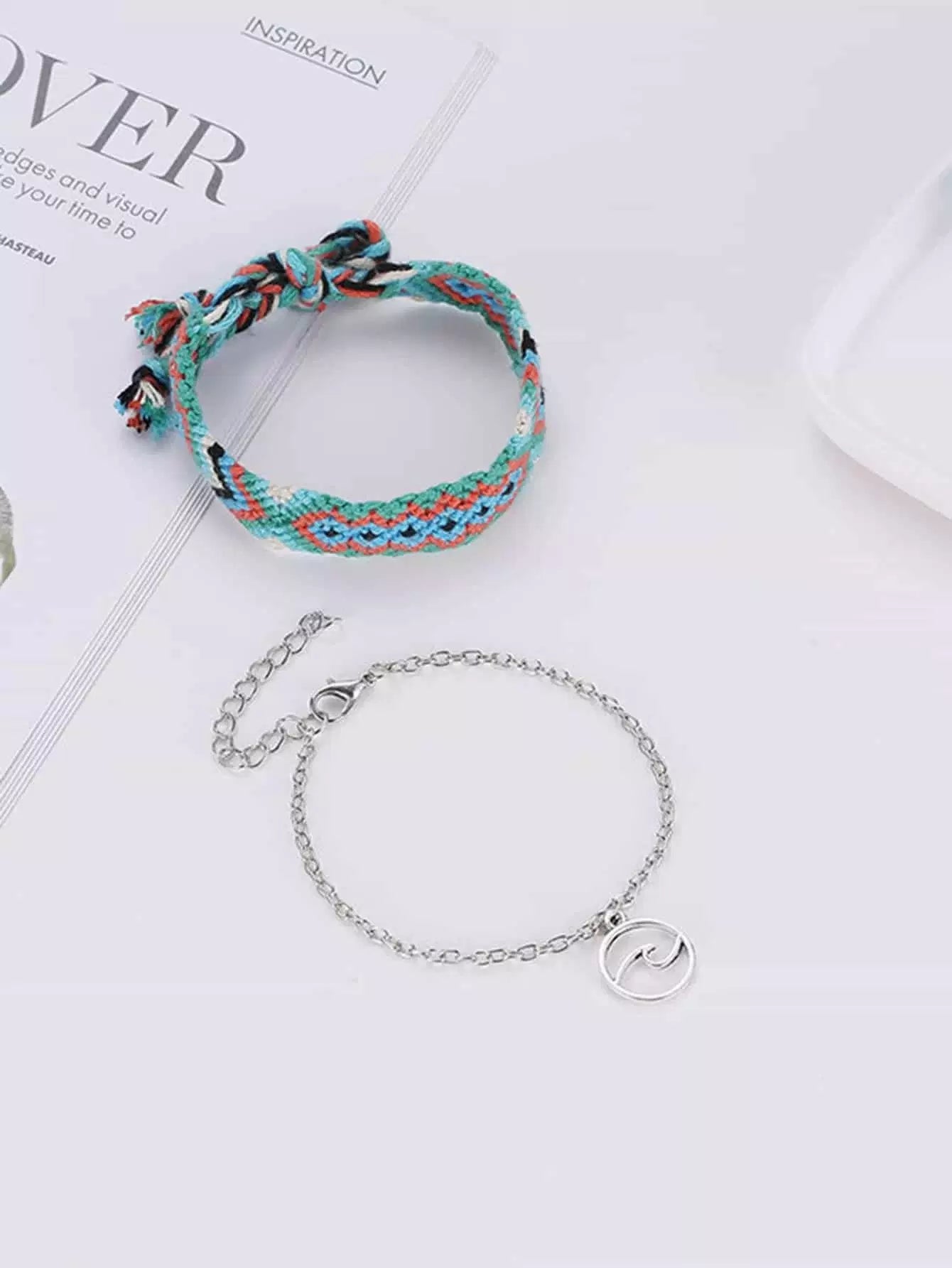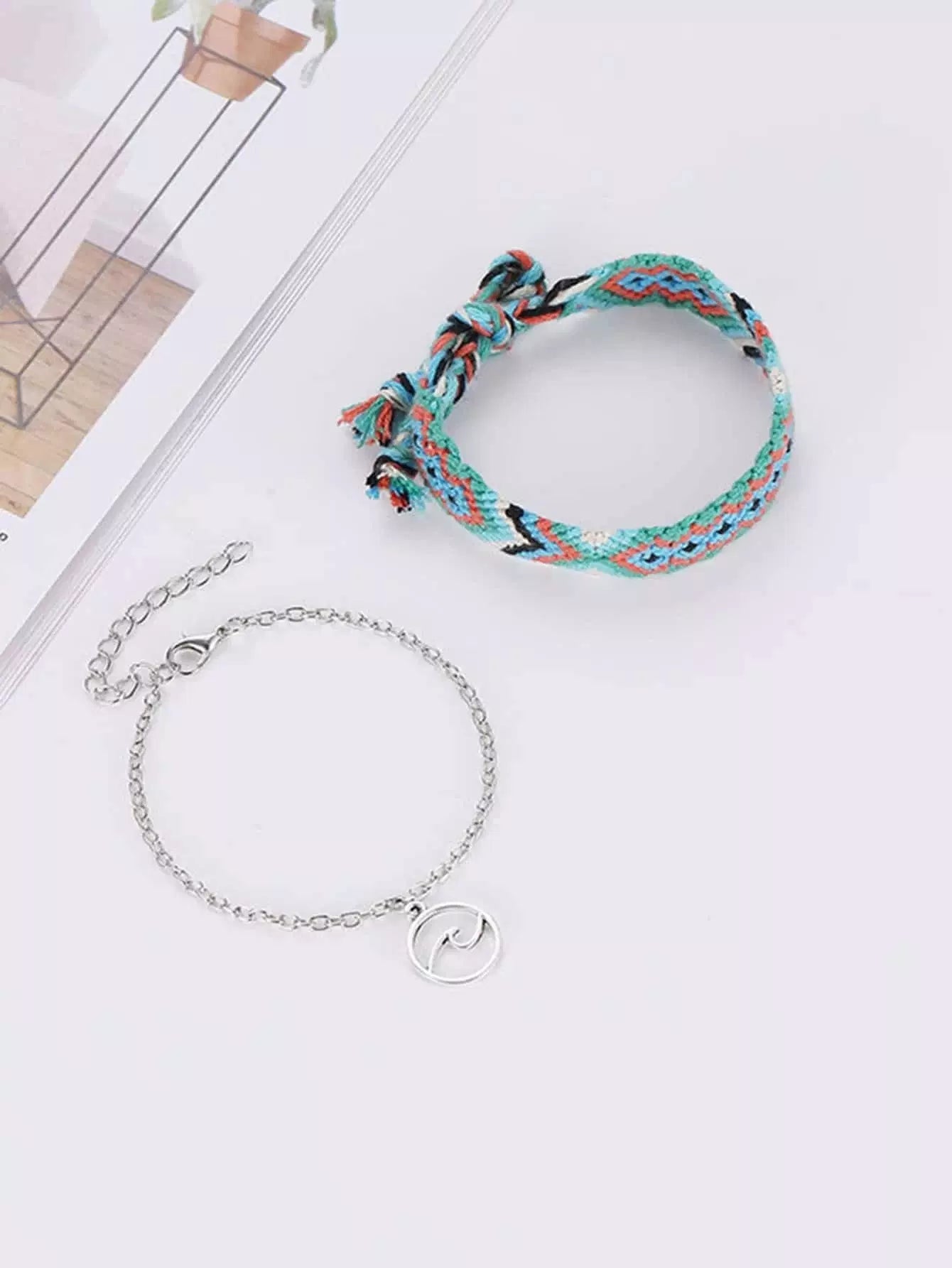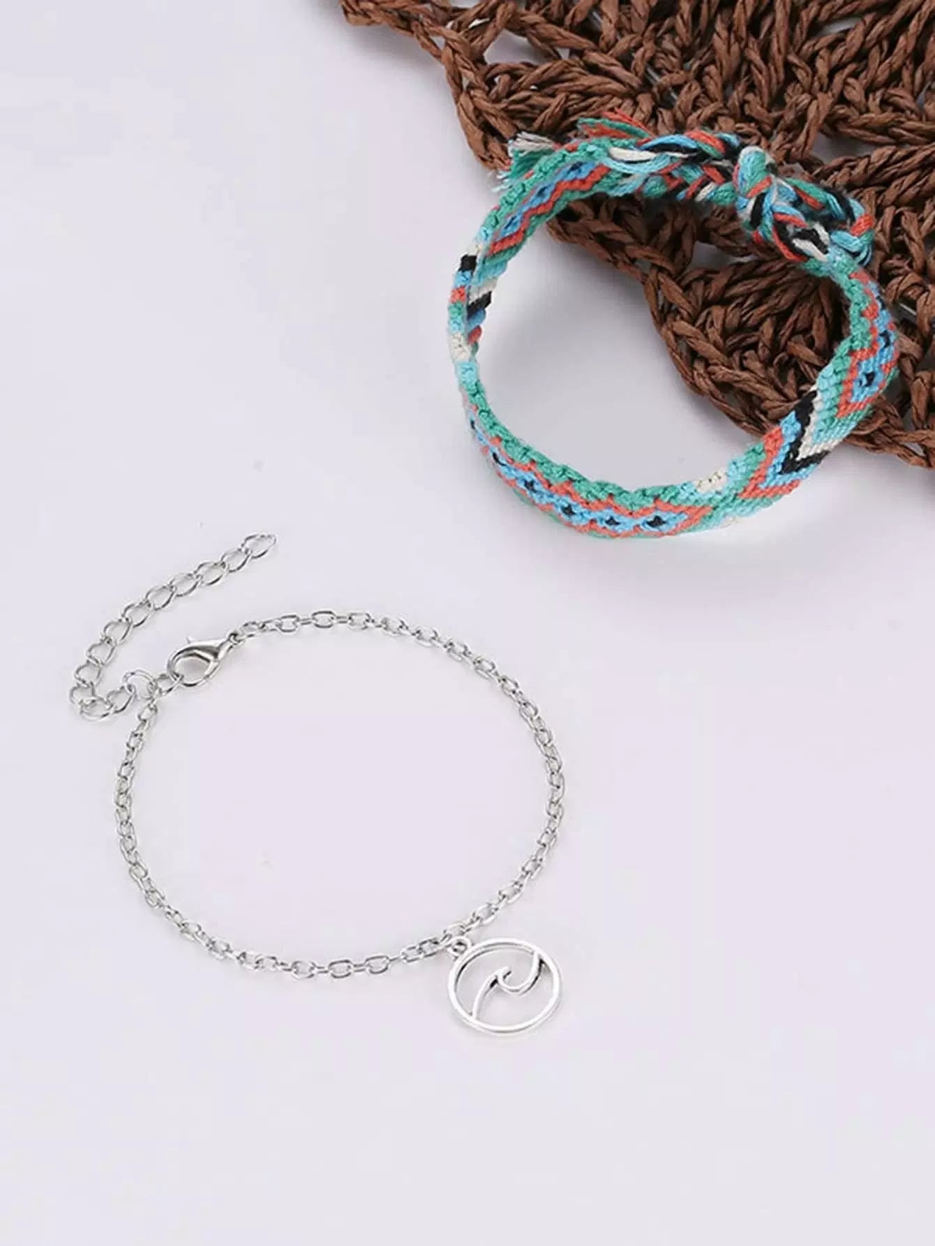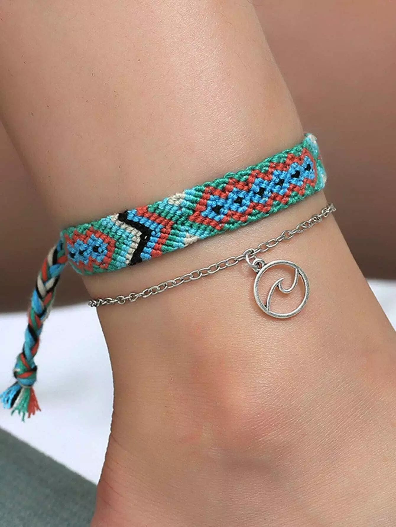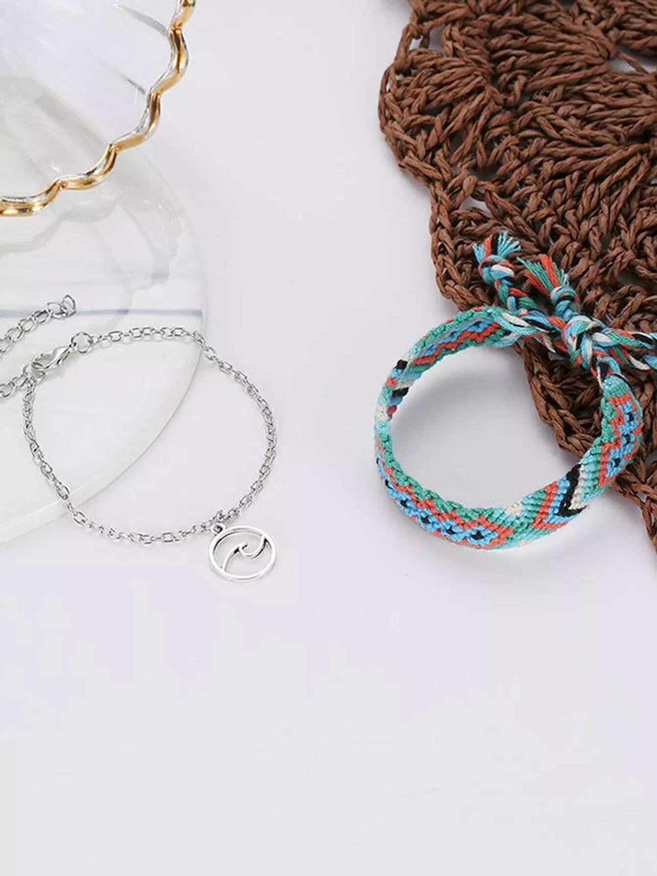 Women - Color Block & Circle Detail Anklet Set 2pcs