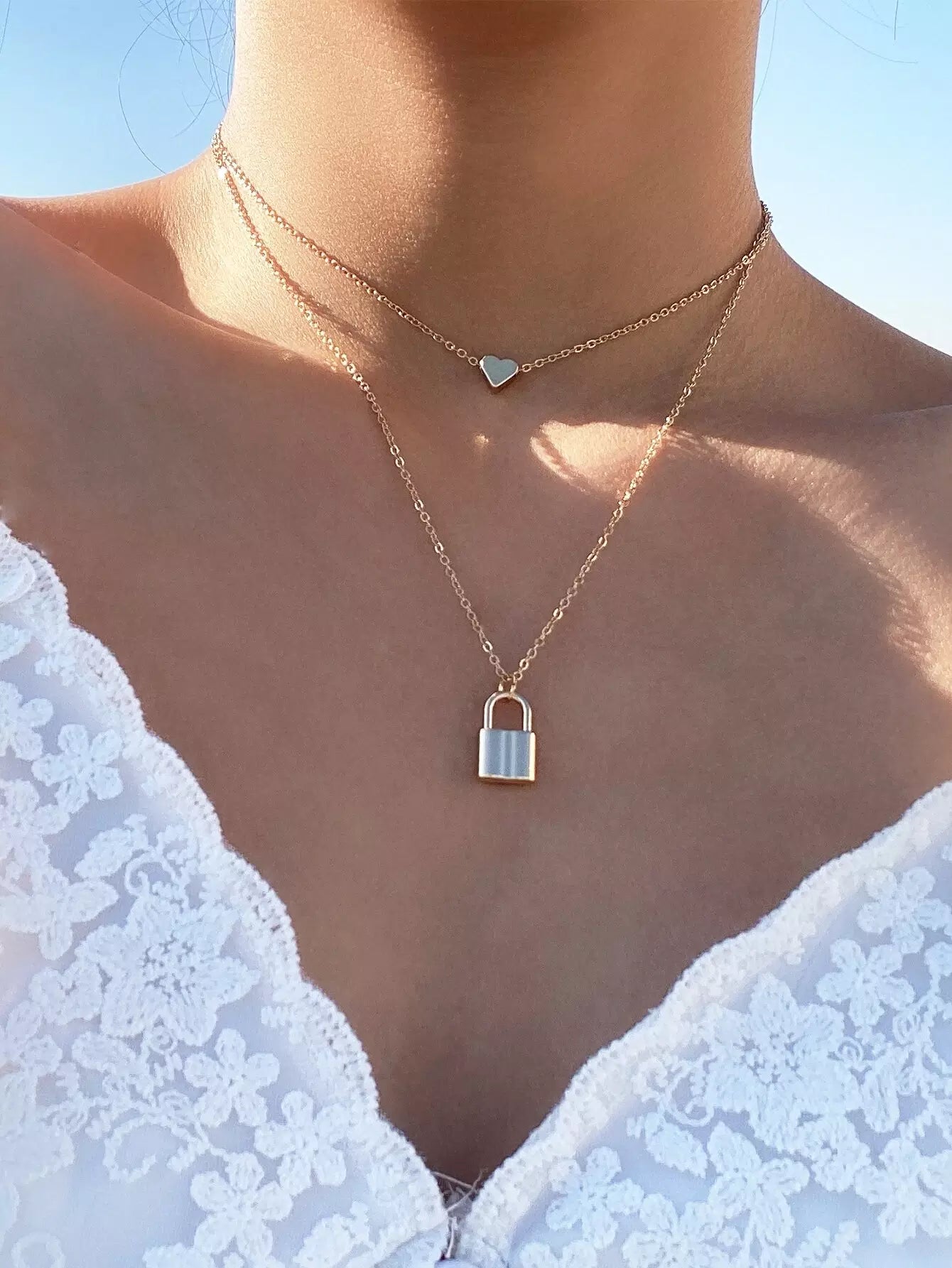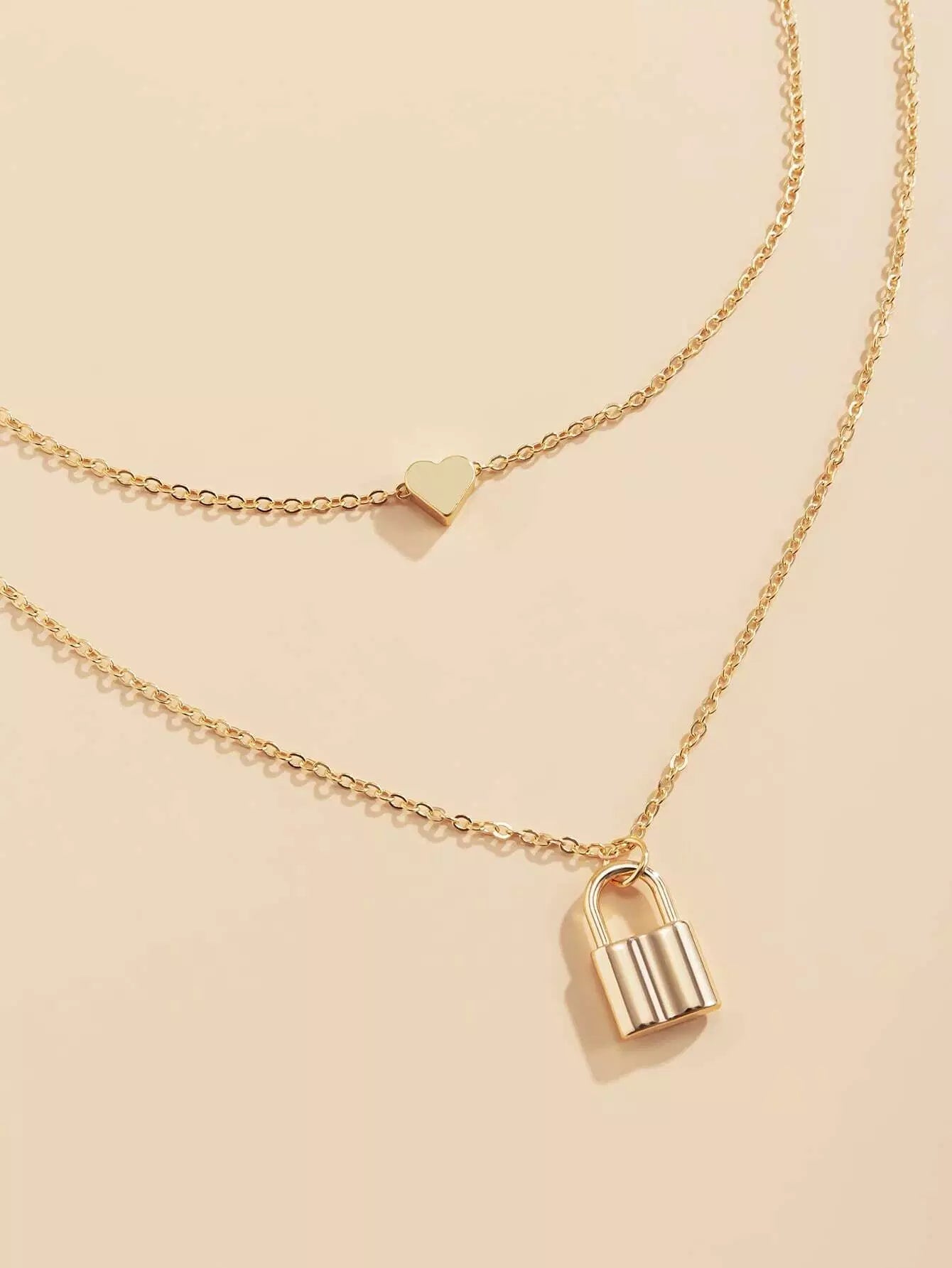 Lock Pendant Layered Necklace