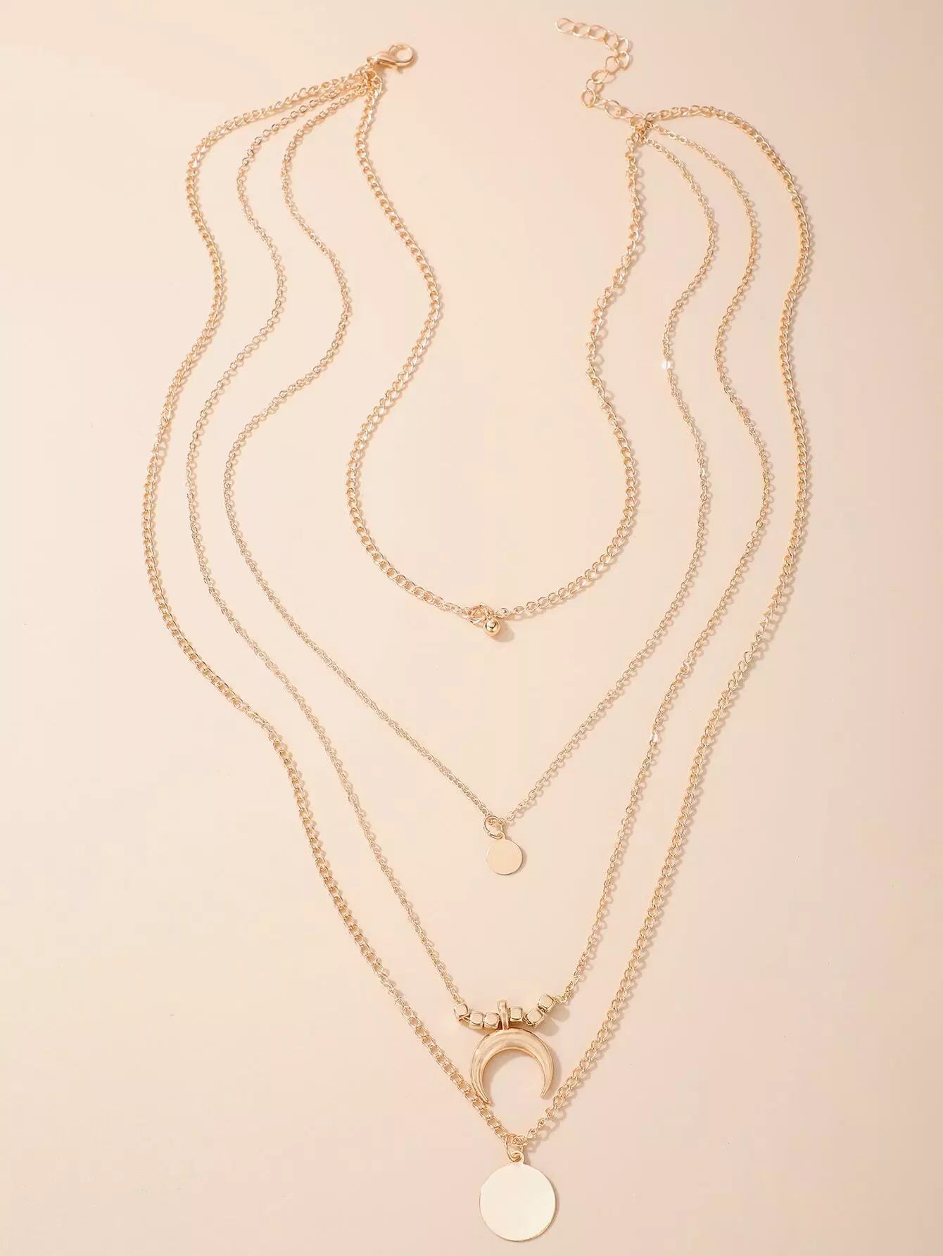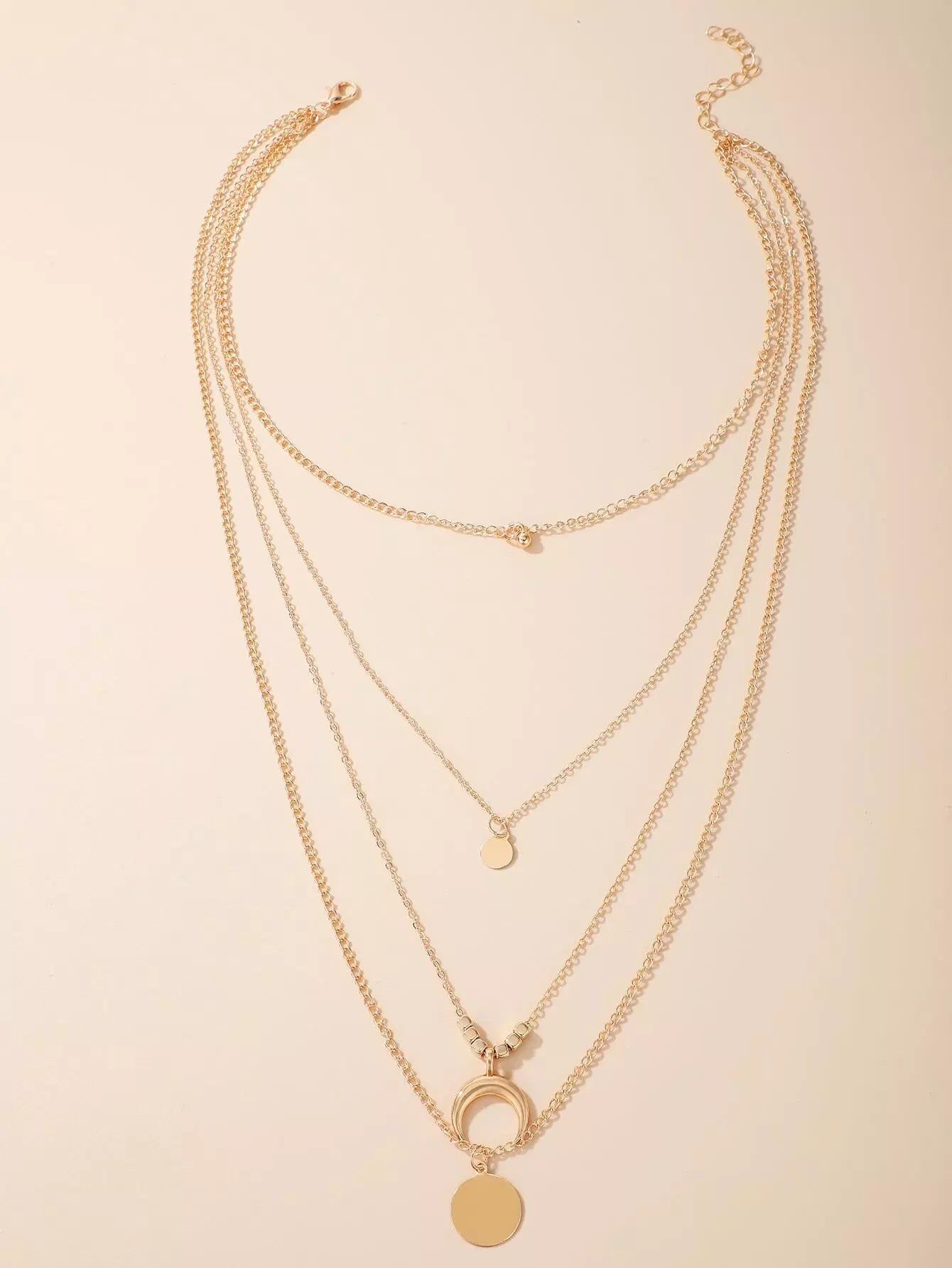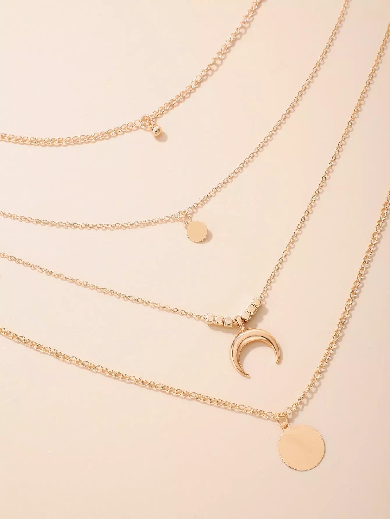 Moon & Round Pendant Layered Chain Necklace