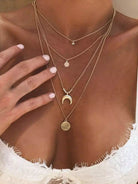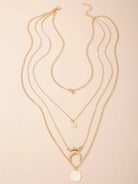 Women - Moon & Round Pendant Layered Chain Necklace