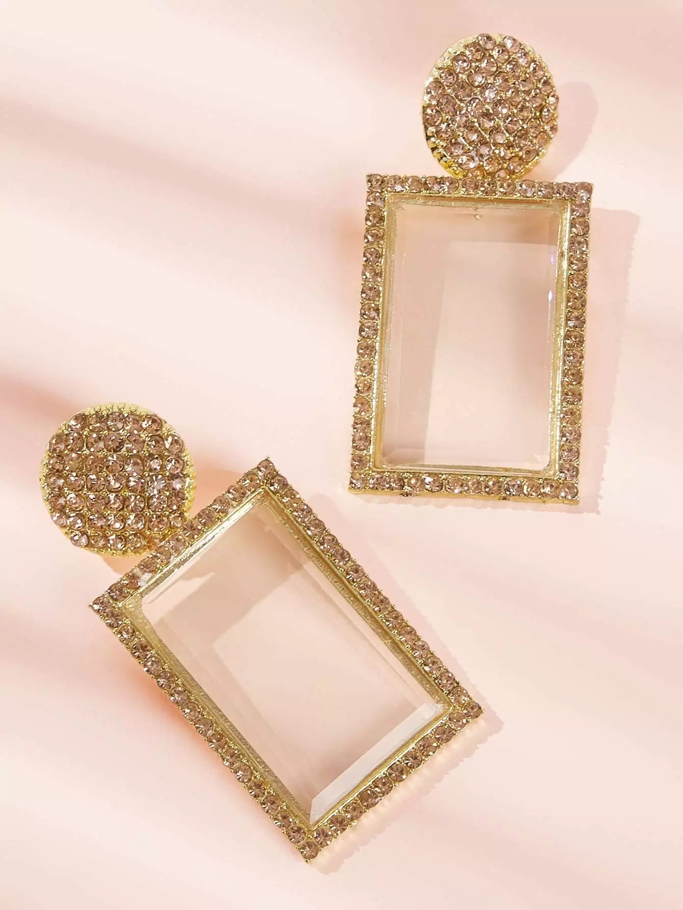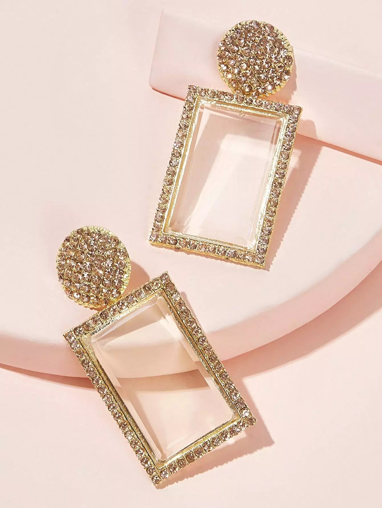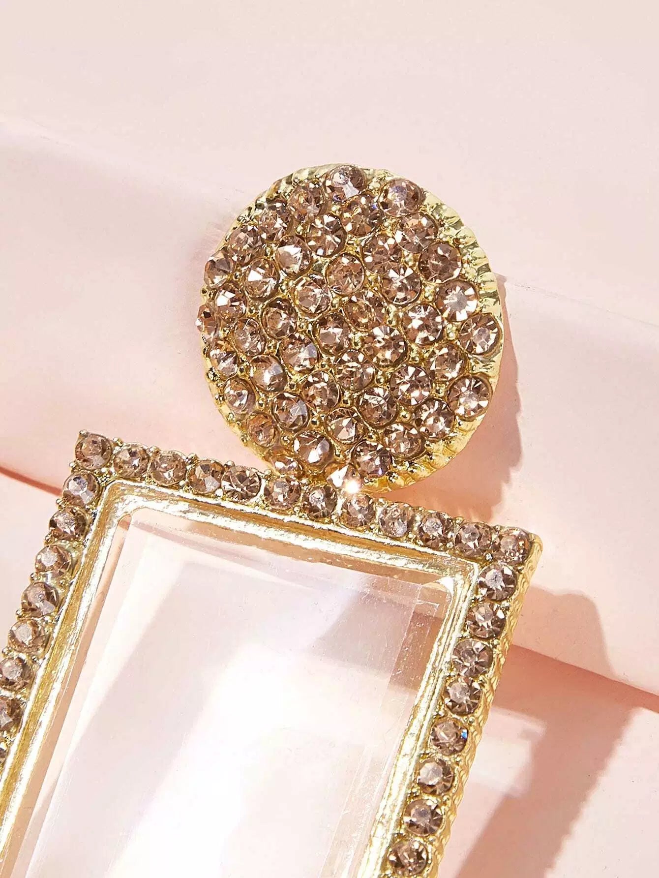 Rhinestone Decor Geometric Drop Earrings 1pair