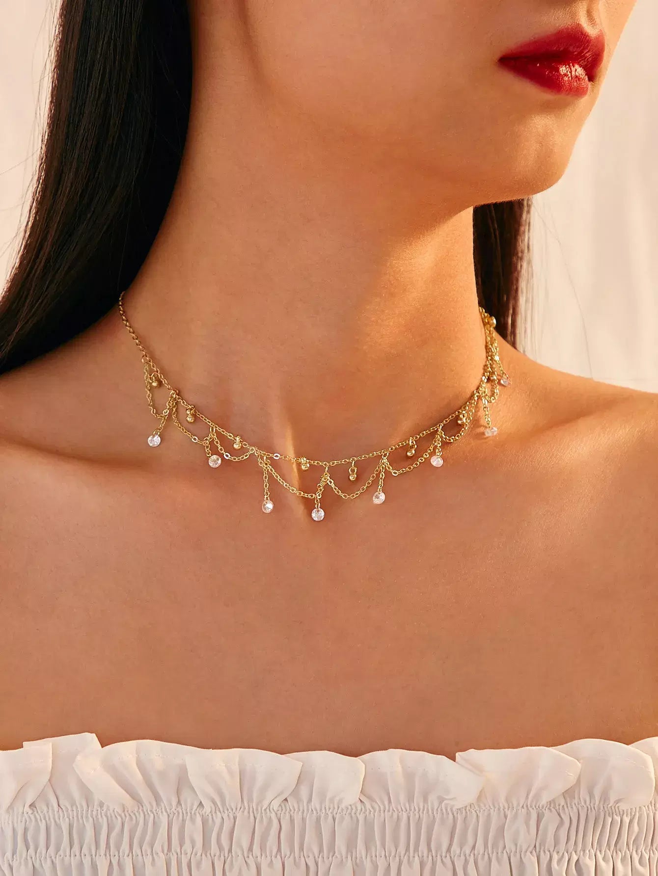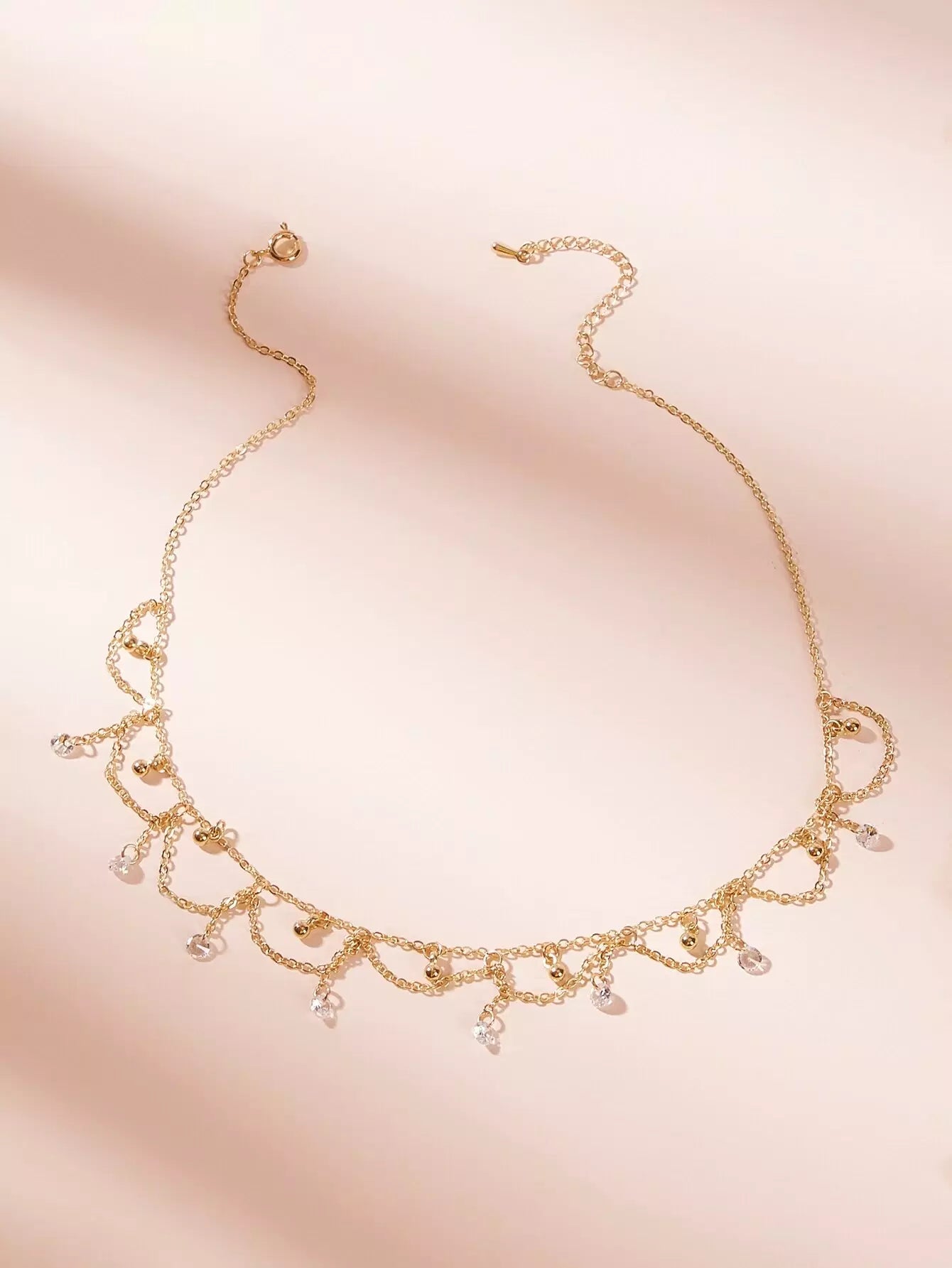 Women - Rhinestone Decor Tassel Charm Choker 1pc