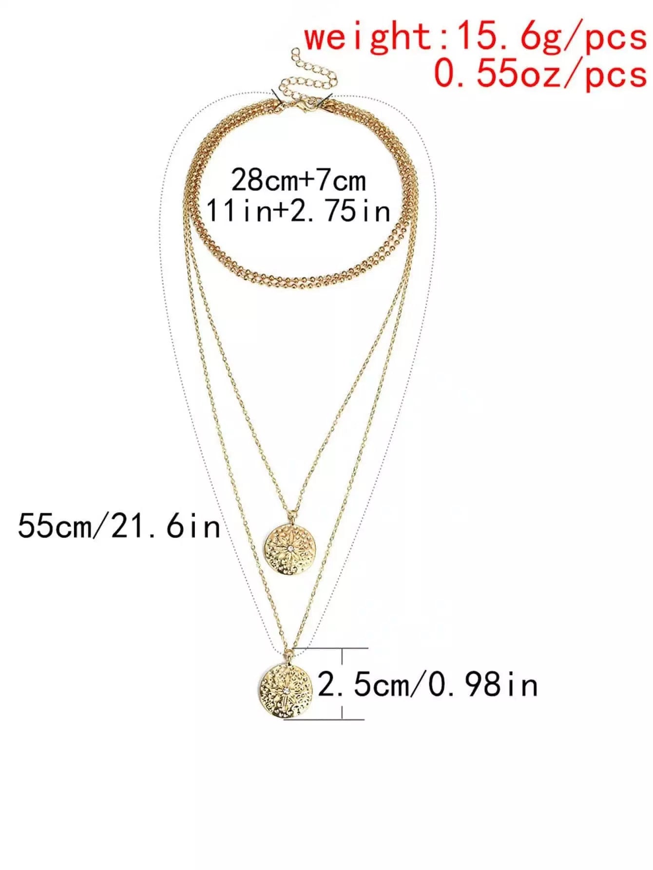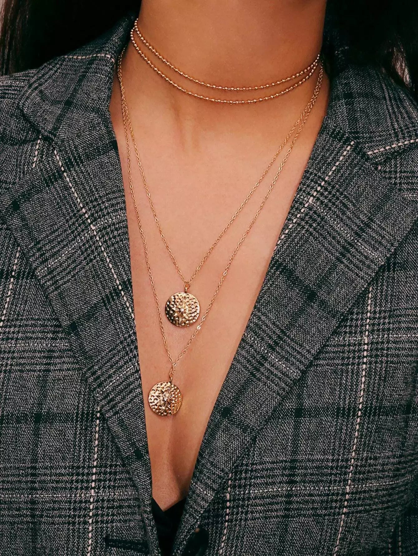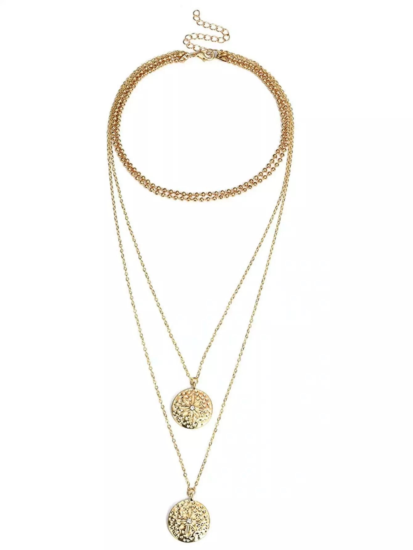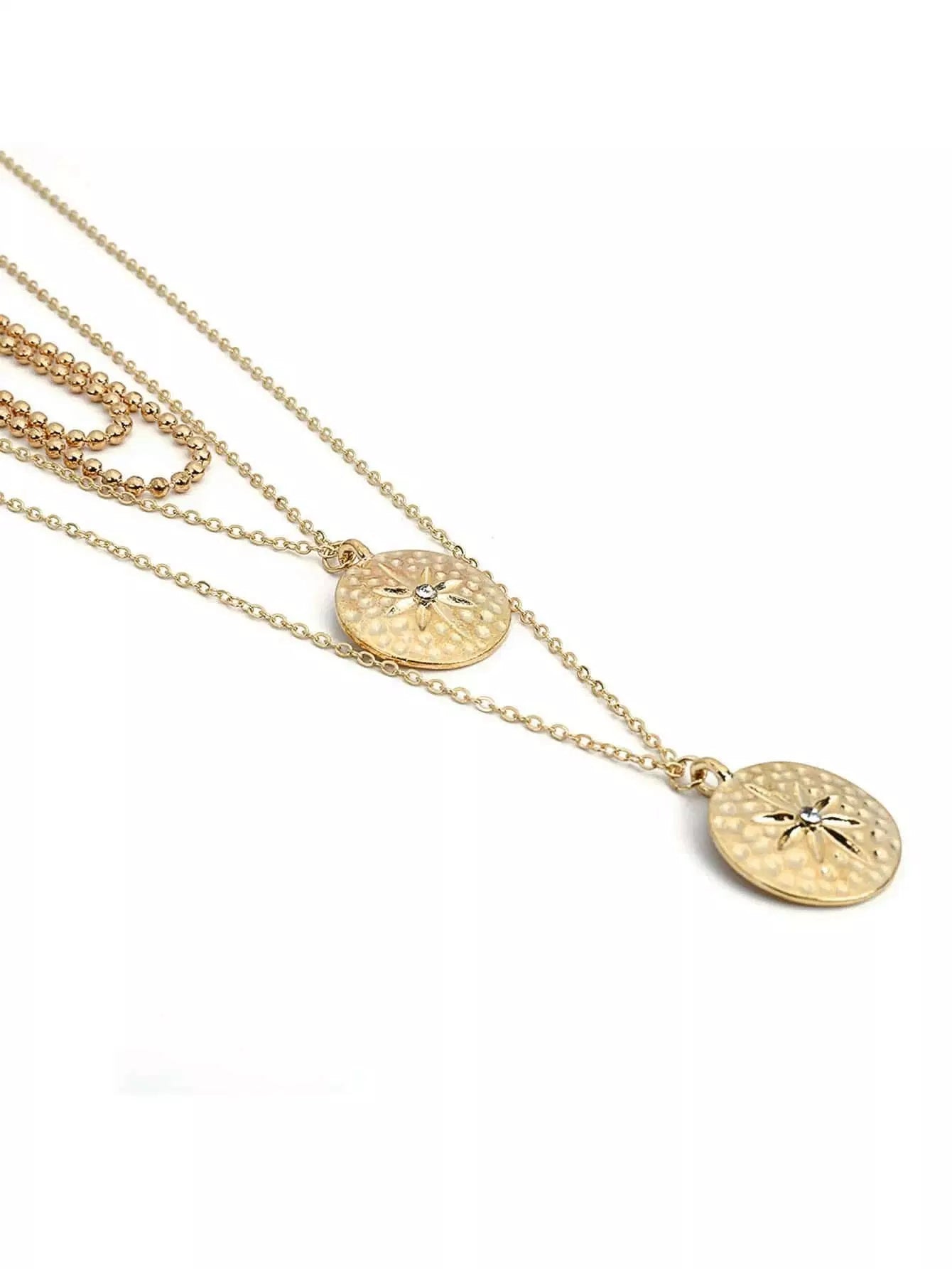 Round Pendant Layered Chain Necklace