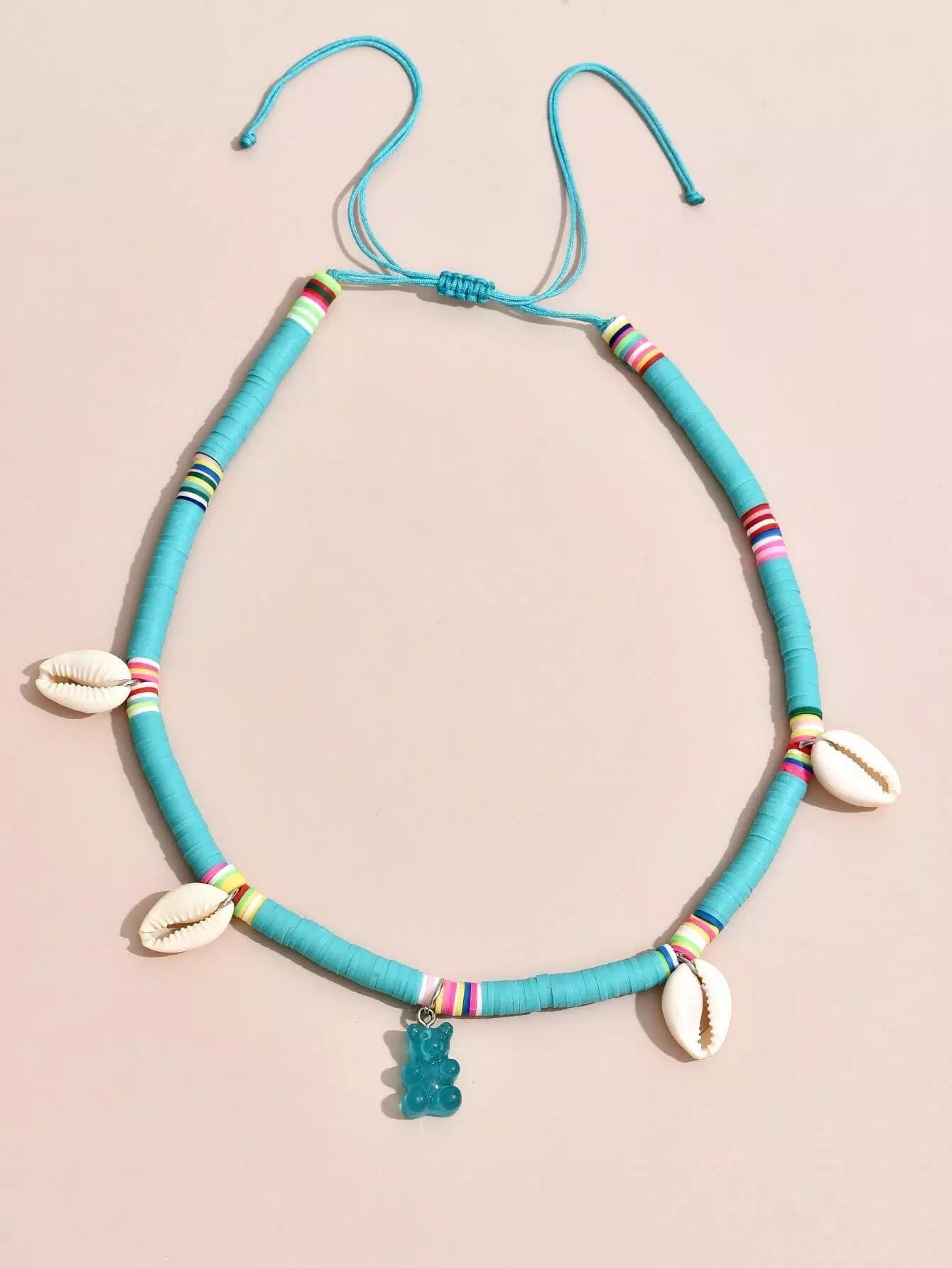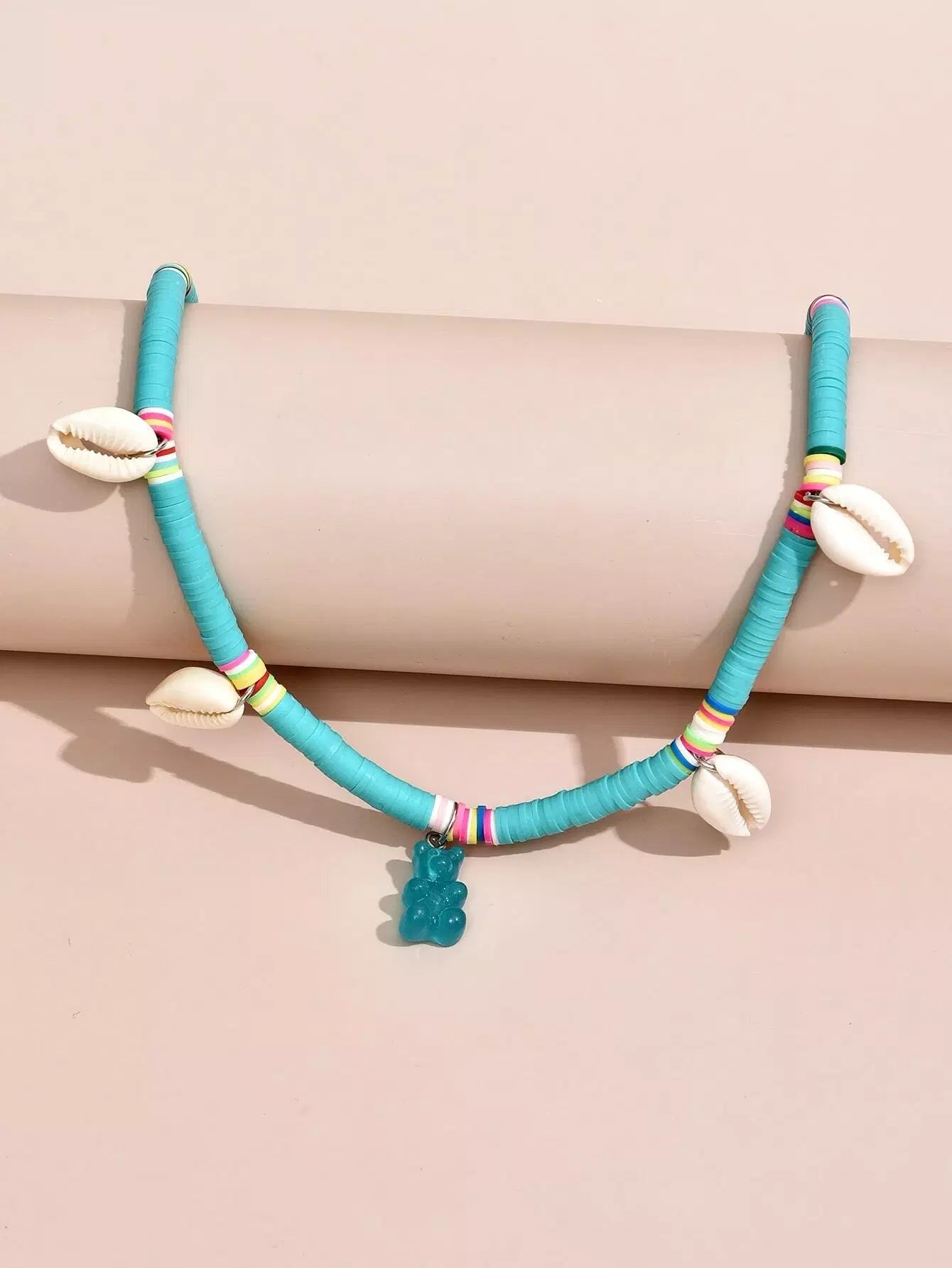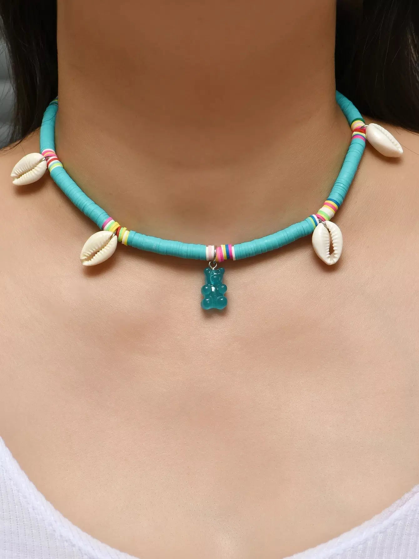 Shell & Bear Charm Soft Clay Beaded Necklace