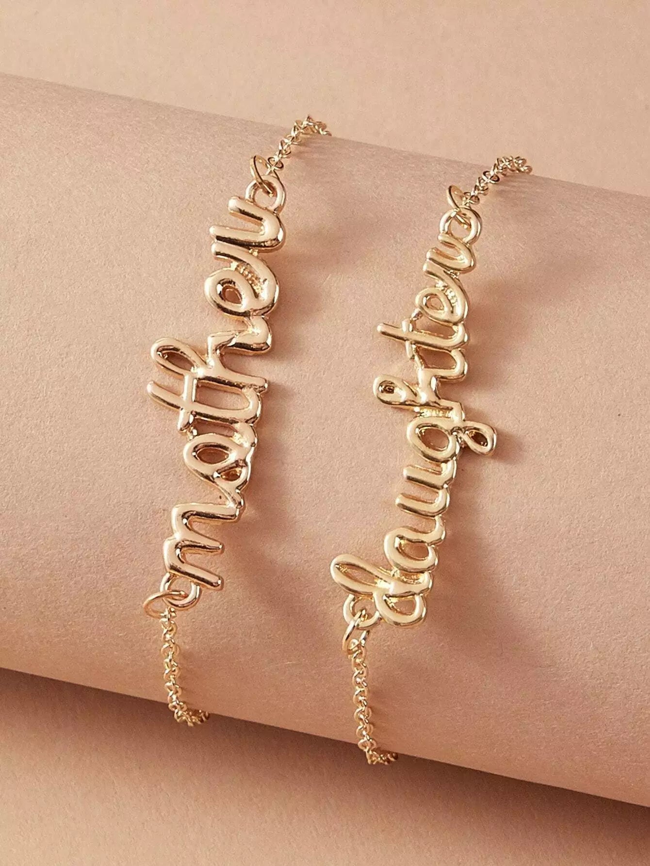 2pcs Hollow Out Letter Decor Chain Bracelet