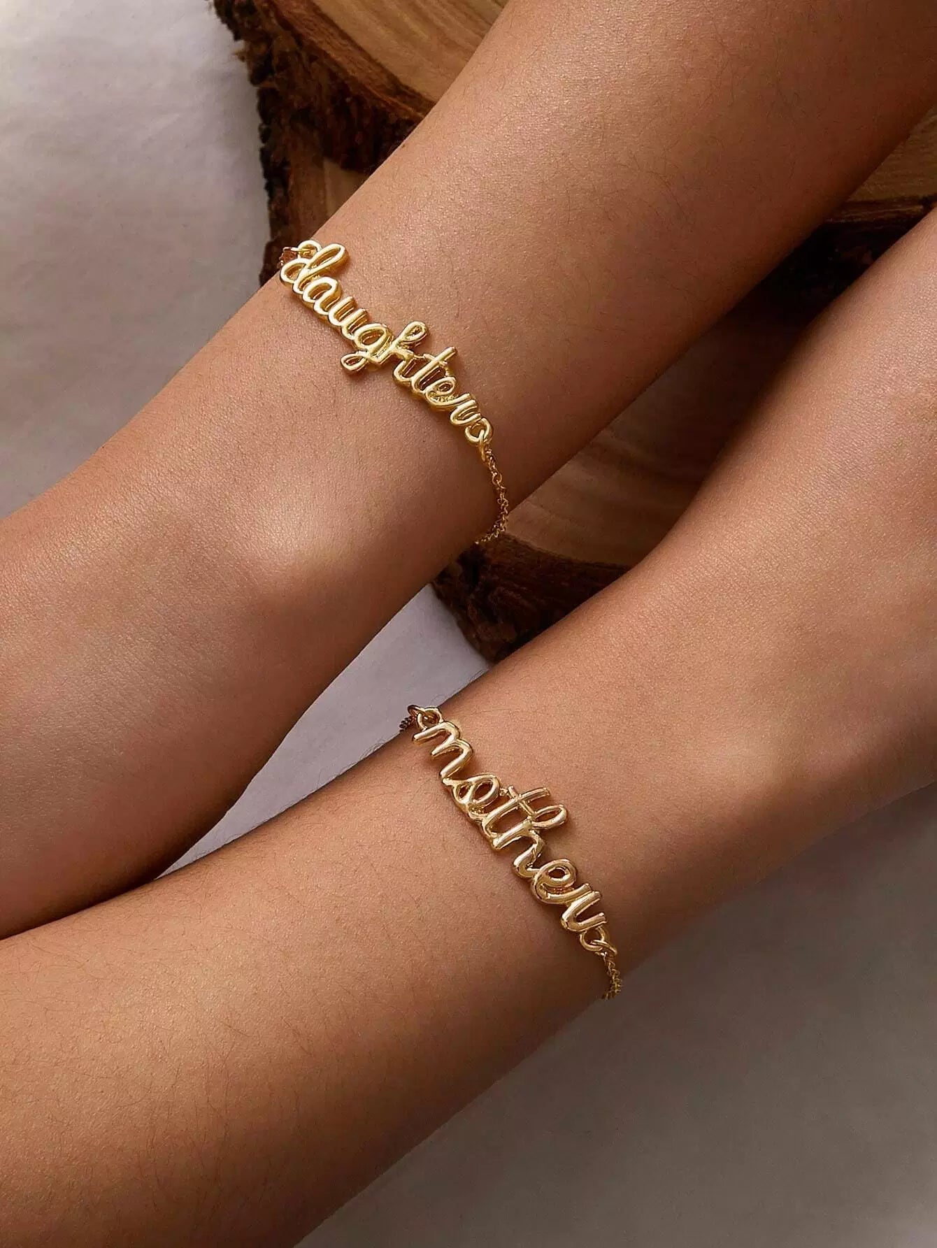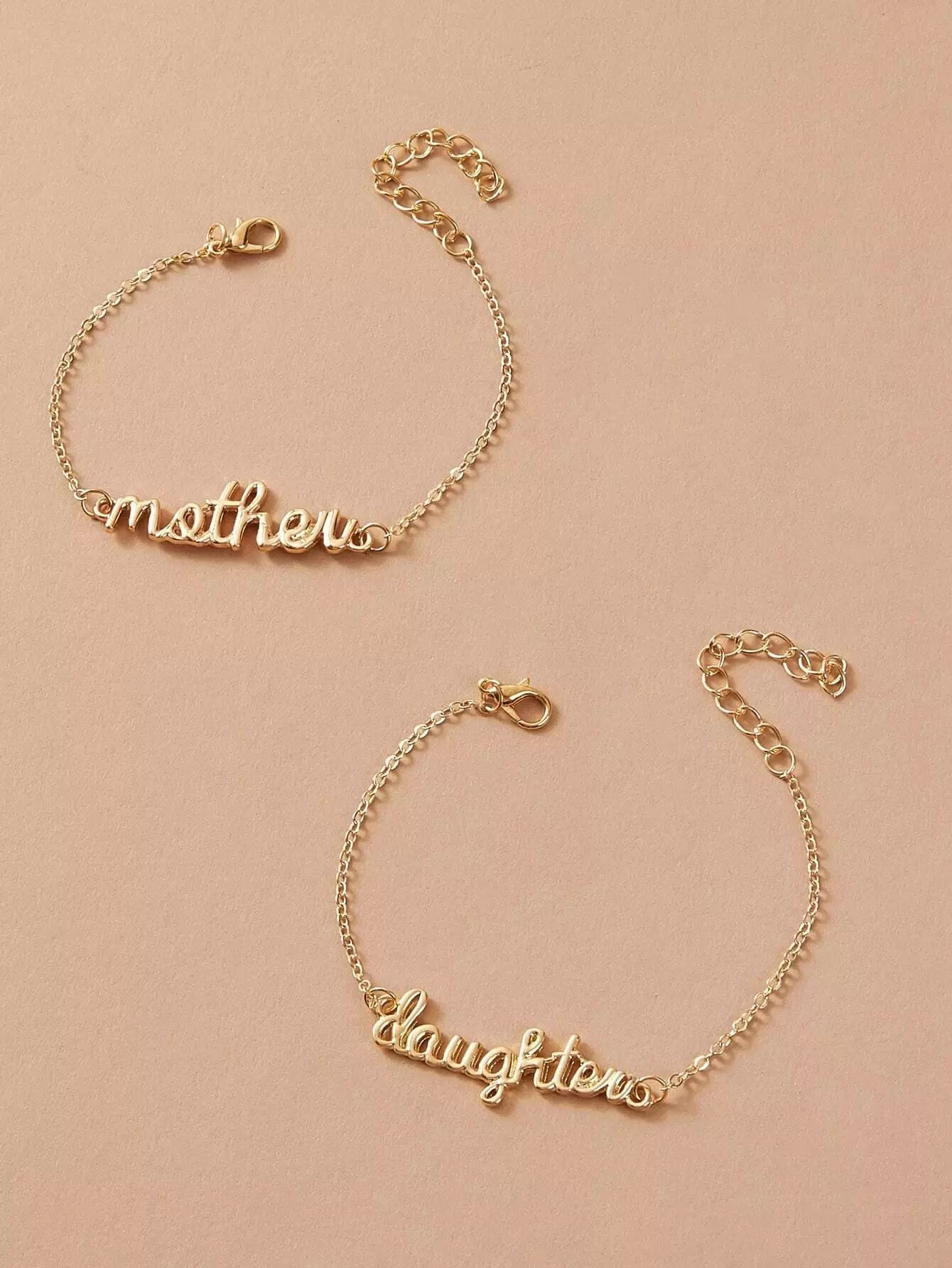 Women - 2pcs Hollow Out Letter Decor Chain Bracelet
