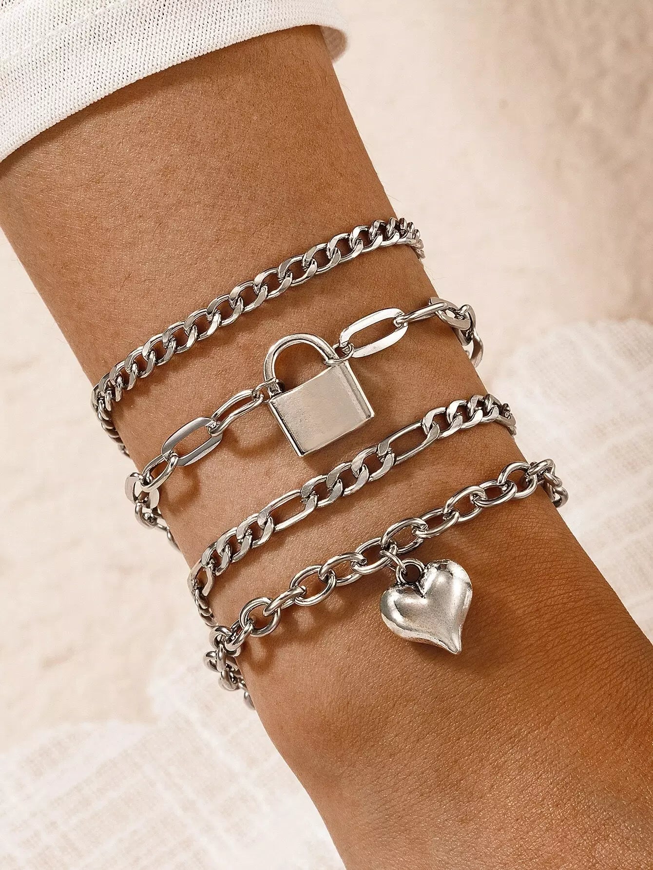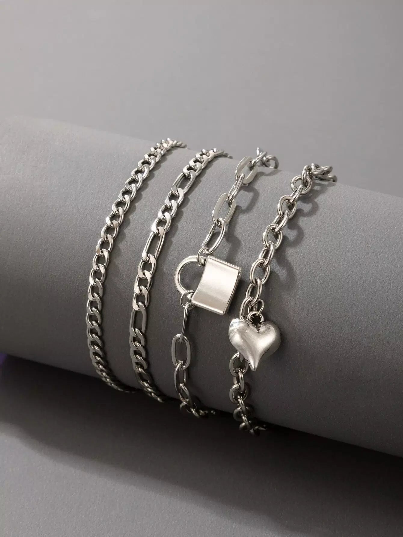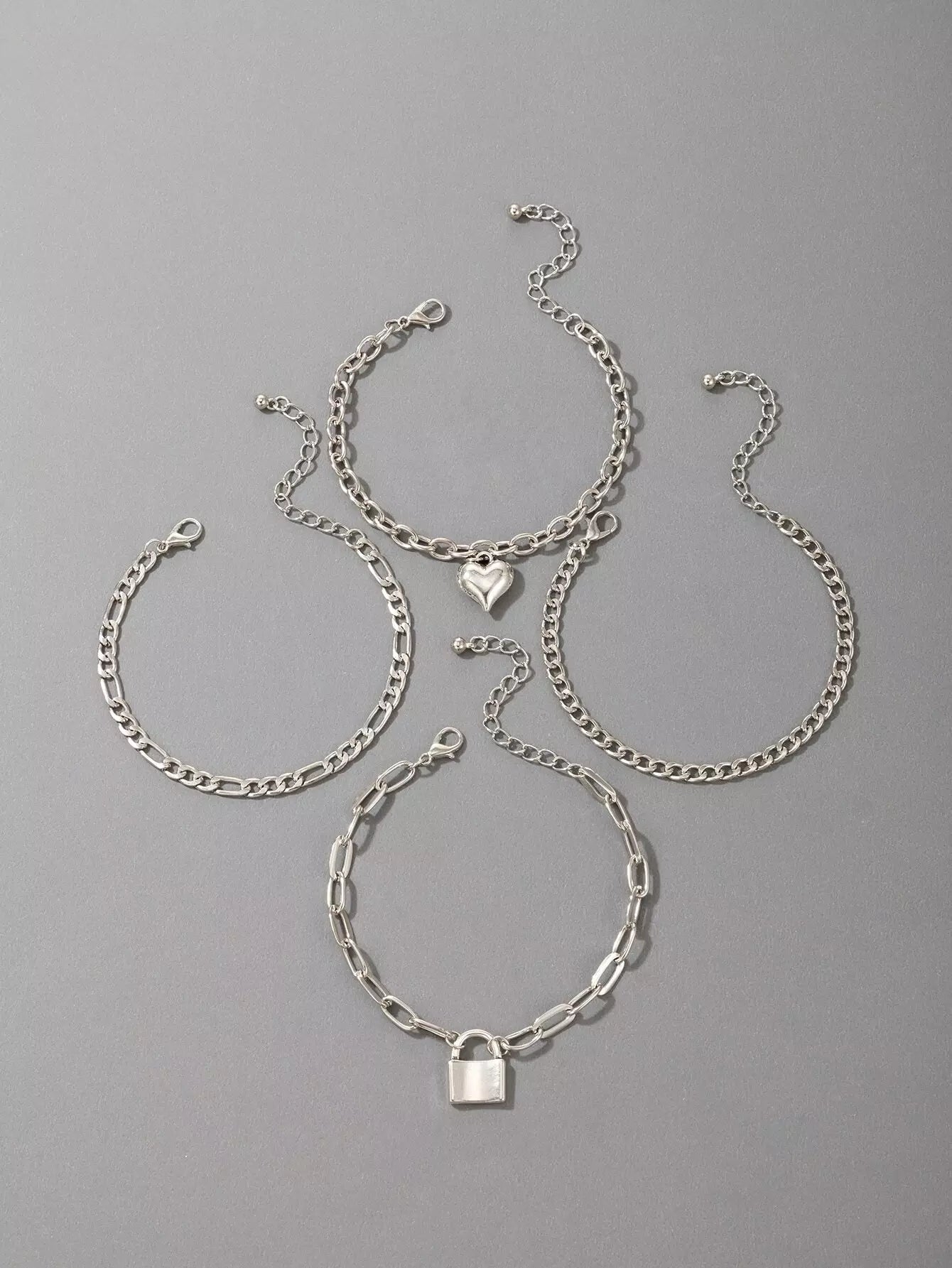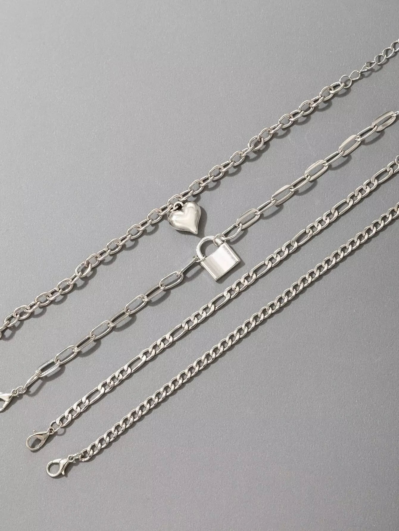 4pcs Heart & Lock Decor Link Bracelet