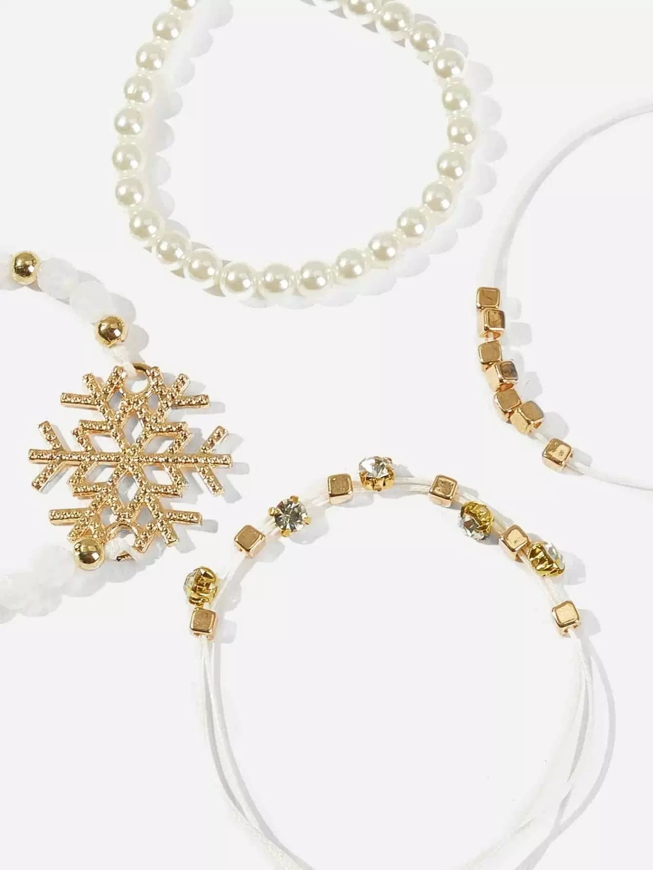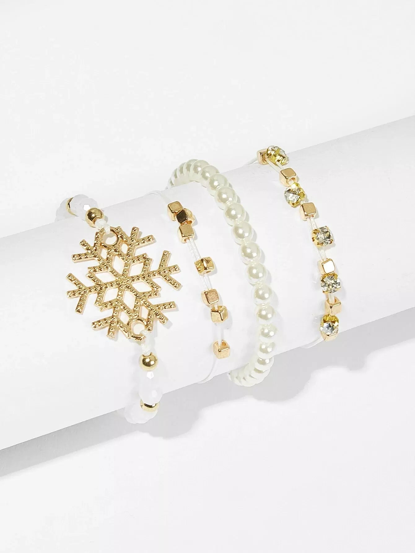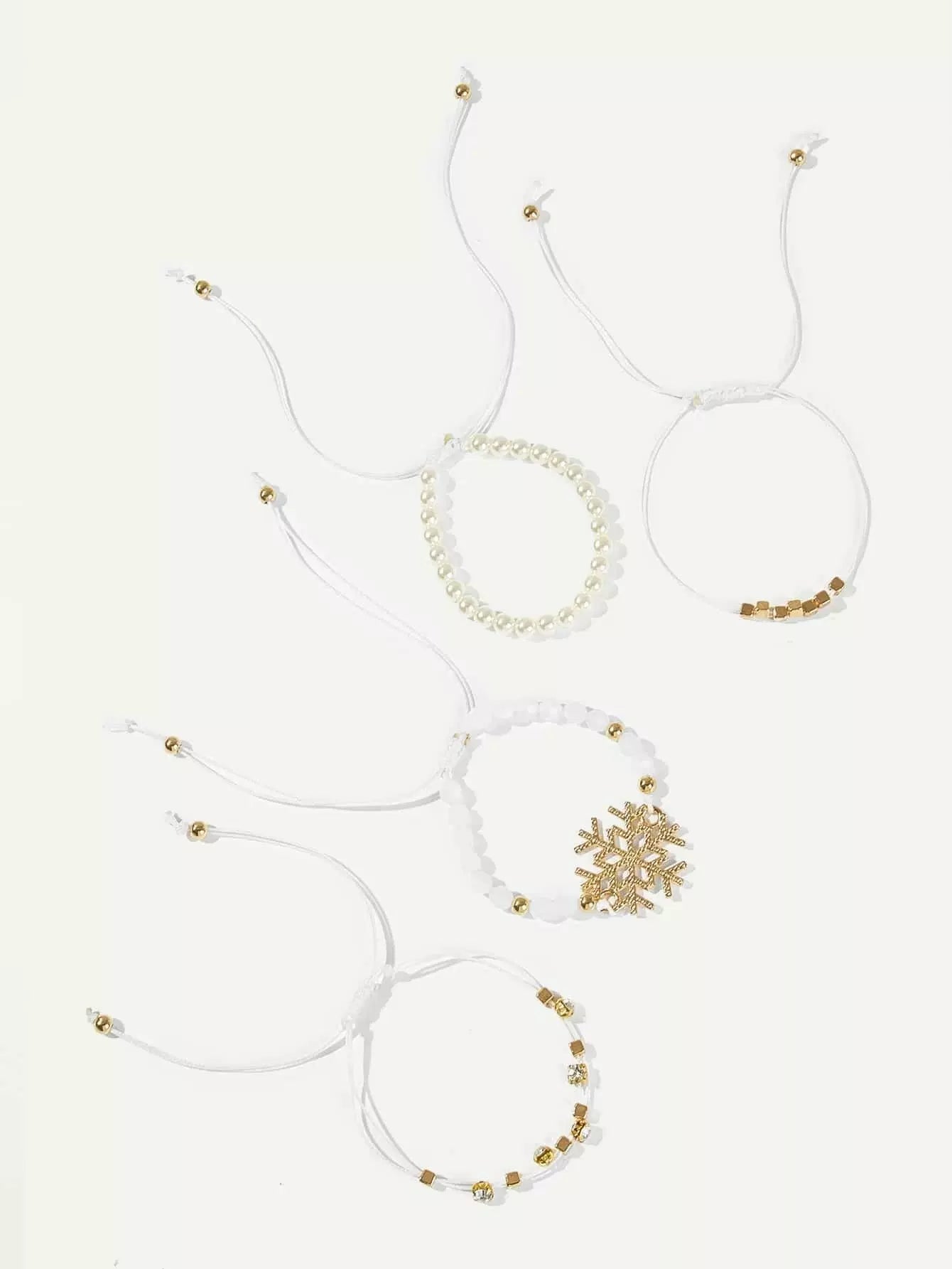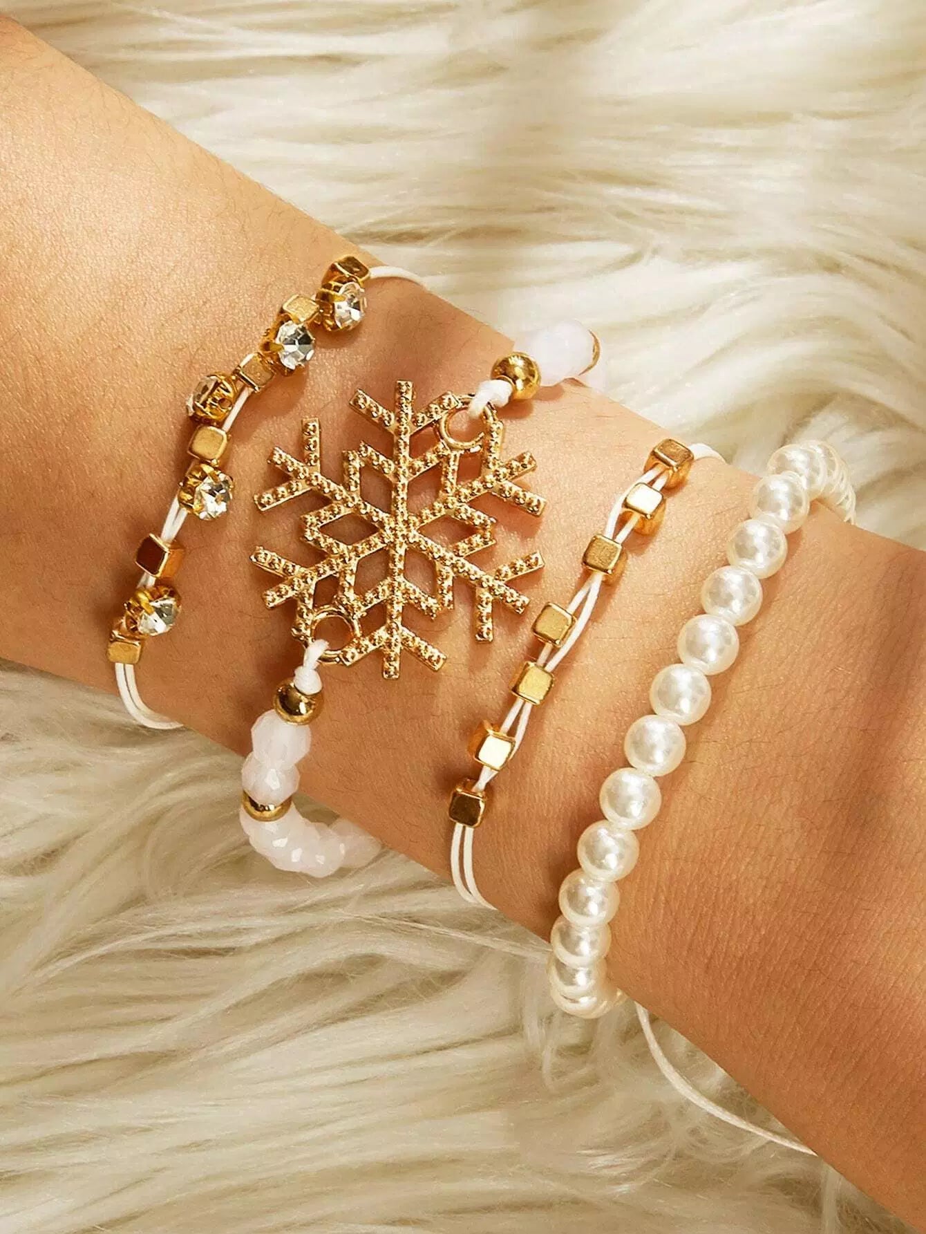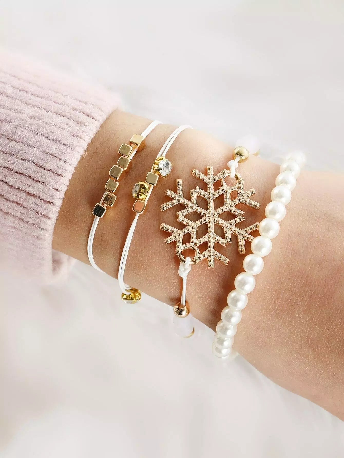 Snowflake & Faux Pearl Beaded Bracelet 4pcs