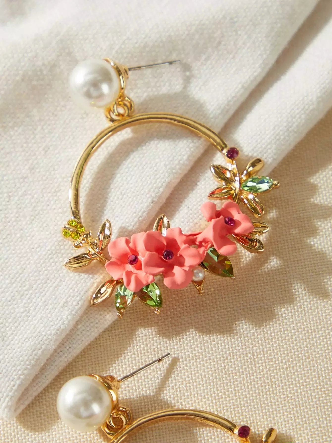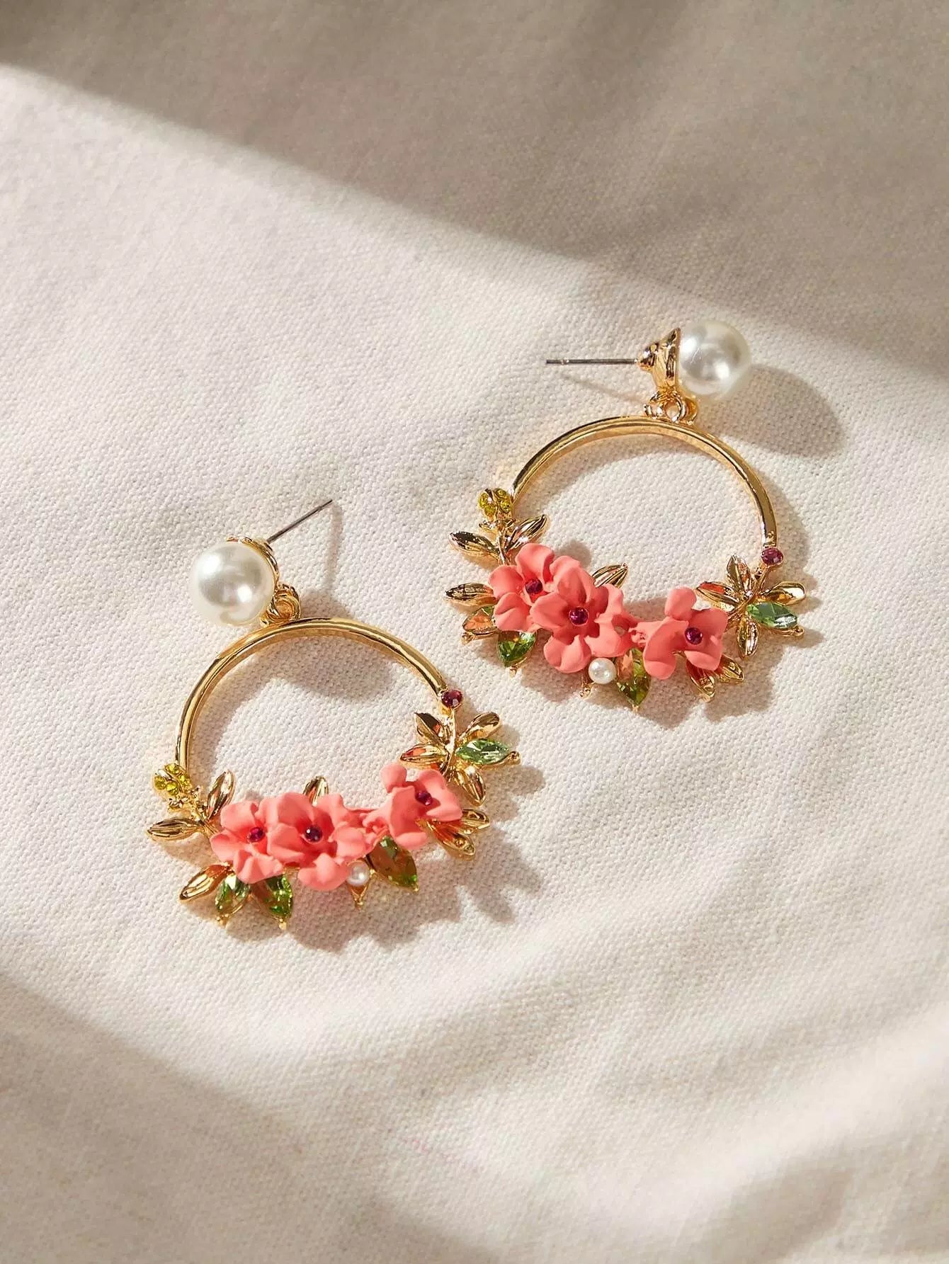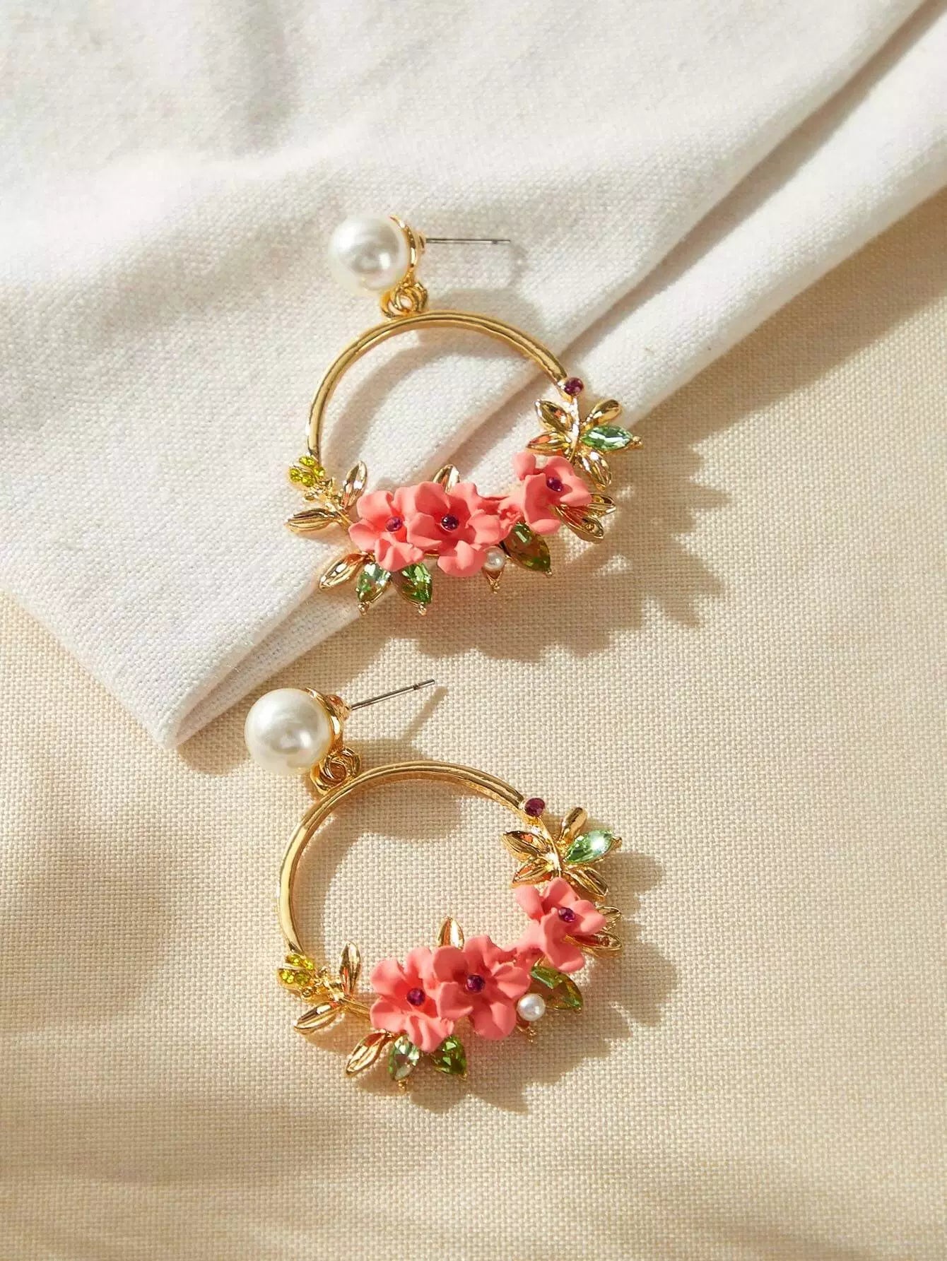 1pair Faux Pearl & Floral Decor Drop Earrings