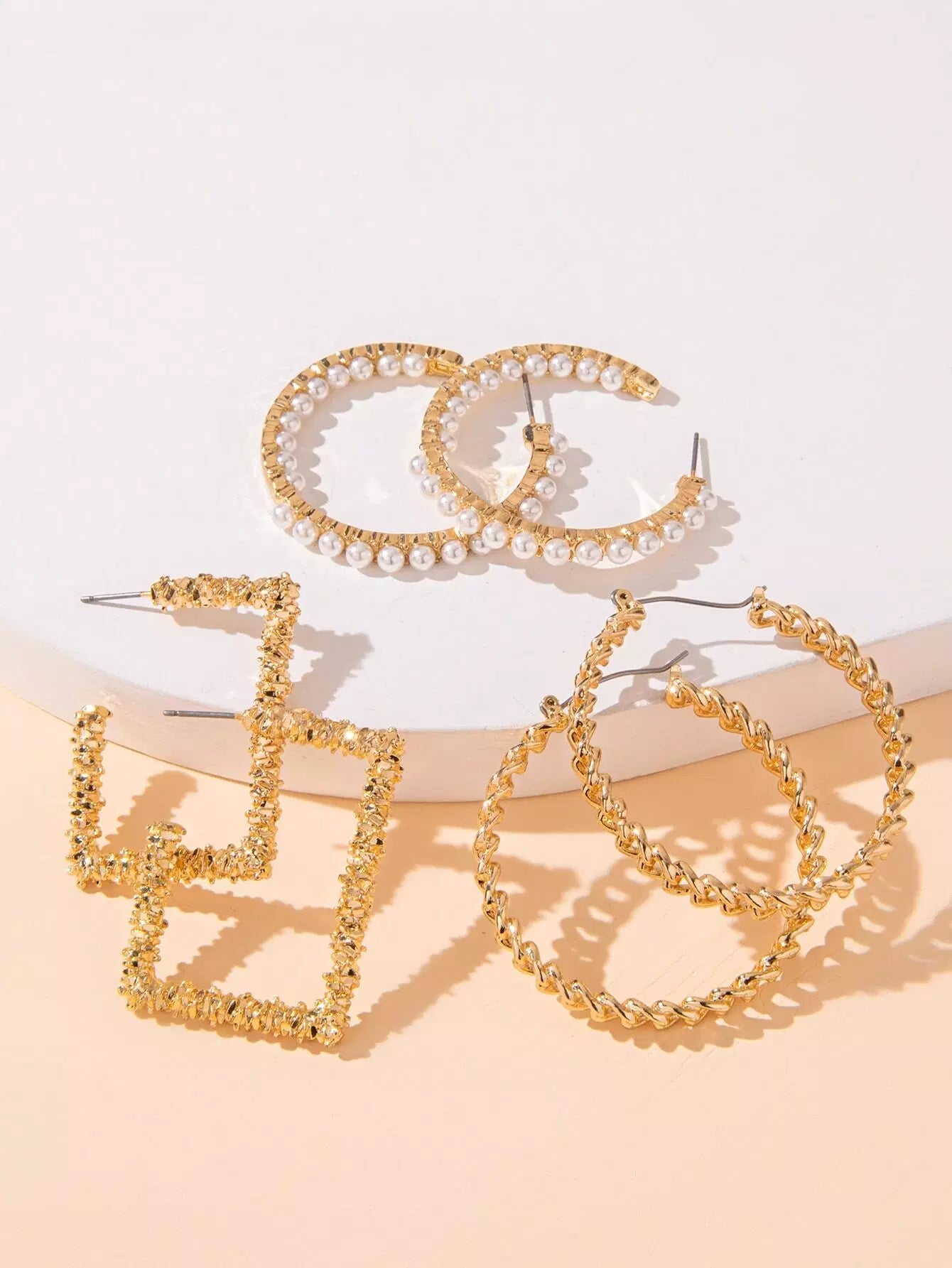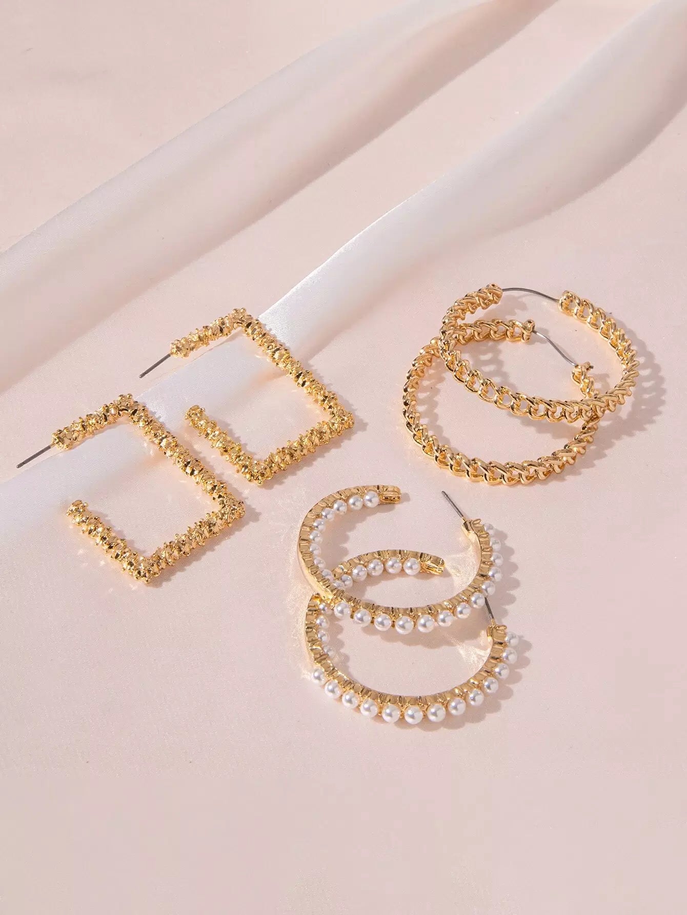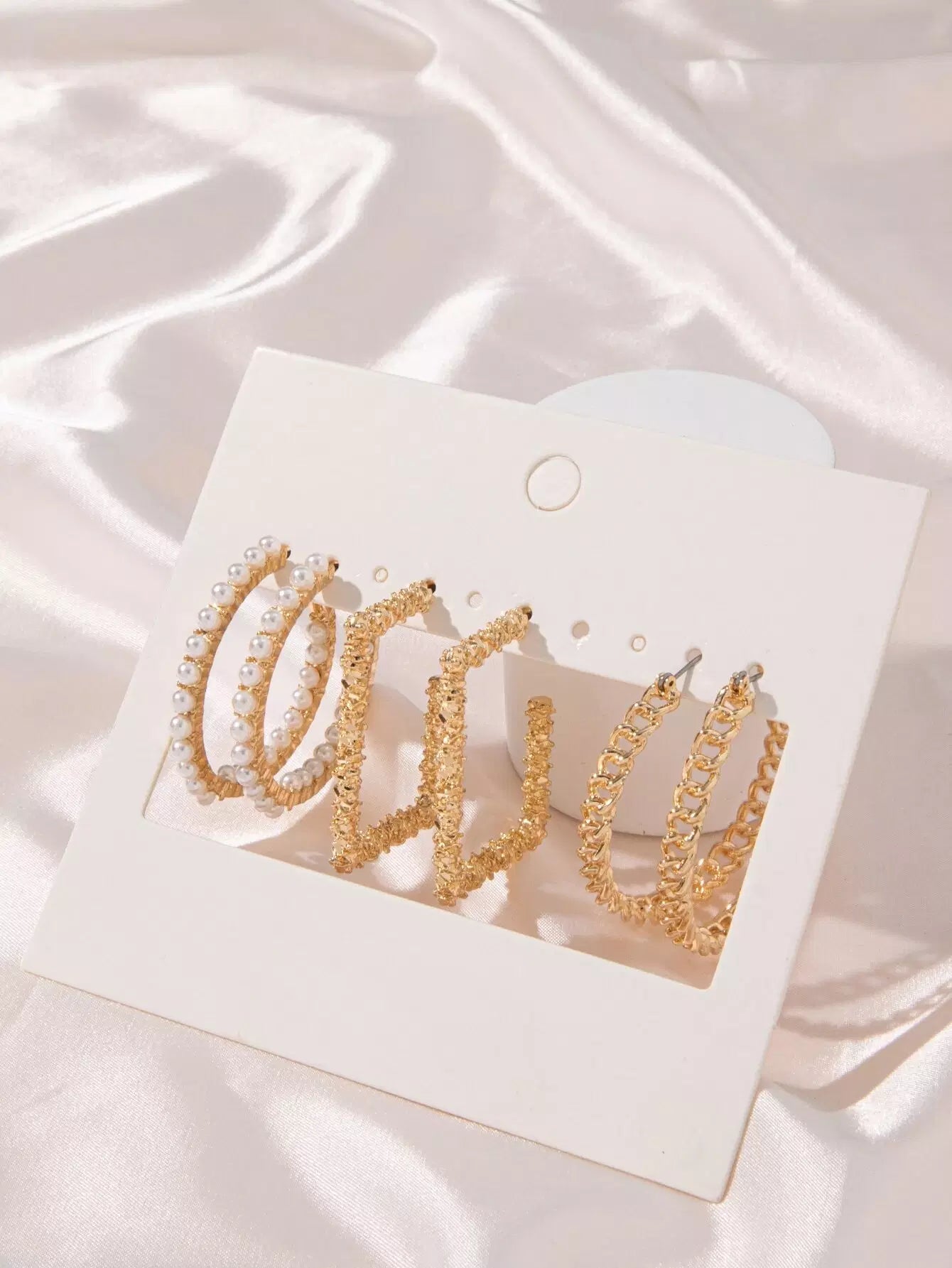 Women - 3pairs Faux Pearl Decor Hoop Earrings