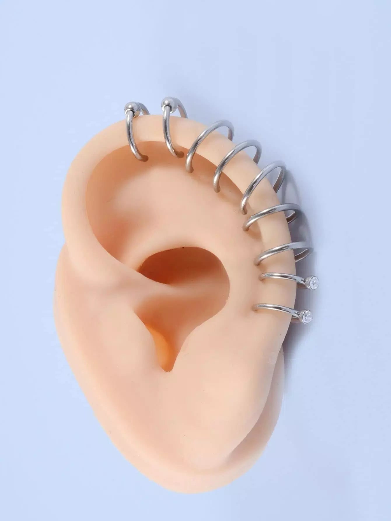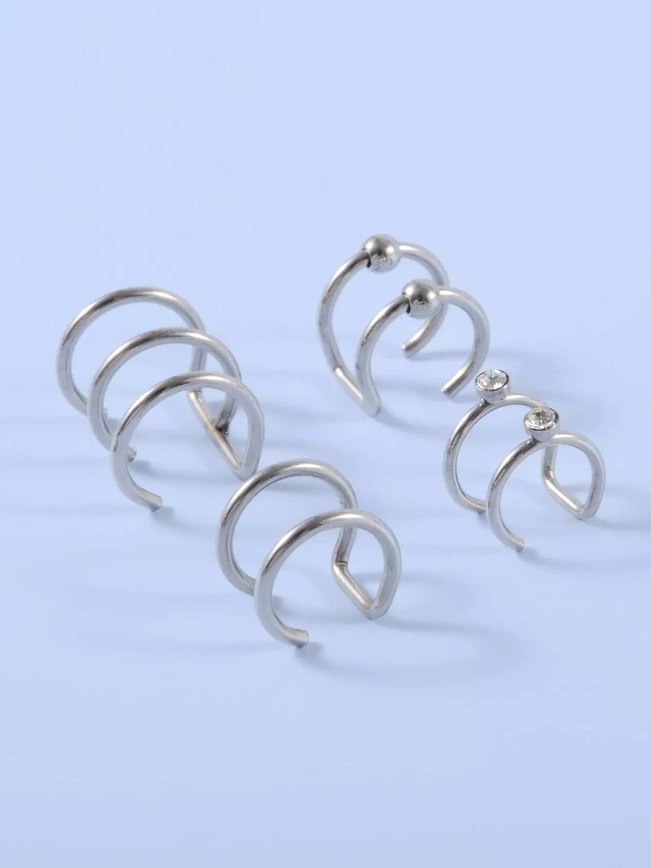 Women - 4pcs Men Rhinestone Decor Ear Cuff