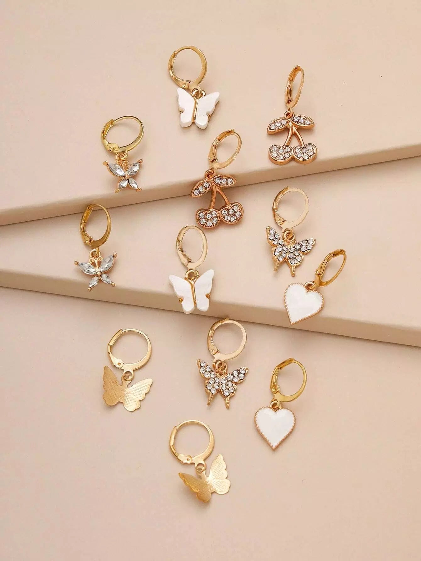 Women - 6pairs Butterfly & Heart Drop Earrings