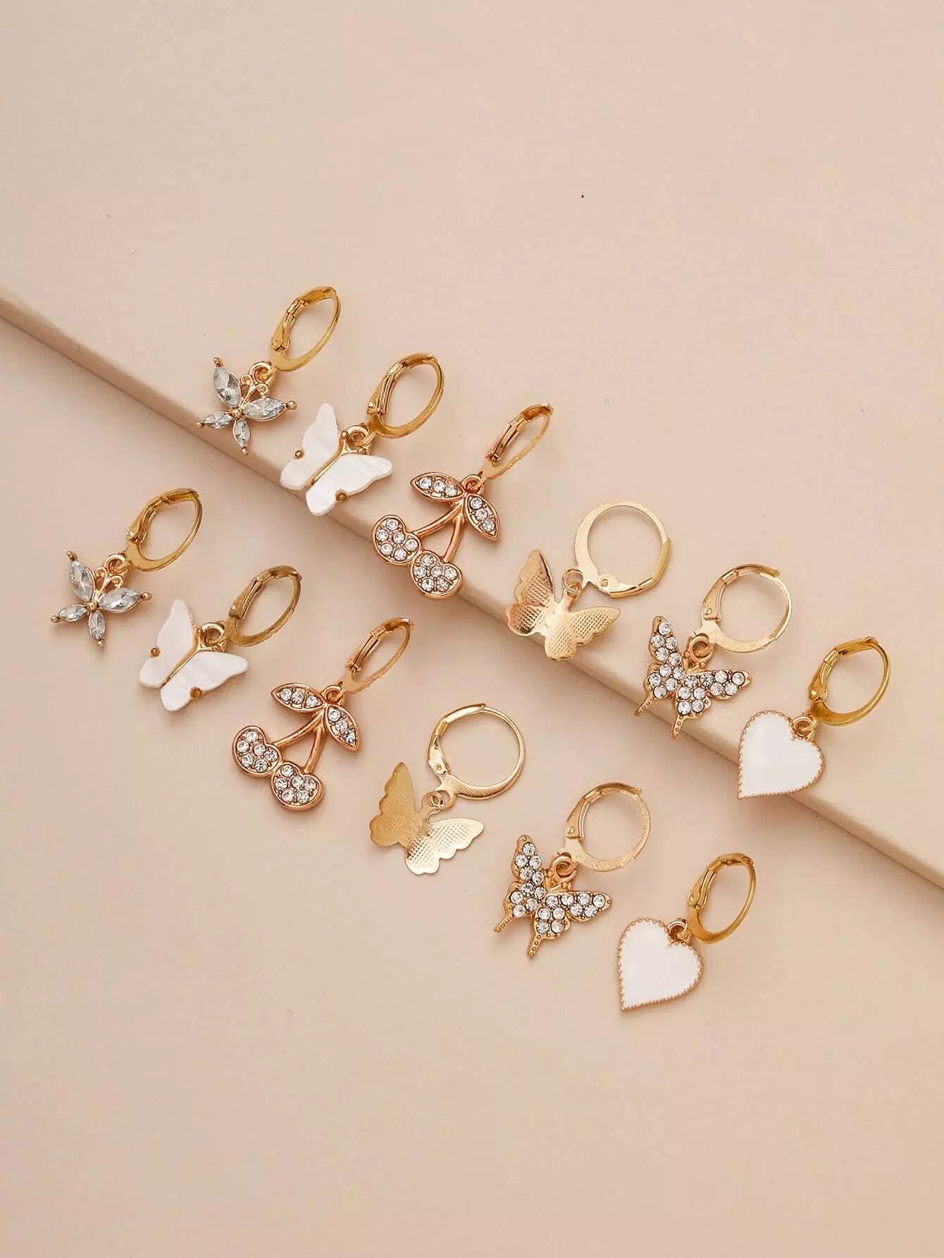 6pairs Butterfly & Heart Drop Earrings