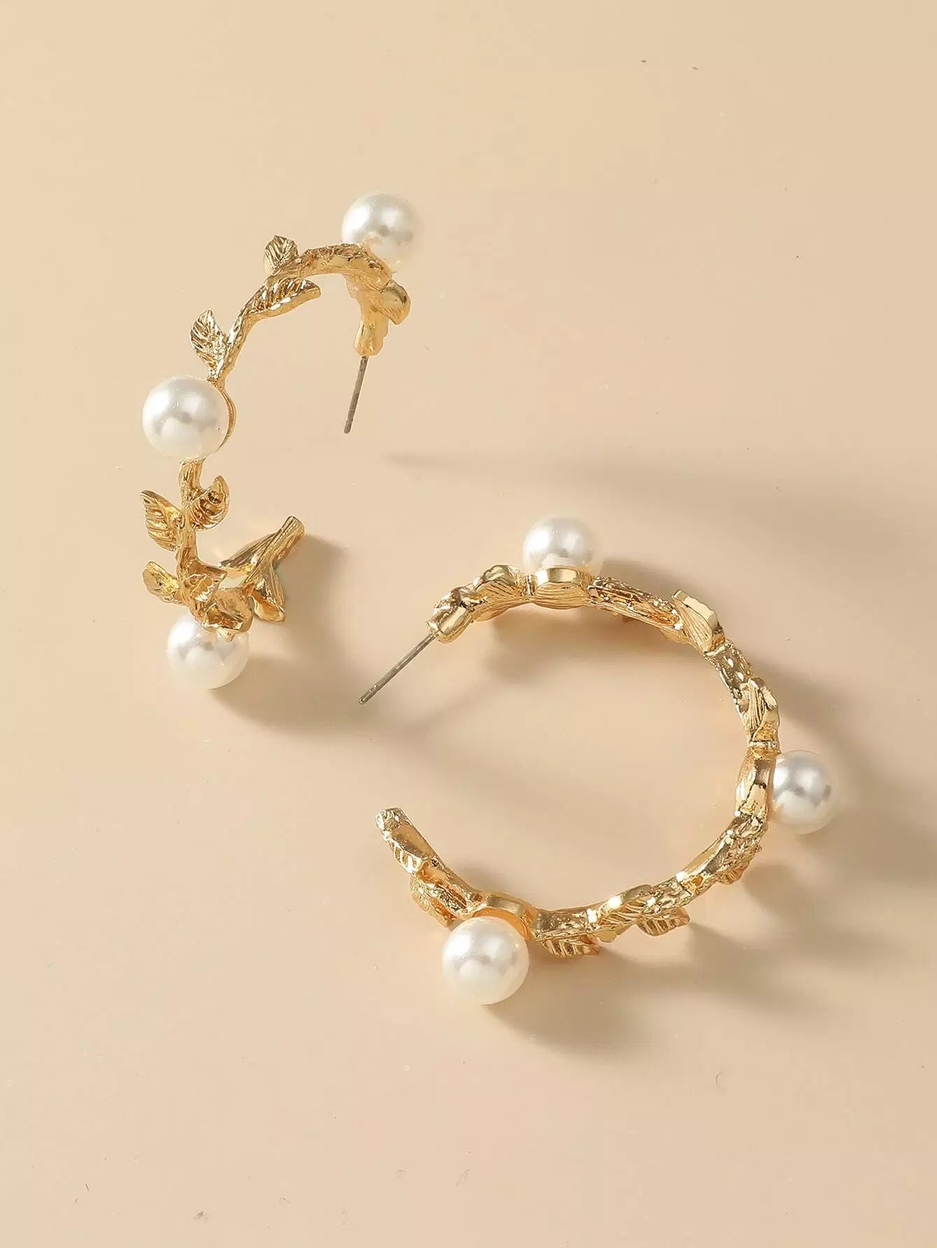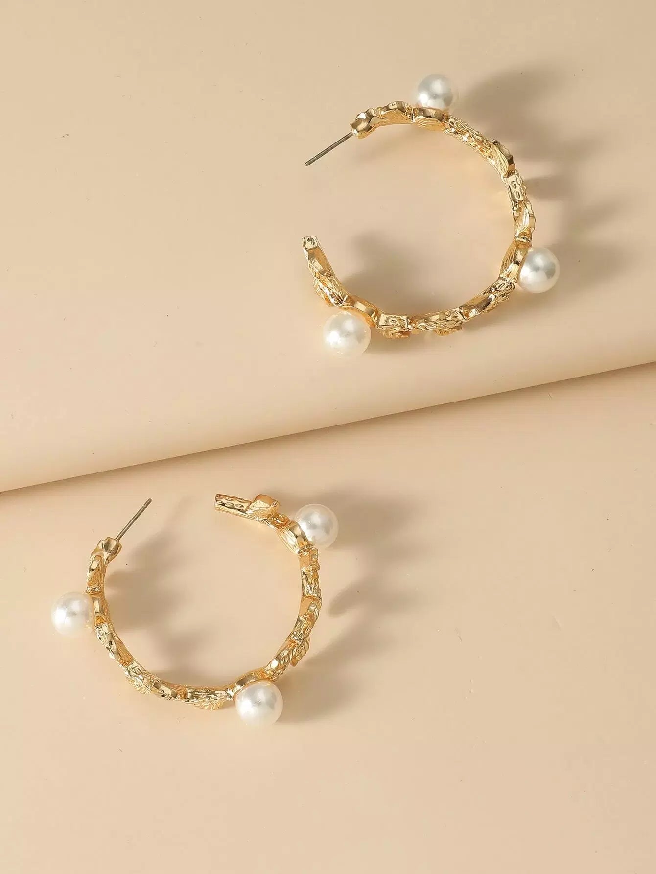 Women - Faux Pearl Decor Cuff Hoop Earrings