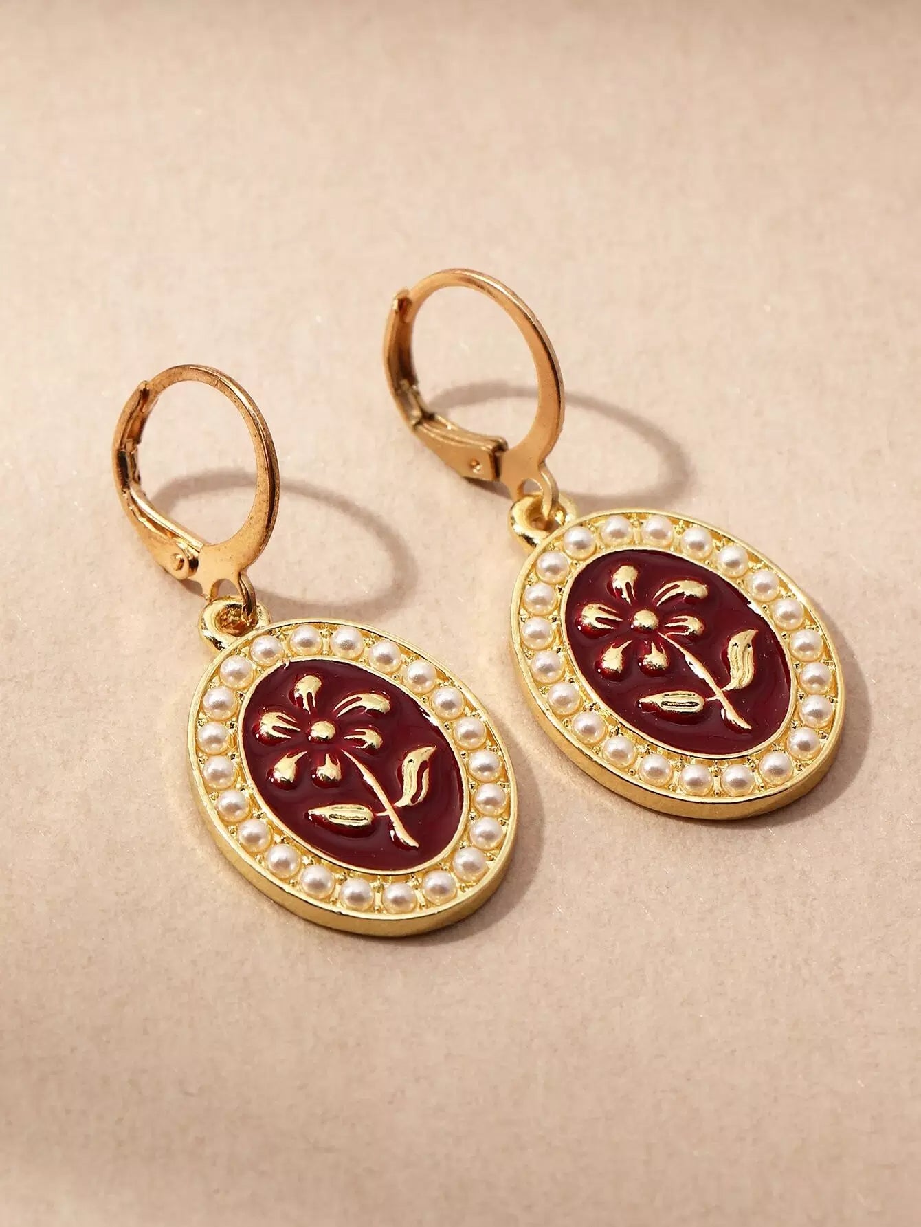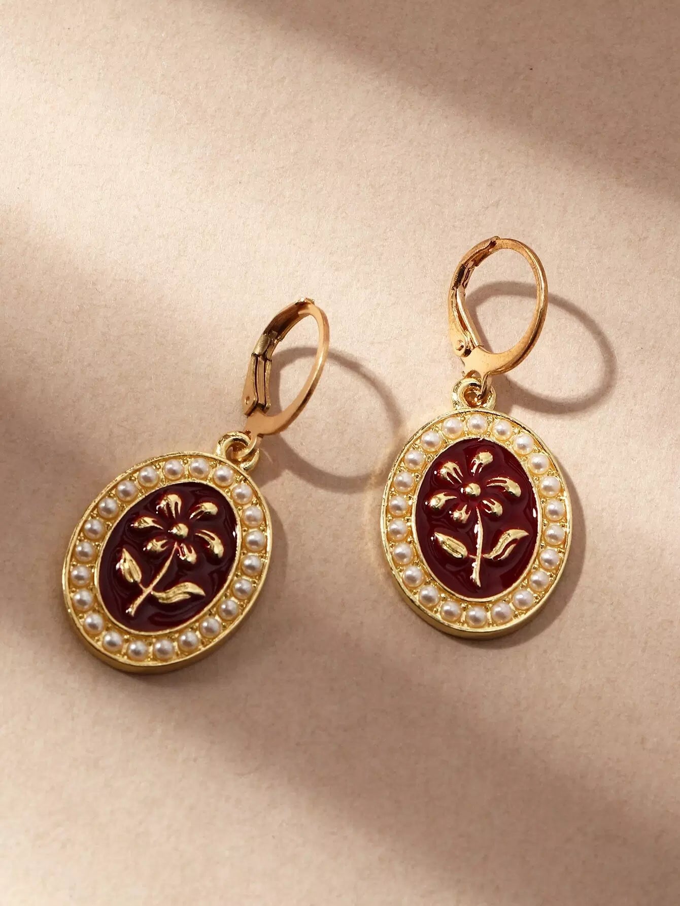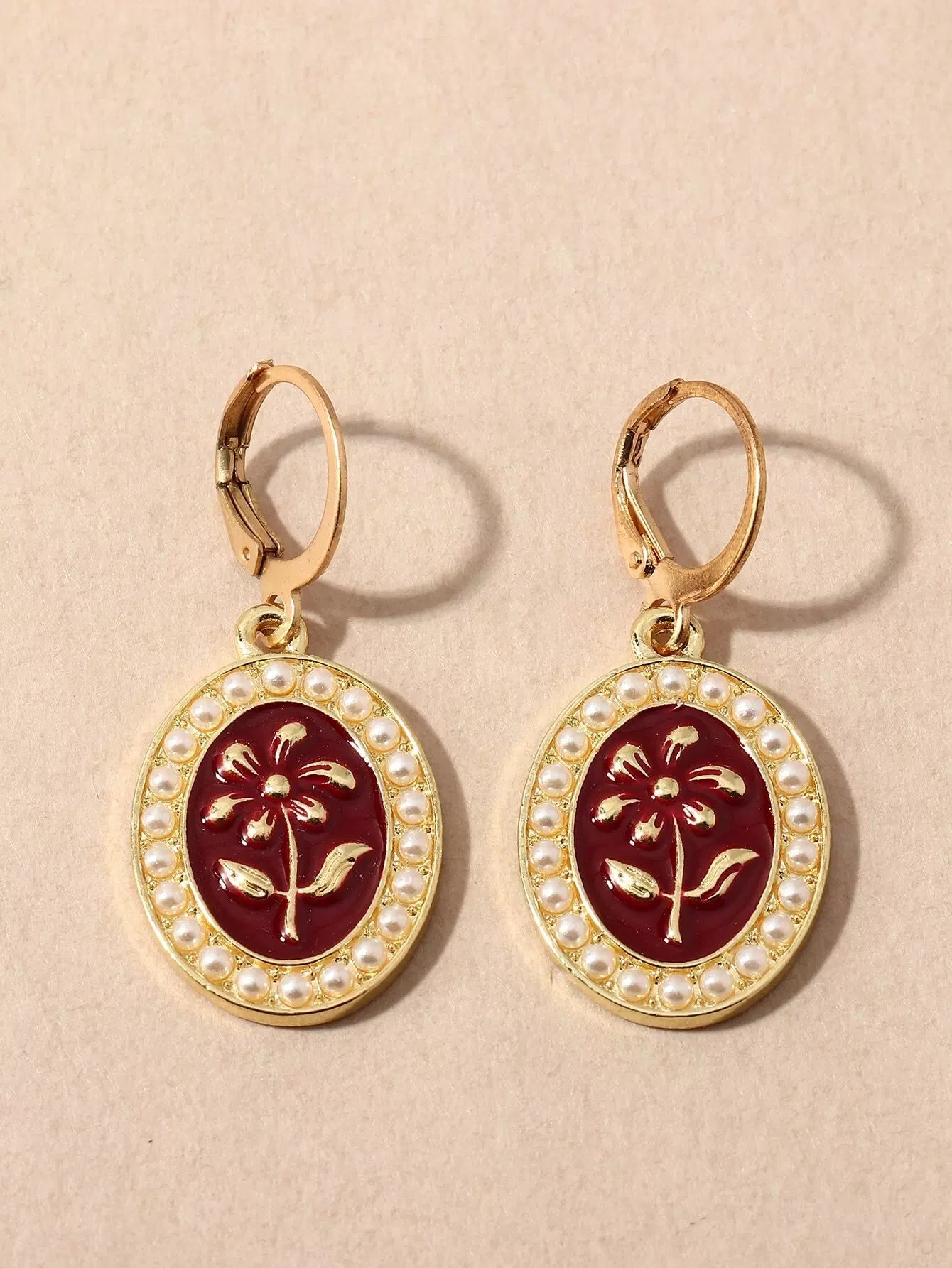 Faux Pearl Decor Oval Drop Earrings