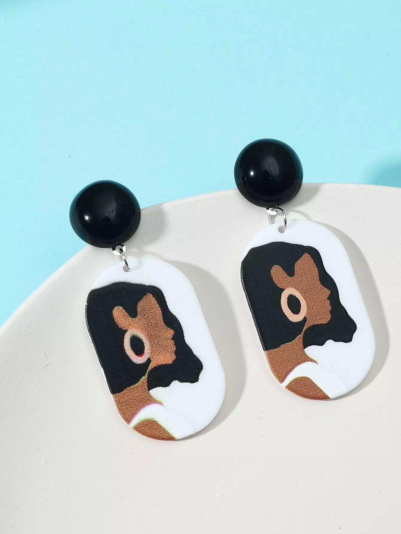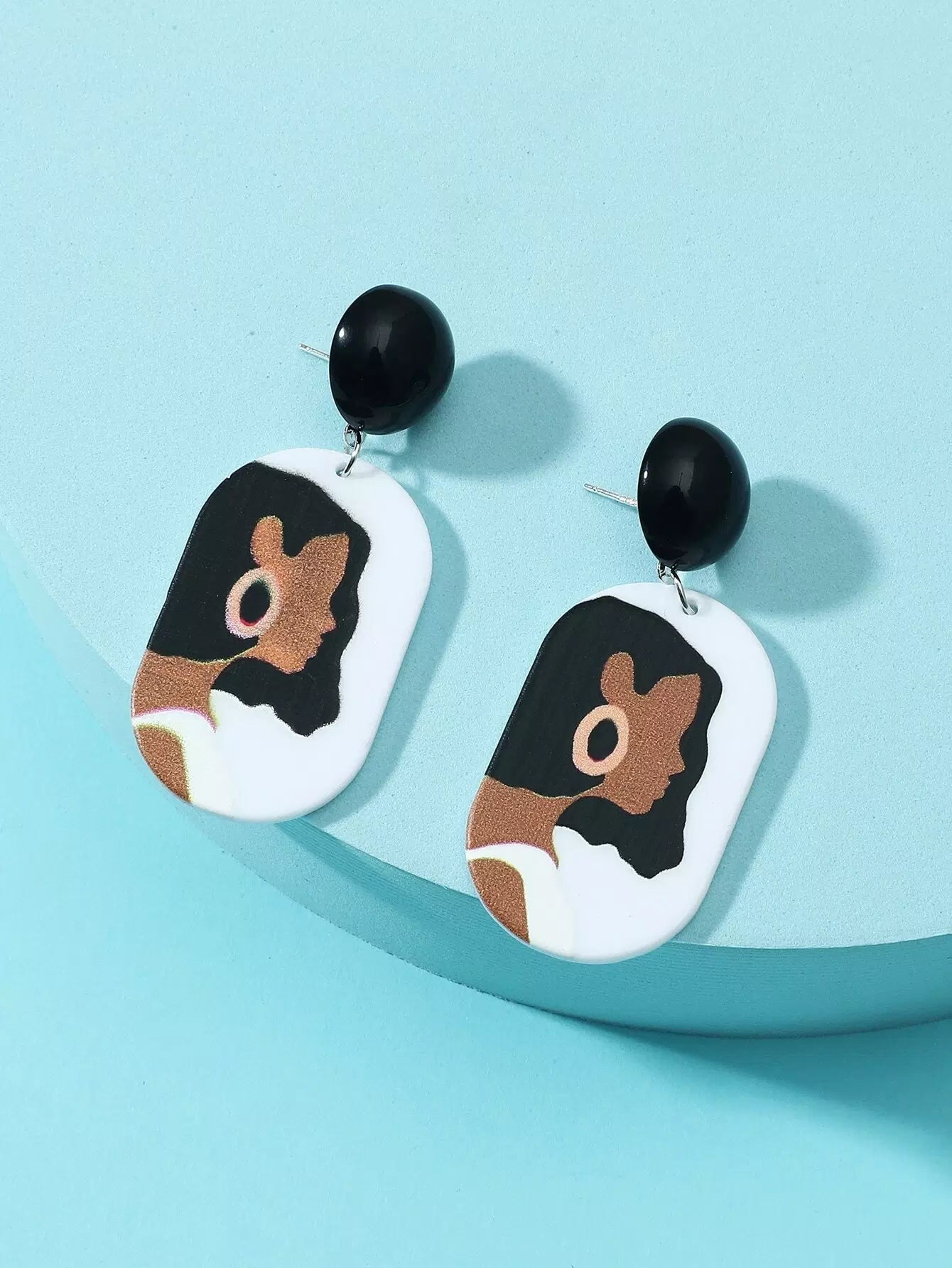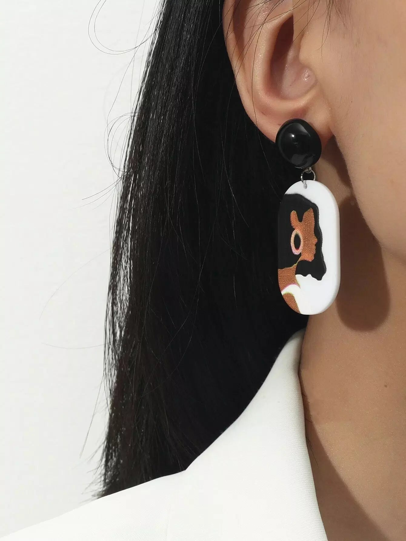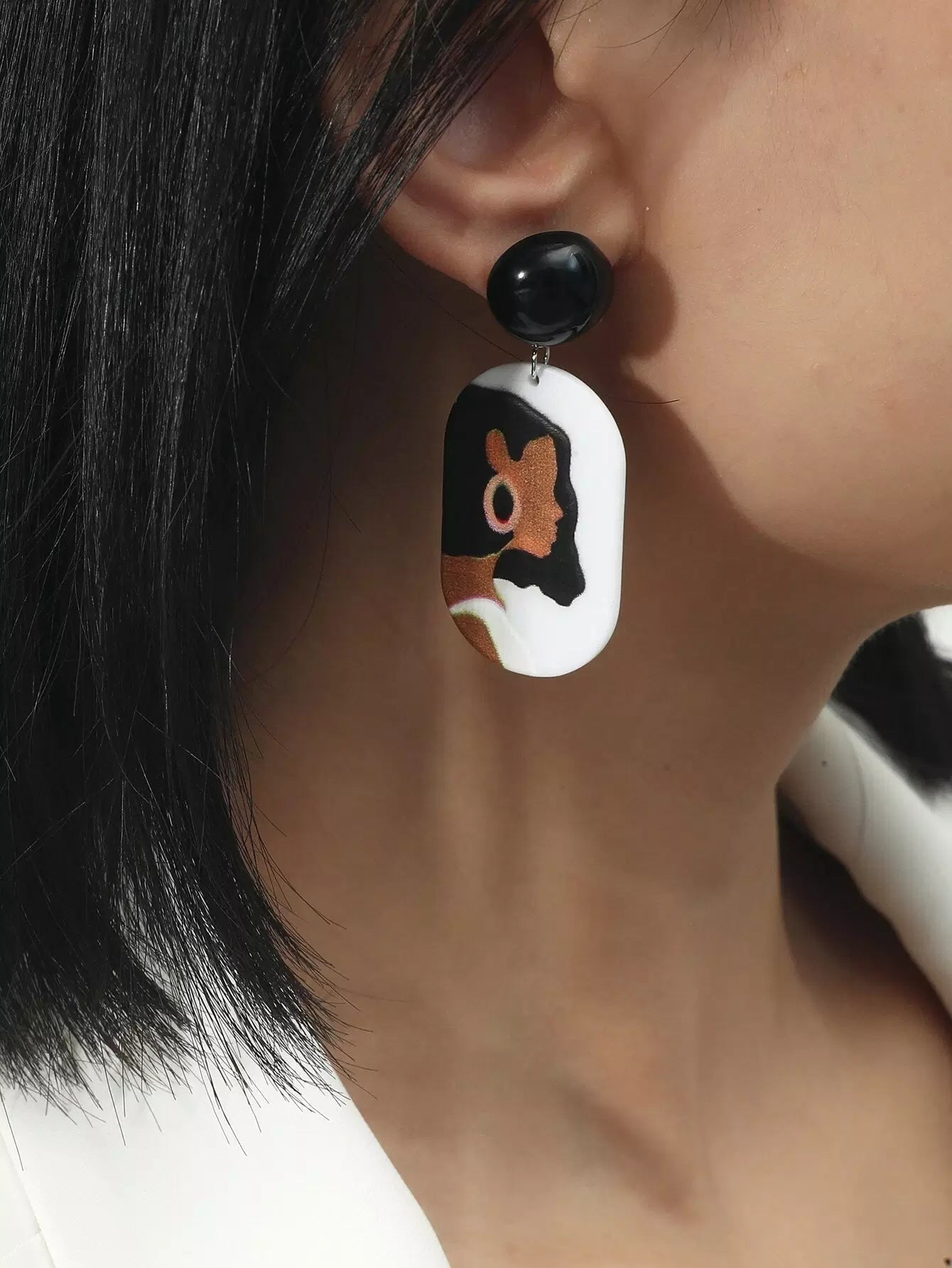 Figure Graphic Oval Drop Earrings
