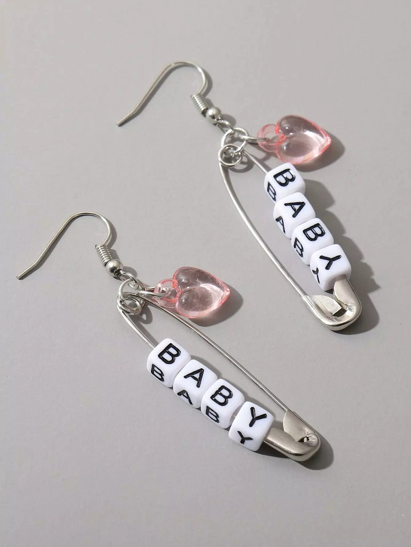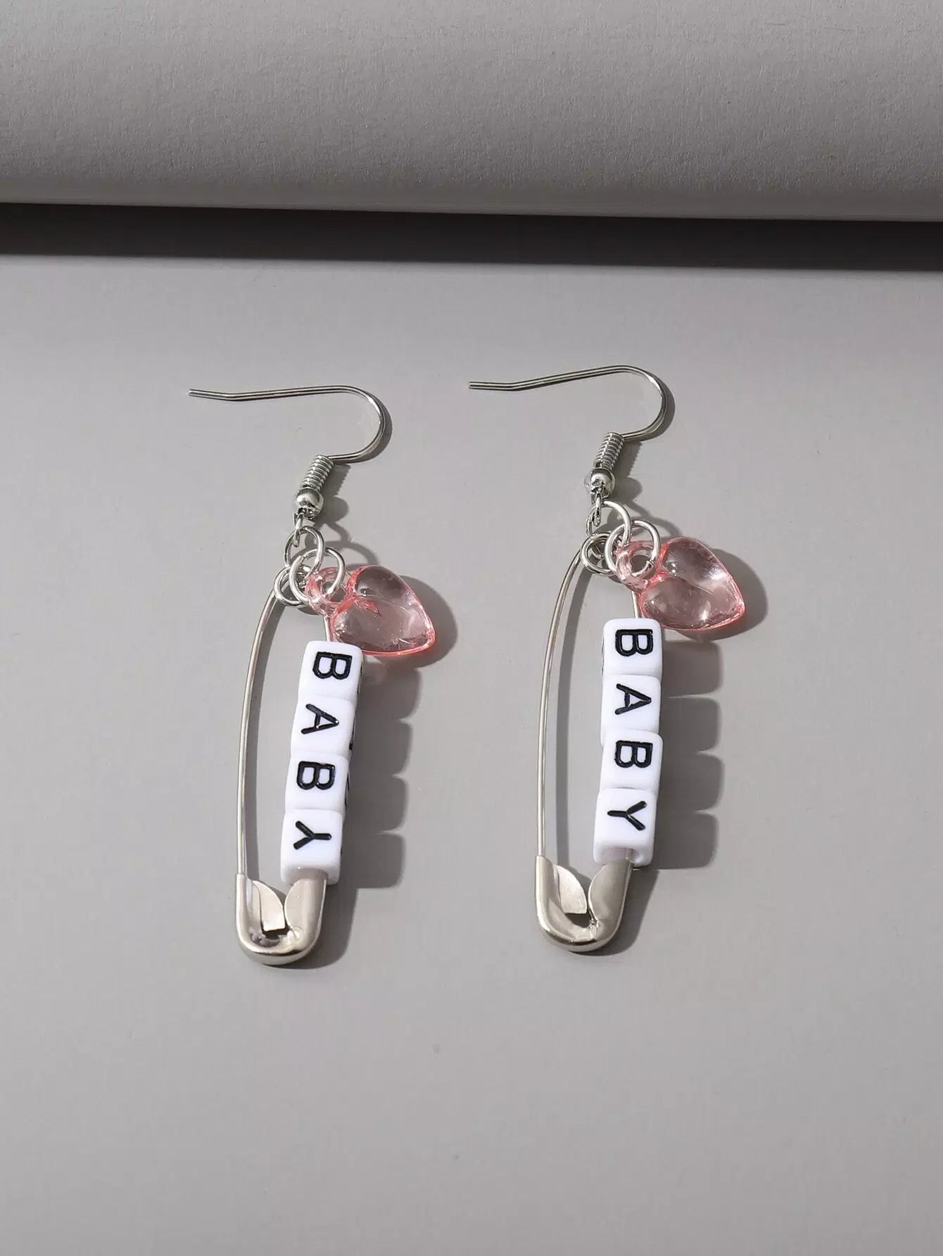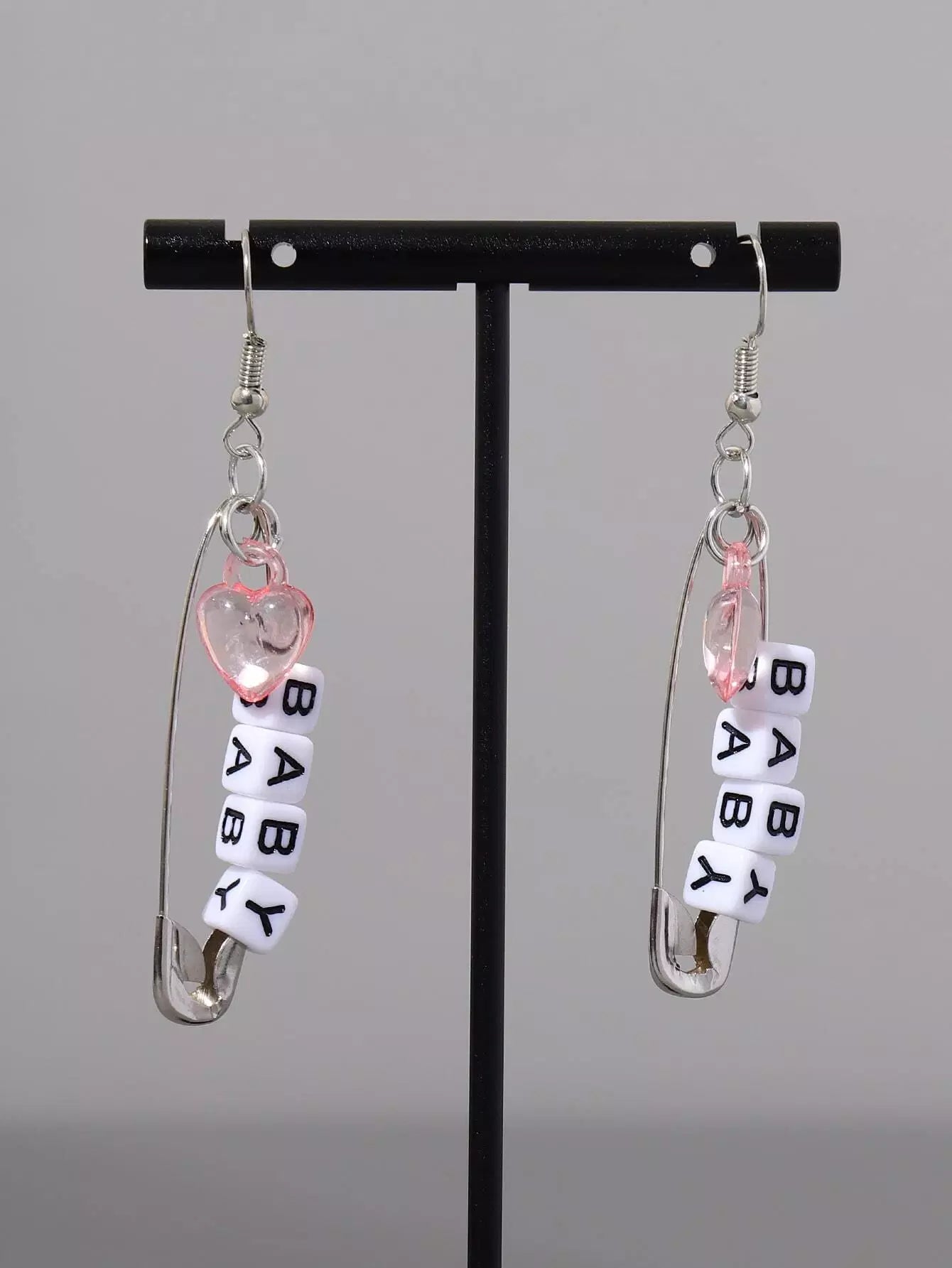 Heart Charm Safety Pin Drop Earrings
