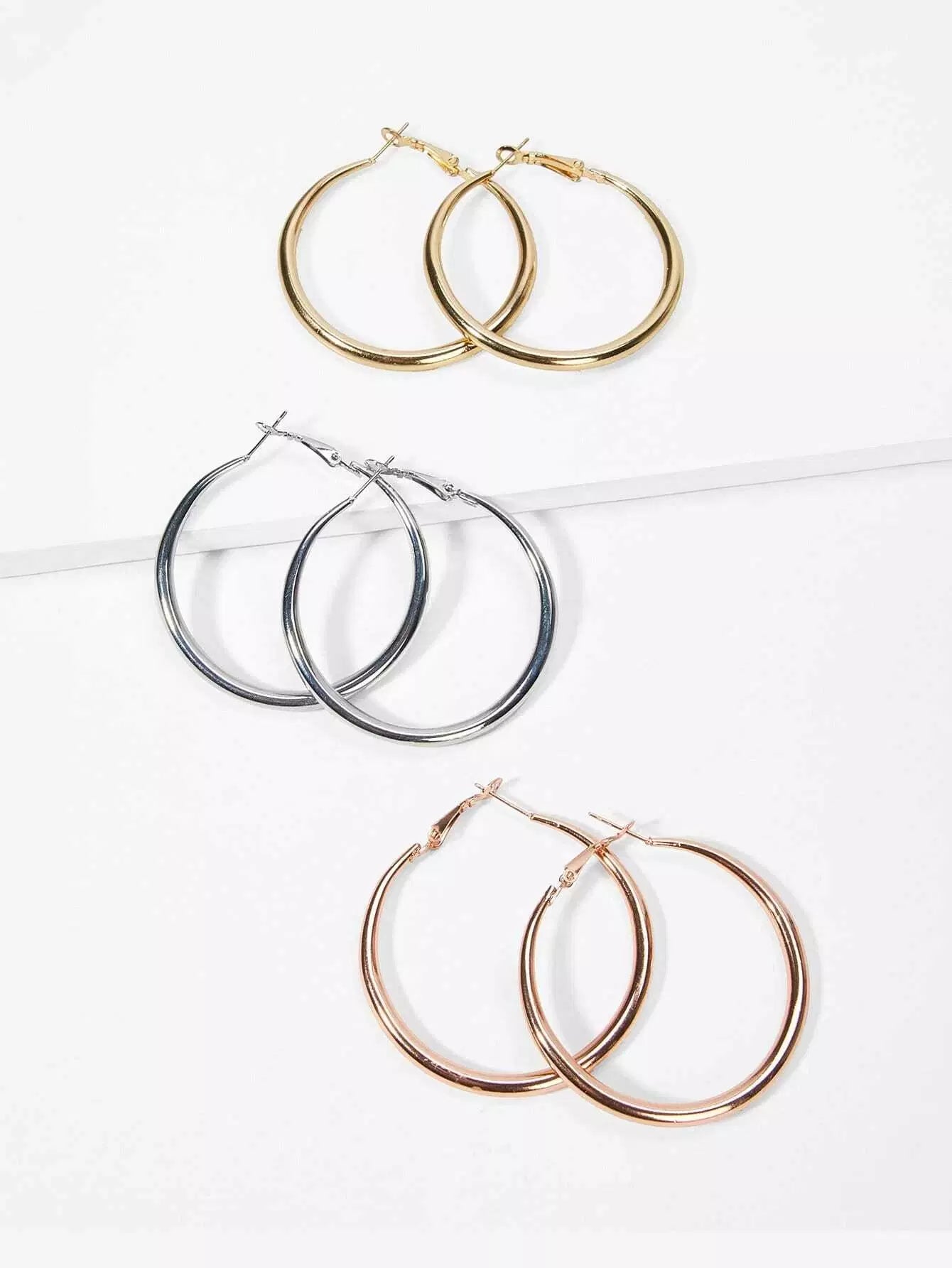Plain Hoop Earrings Set 3pairs