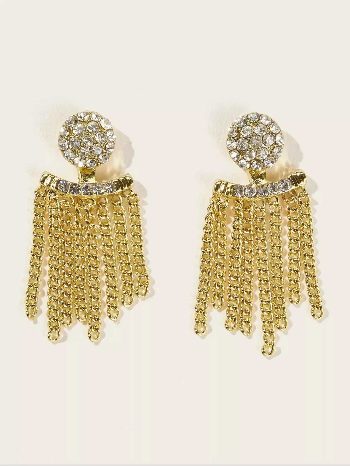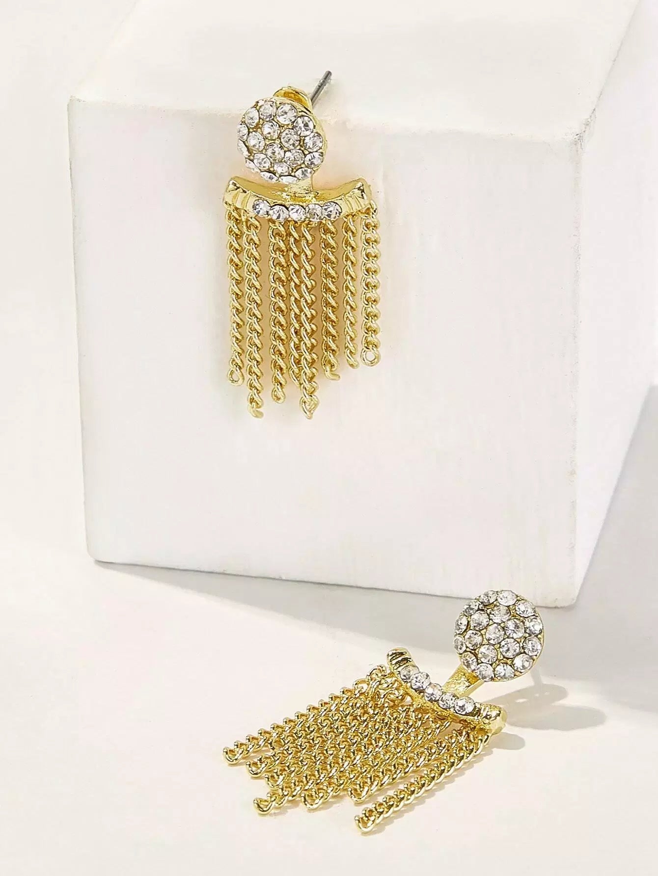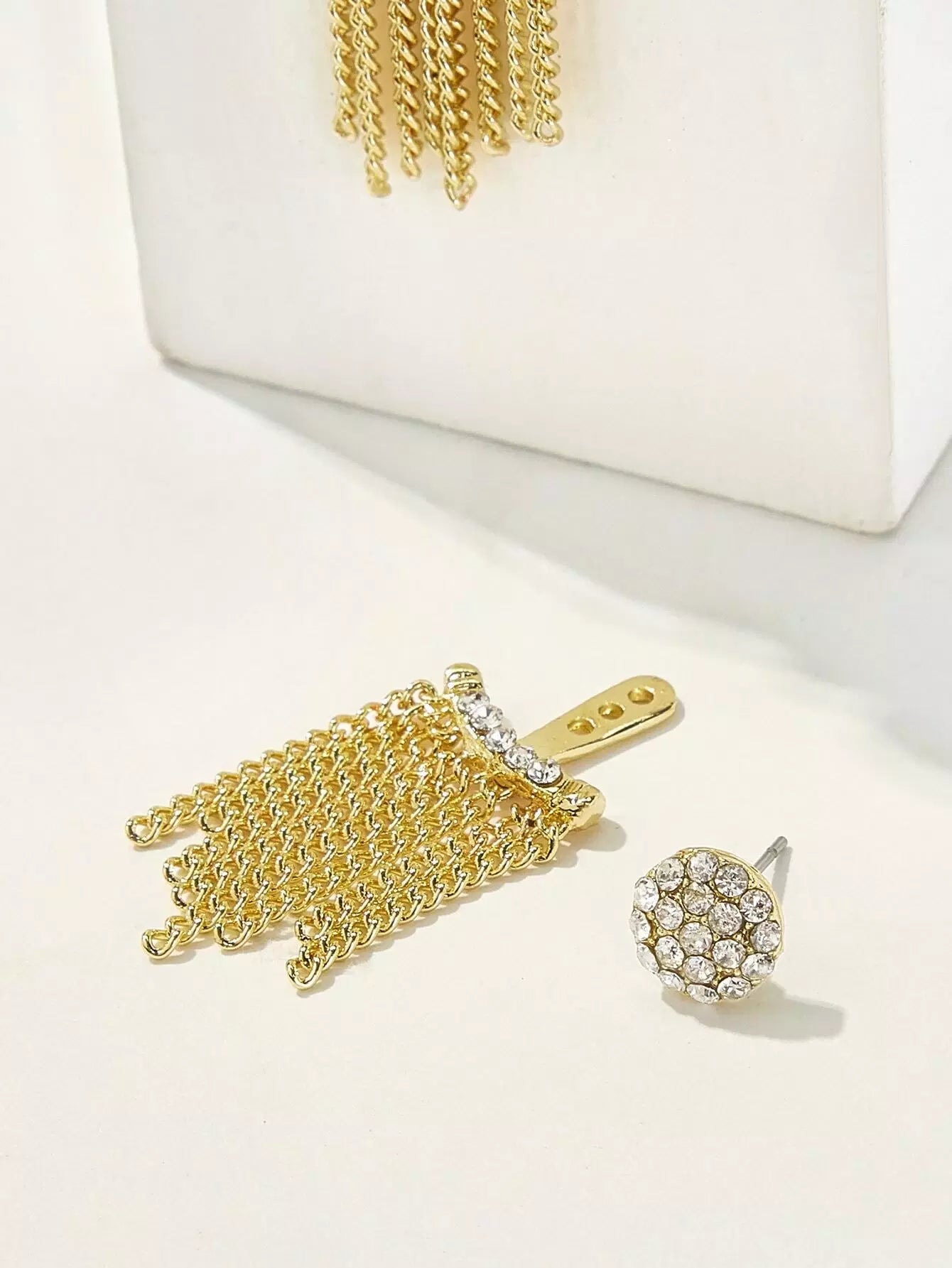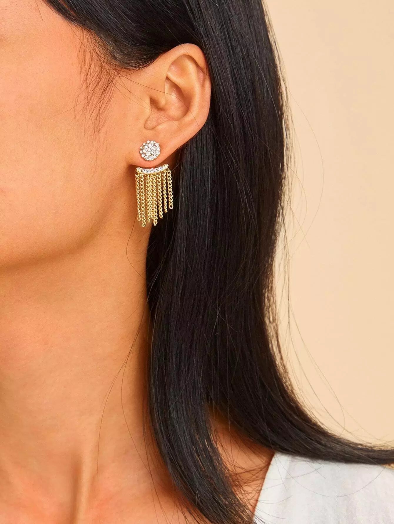 Rhinestone Detail Chain Tassel Stud Earrings 1pair