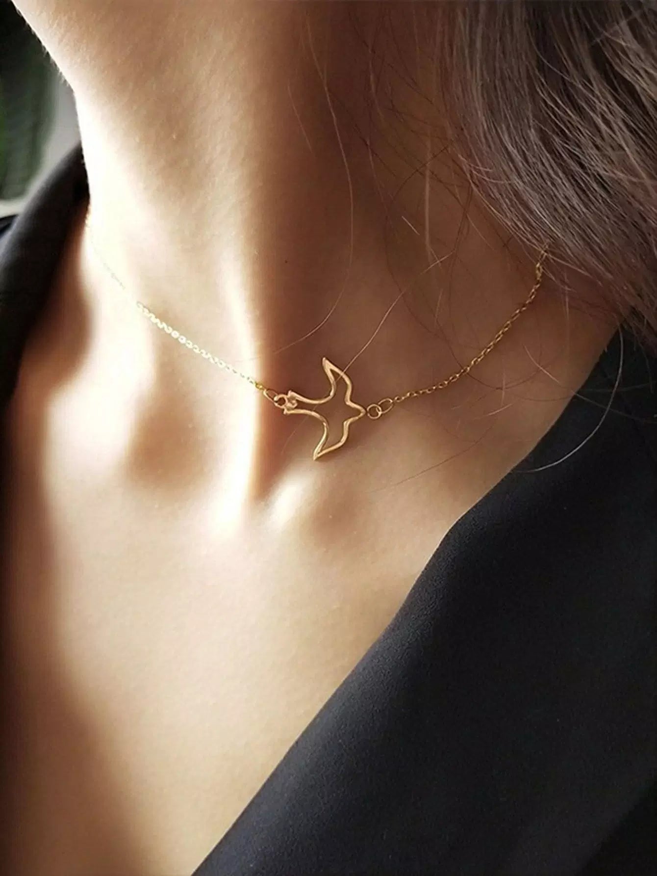Women - Hollow Bird Pendant Chain Choker 1pc