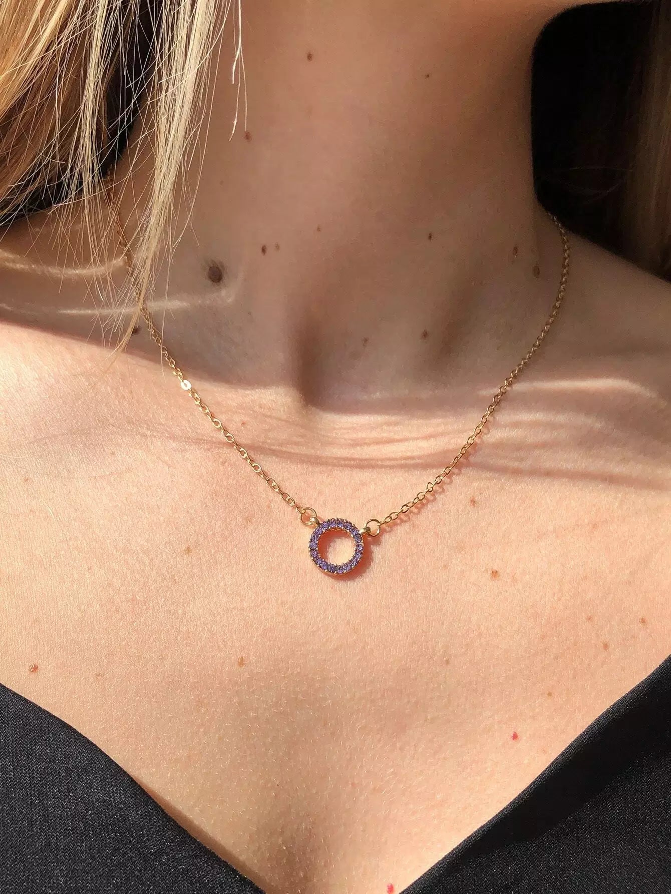 Rhinestone Round Charm Necklace