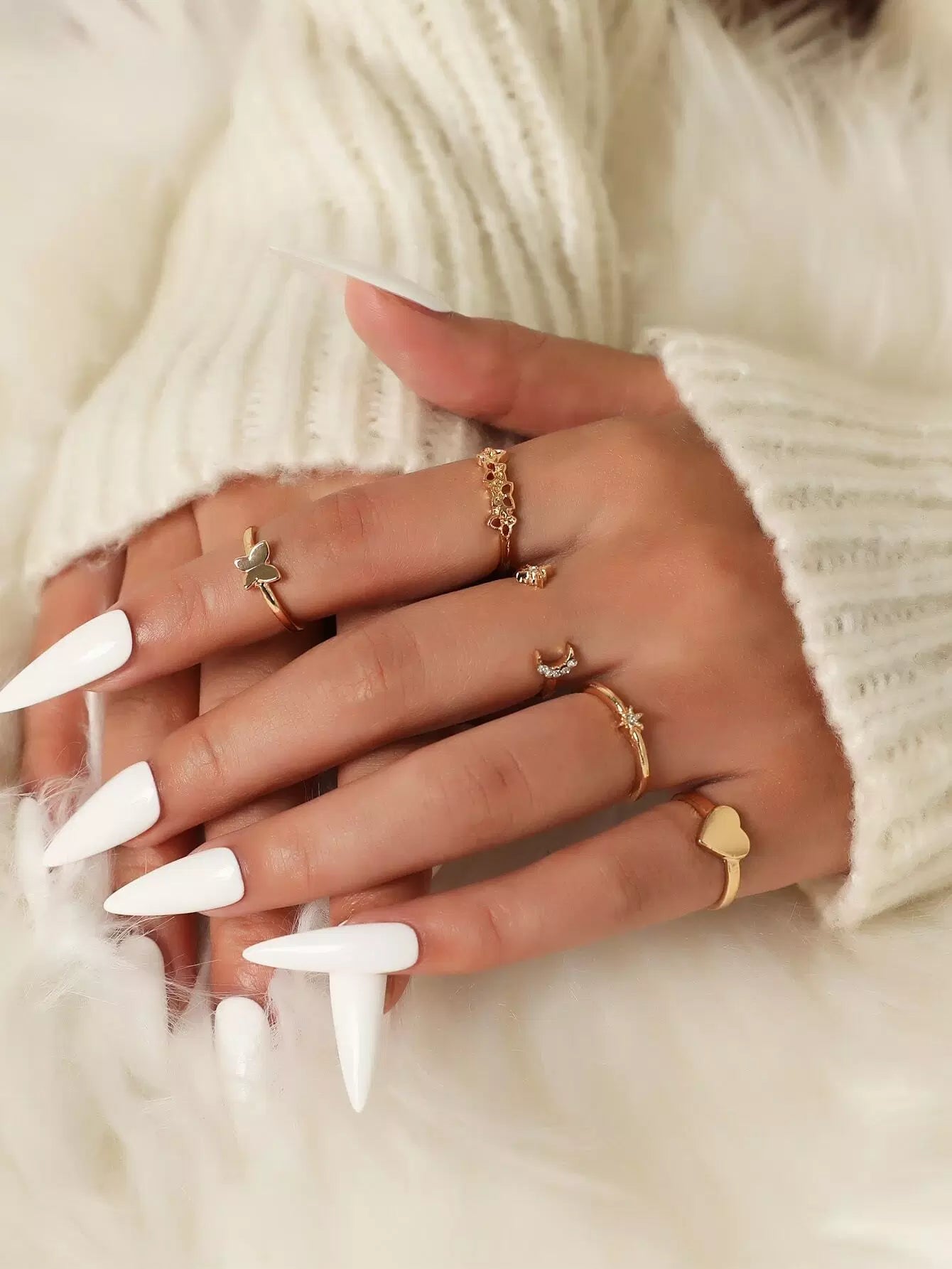 5pcs Heart Decor Ring