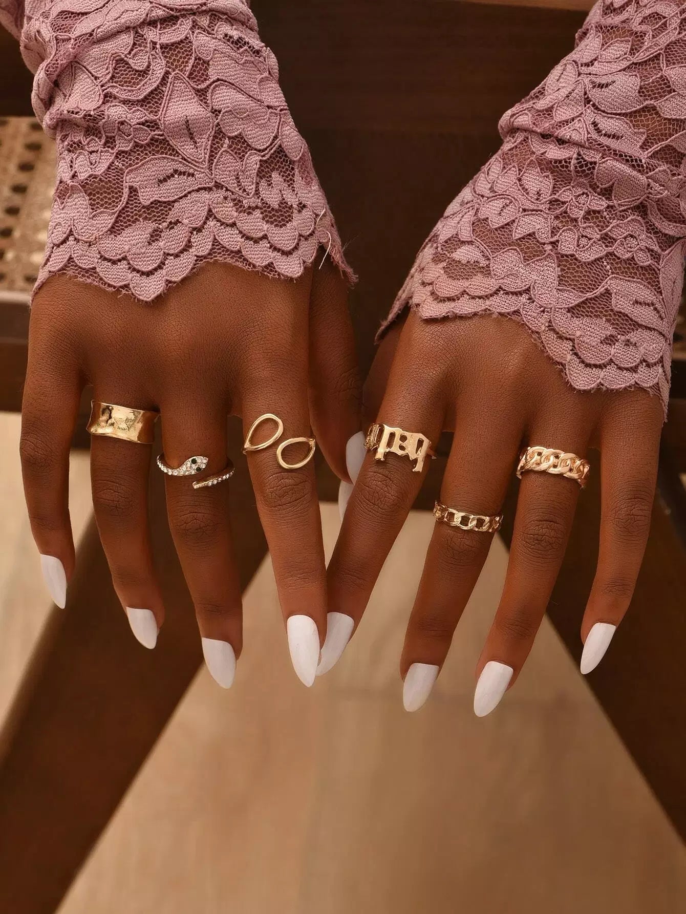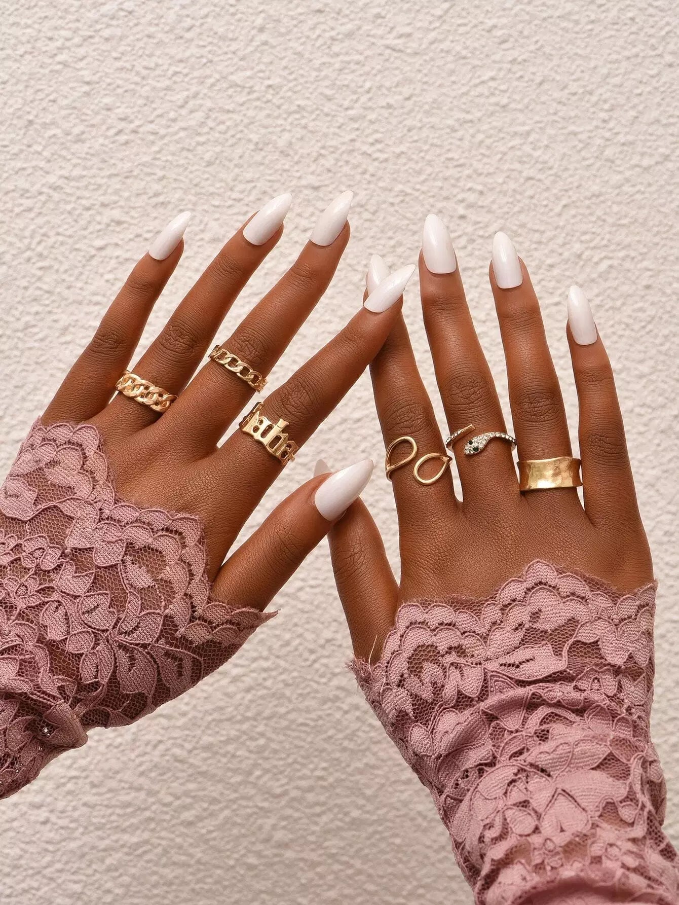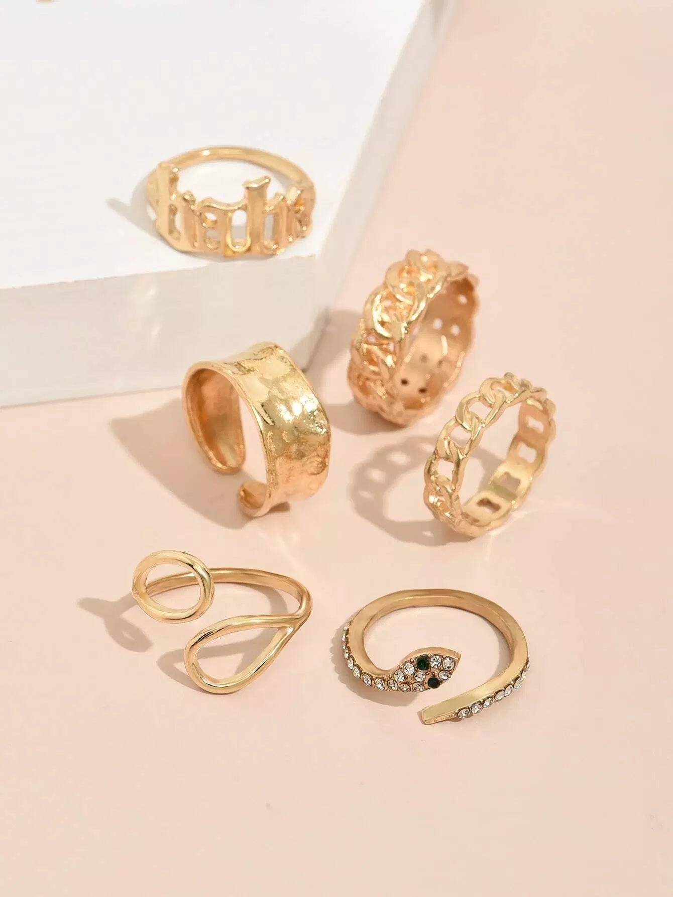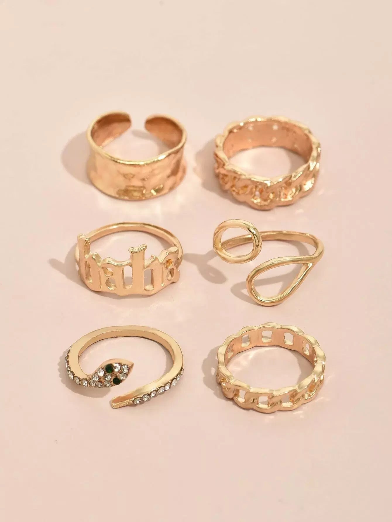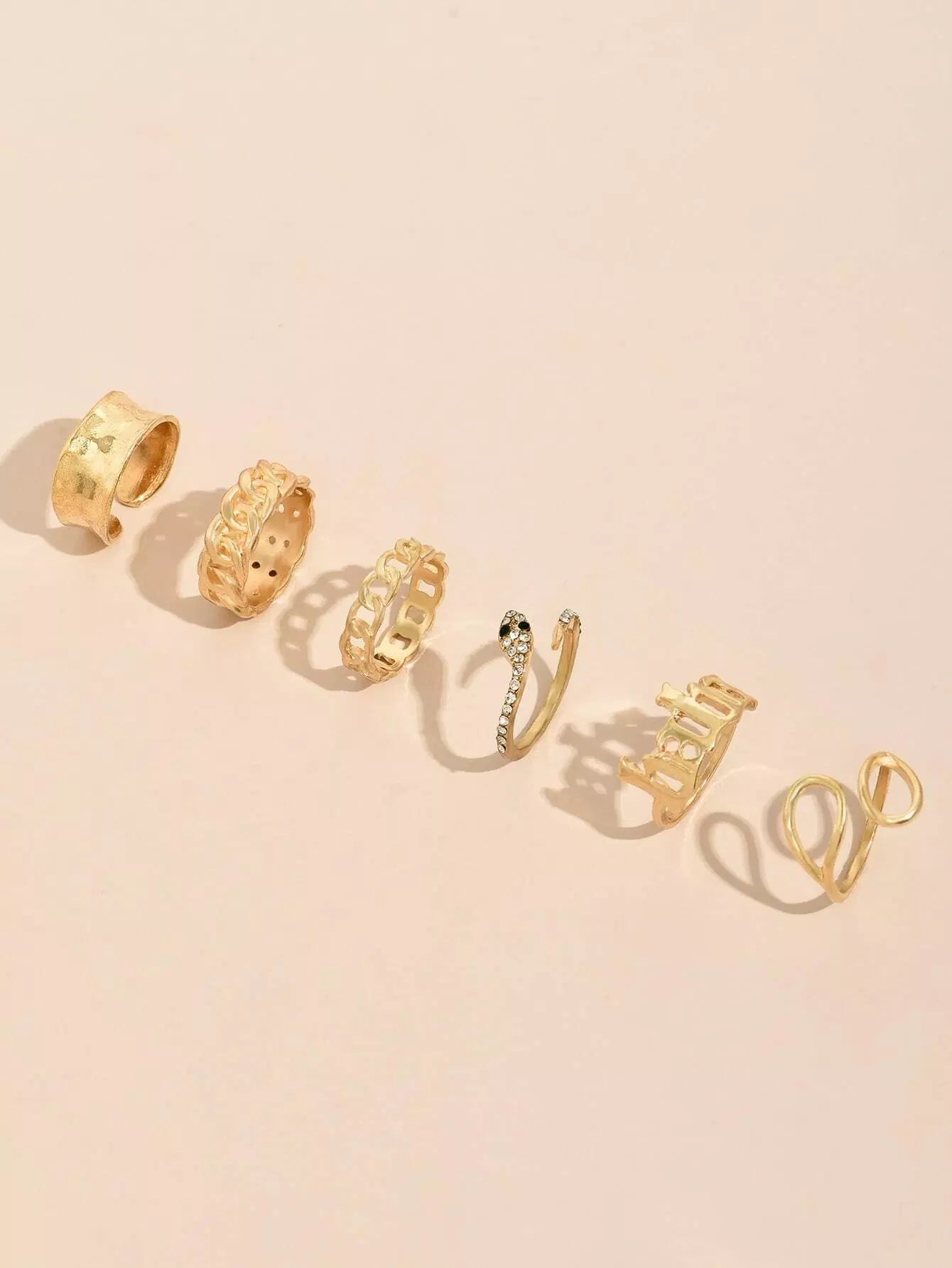 6pcs Rhinestone Decor Snake Design Ring