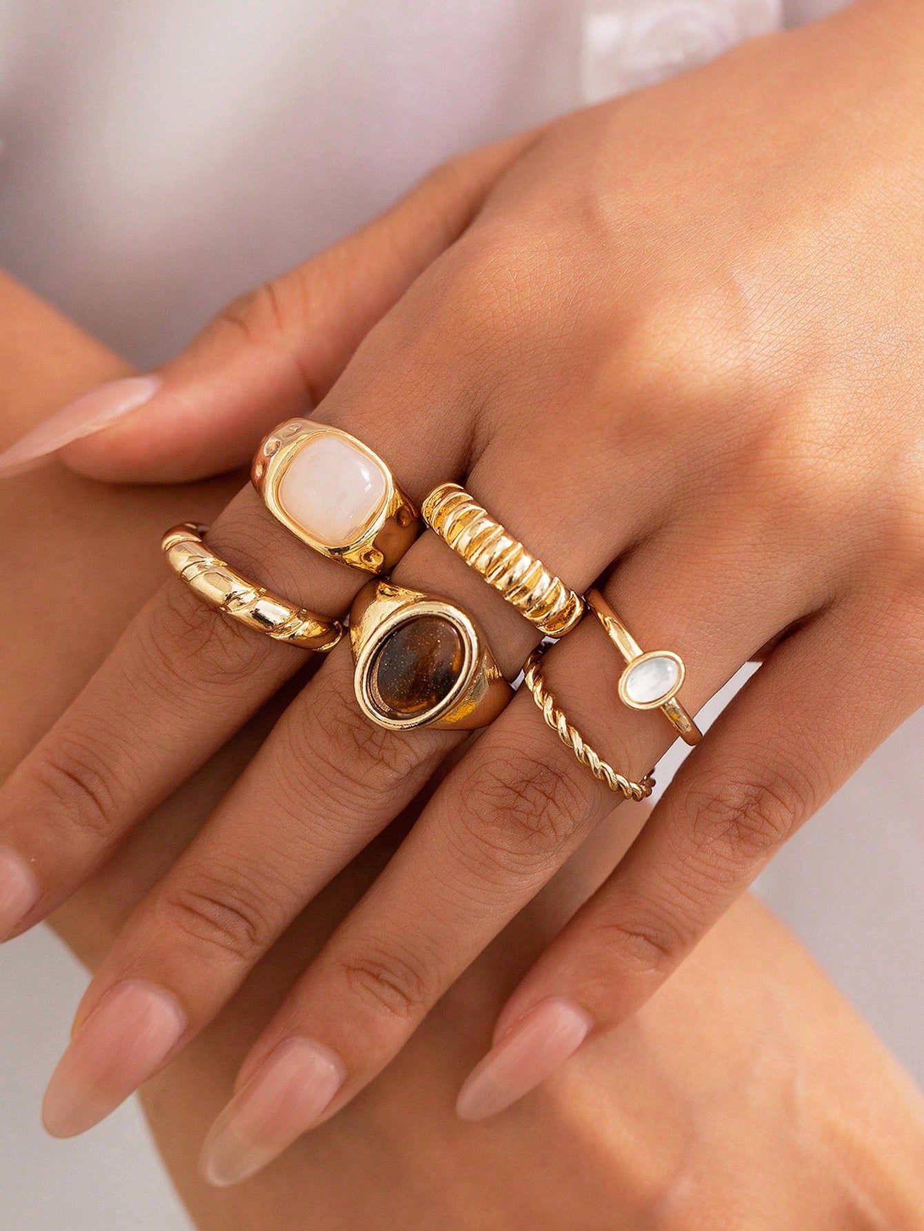 6pcs/Set Boho Retro Multilayer Glass Rhinestone Embellished Rings