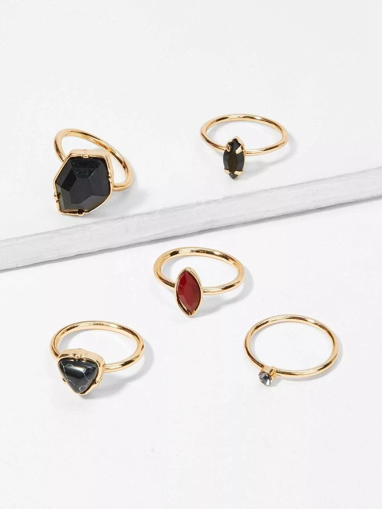 Contrast Geometric Ring Set 5pcs