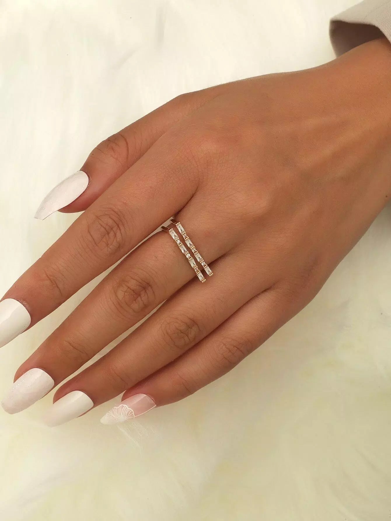 Cubic Zirconia Detail Cuff Ring