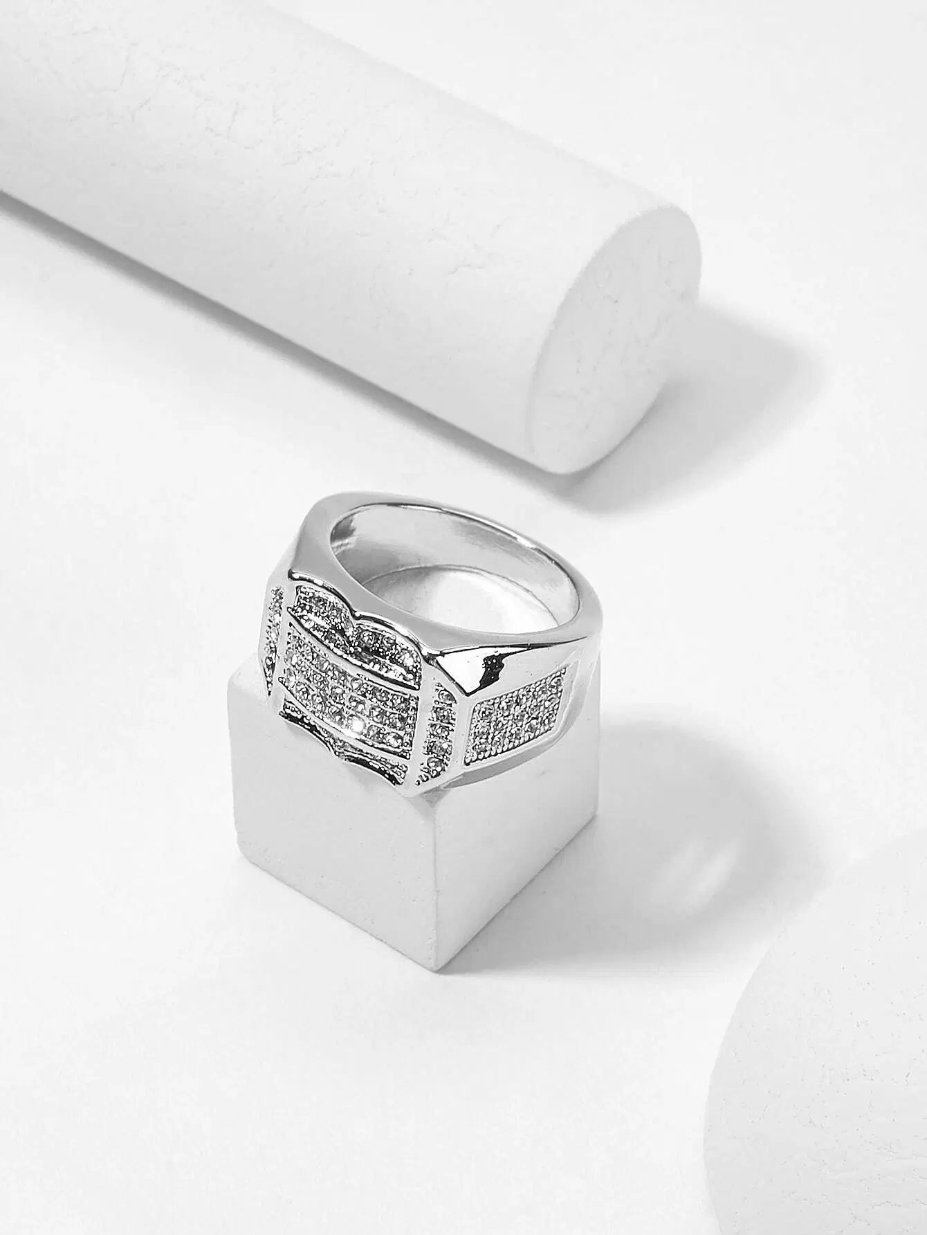Men Rhinestone Decor Wide Ring
